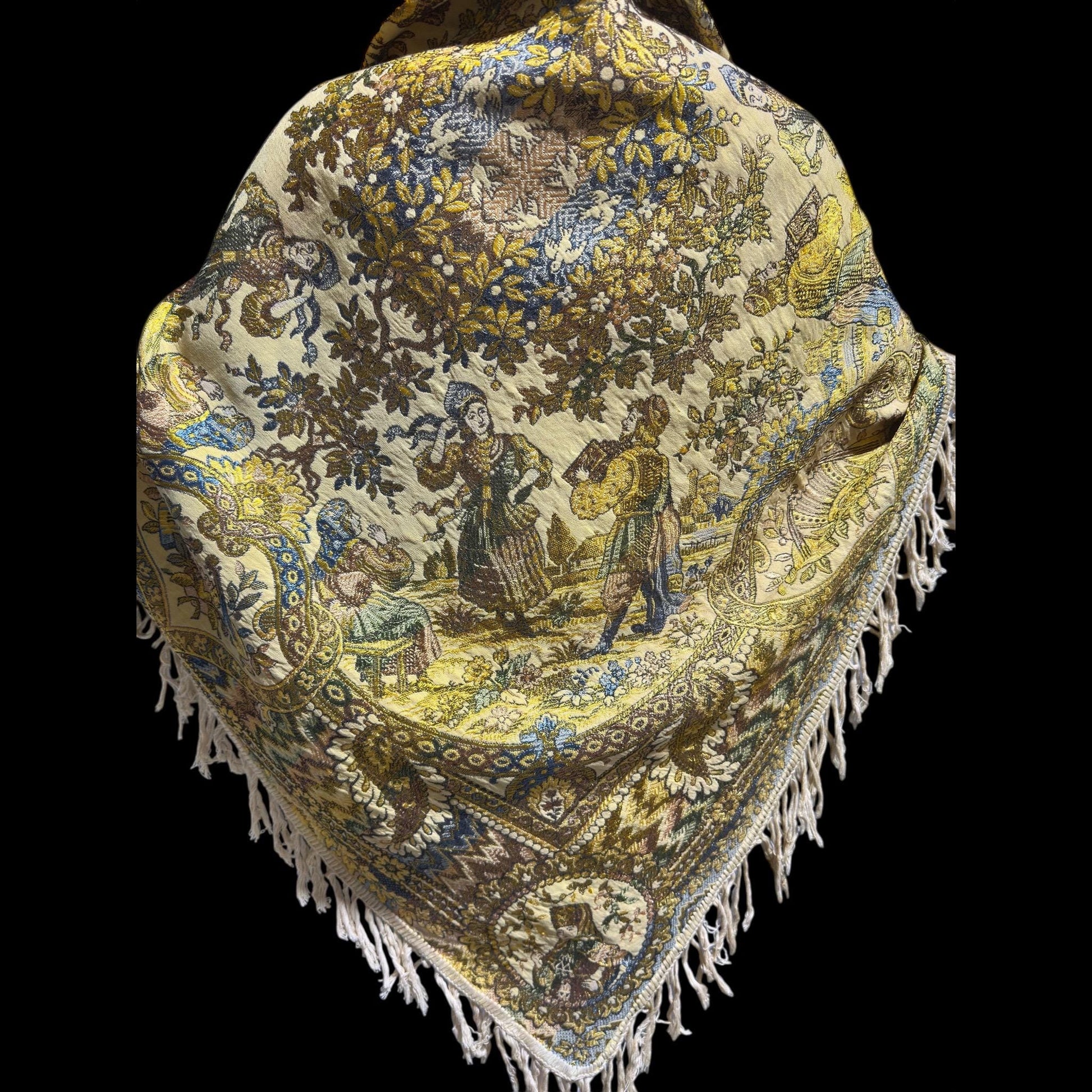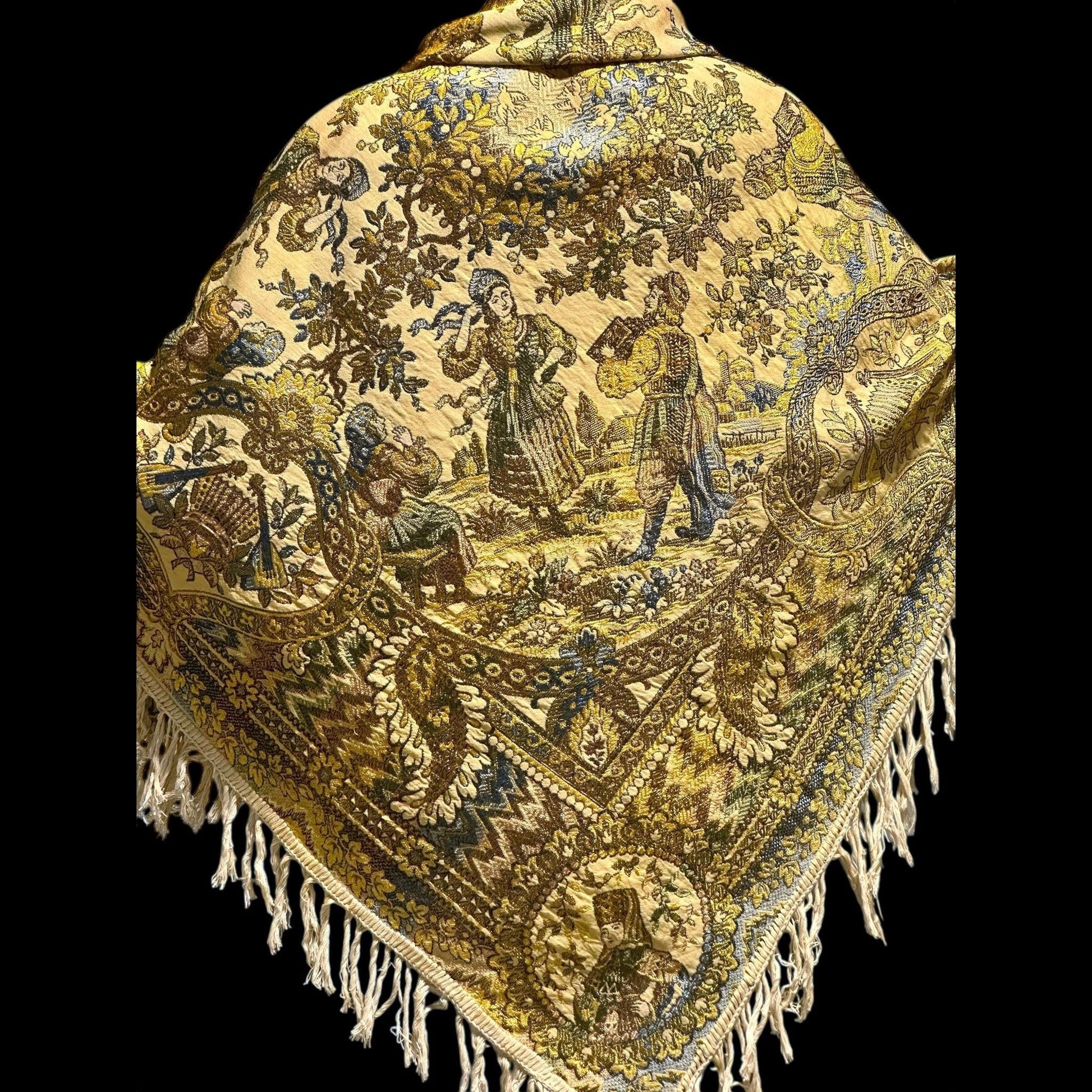 Antique Vintage 1900s Silk Tapestry, Russian Tablecloth Shawl Wrap