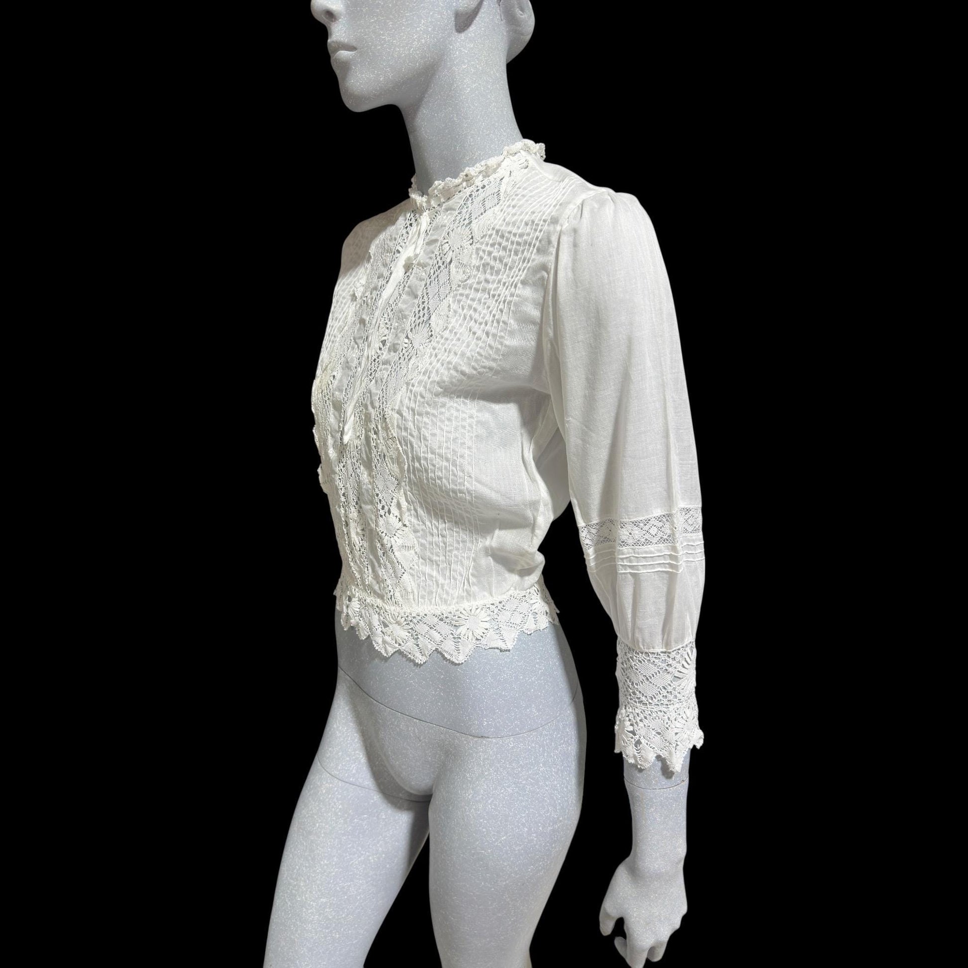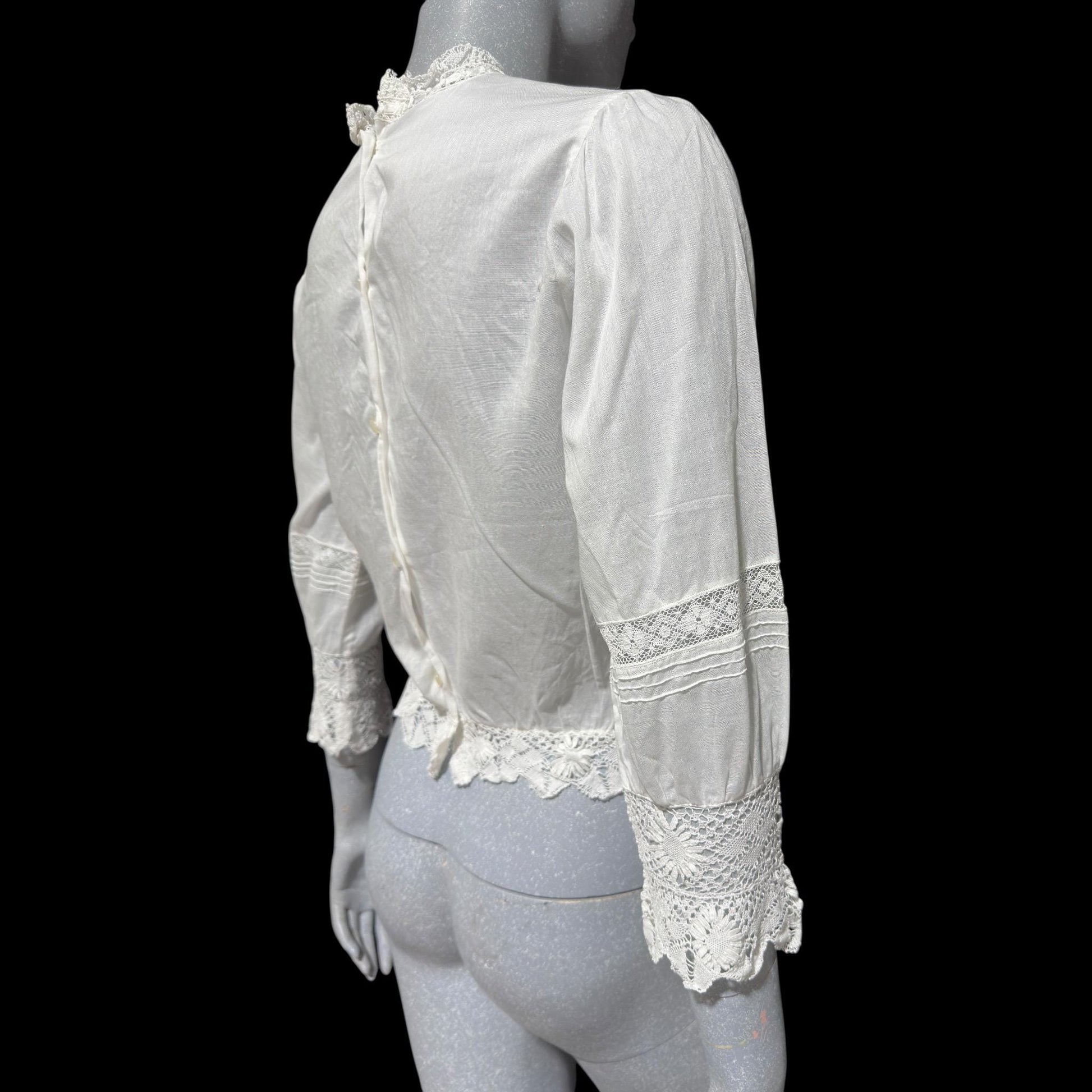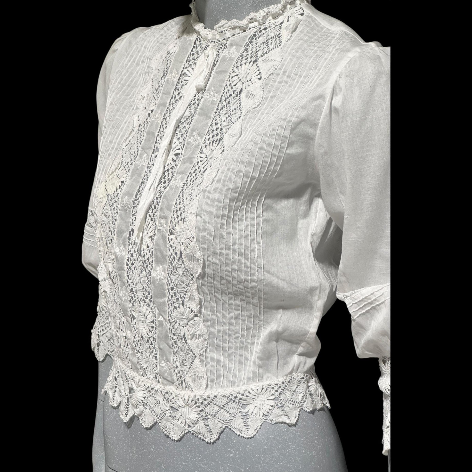 1910 Vintage Antique Edwardian Top, 1900s white batiste cotton and lace blouse