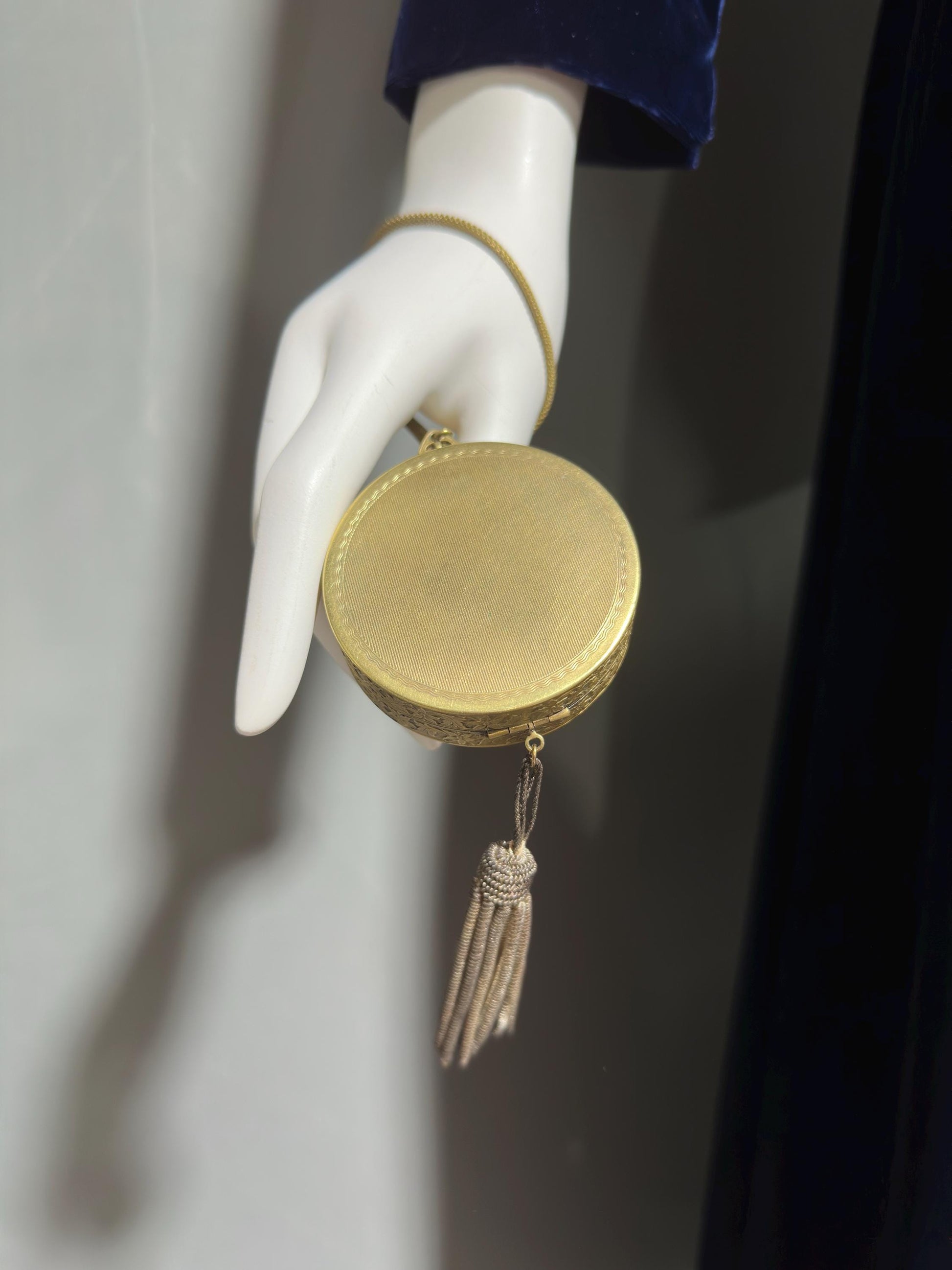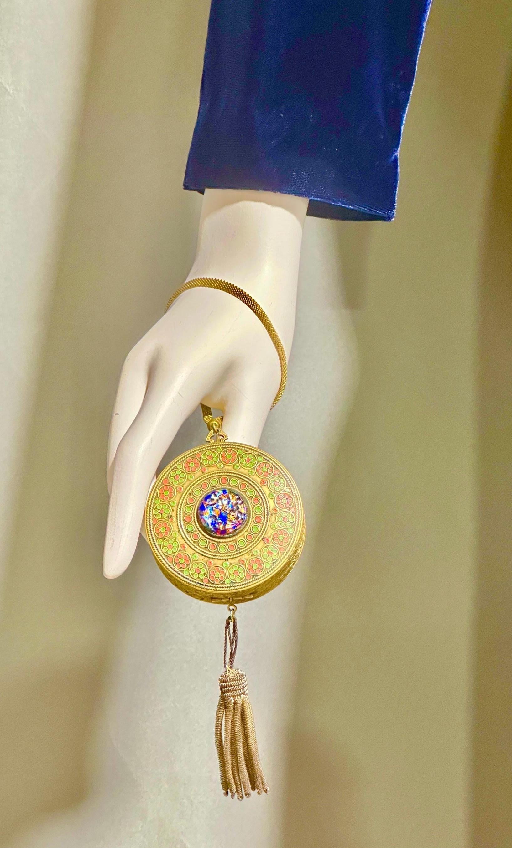 1920s vintage Antique chatelaine compact, flapper enamel mirrored wrist dance compact, double powder, blush rouge