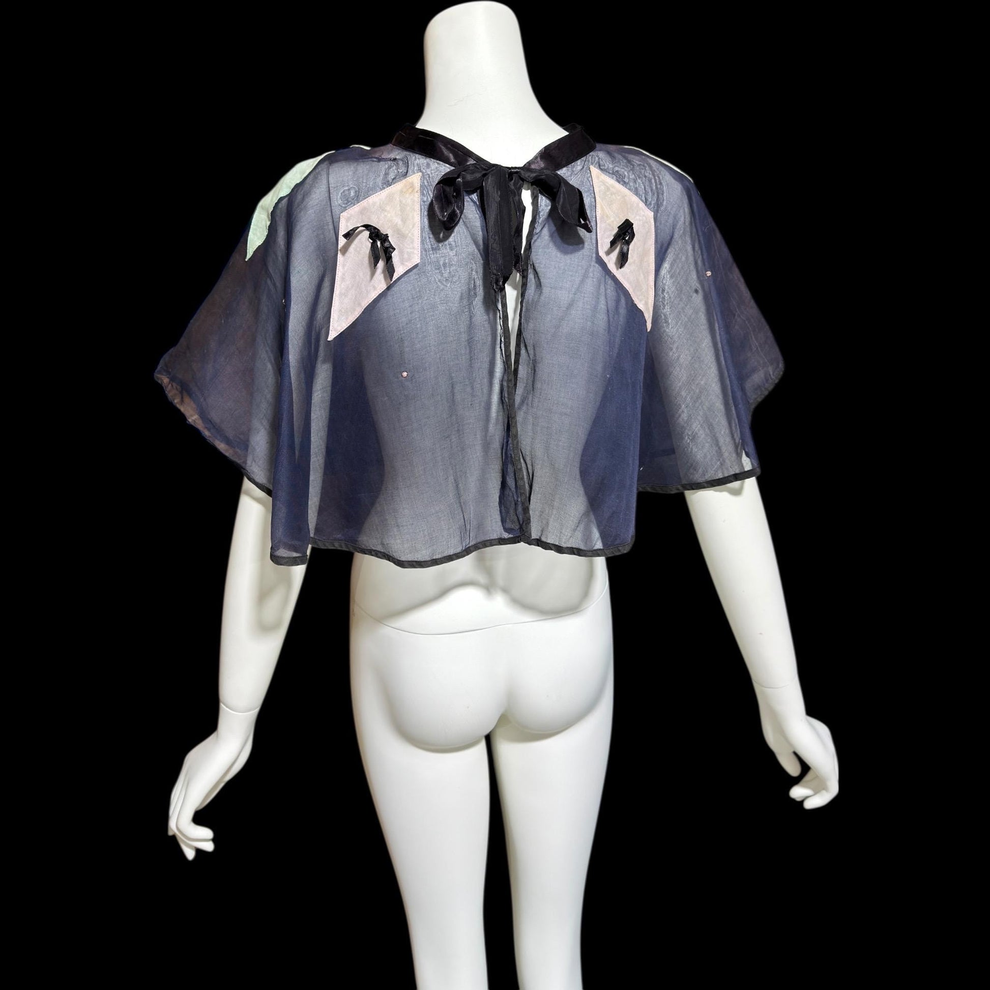 1930s Vintage collar capelet, navy blue organza harlequin shoulder cover