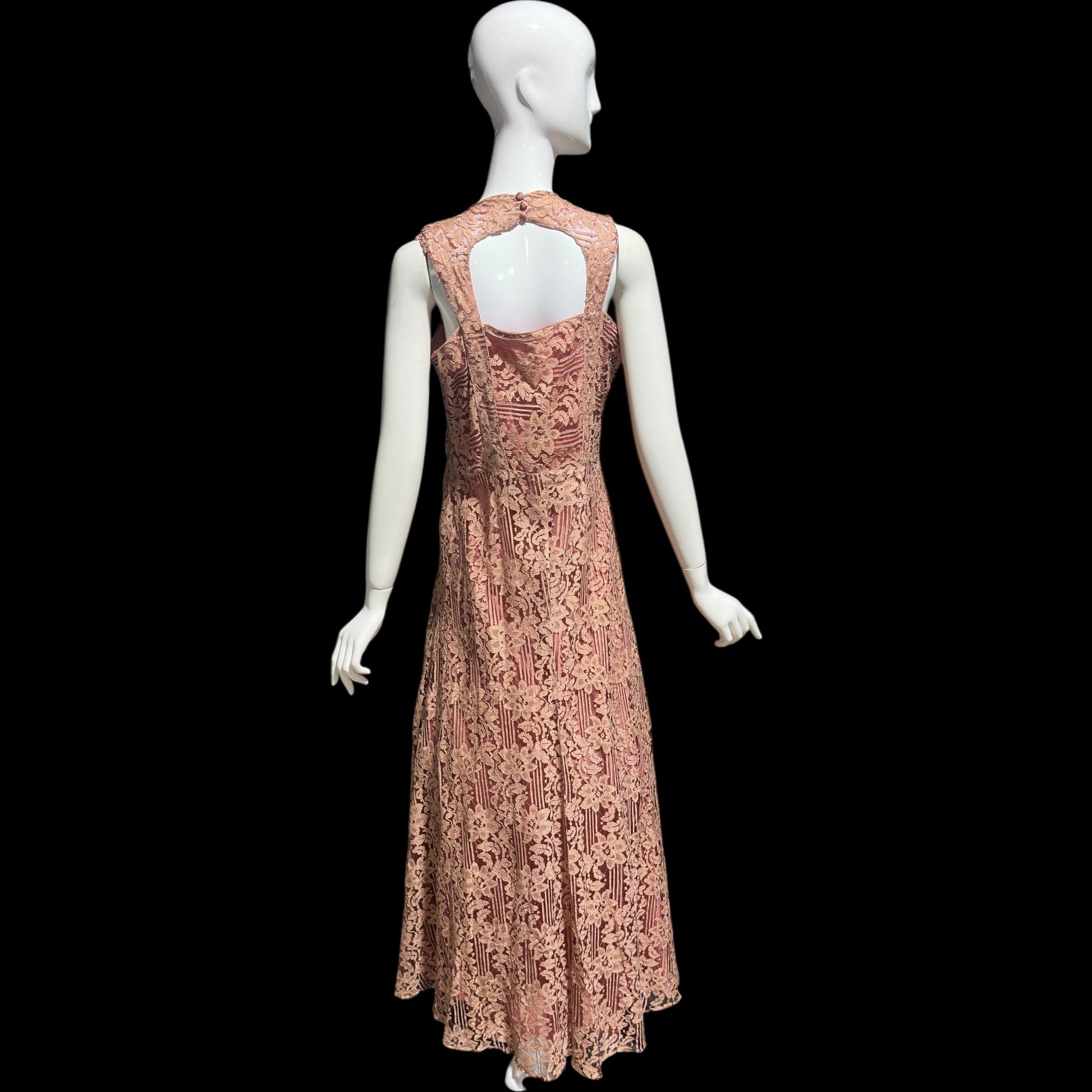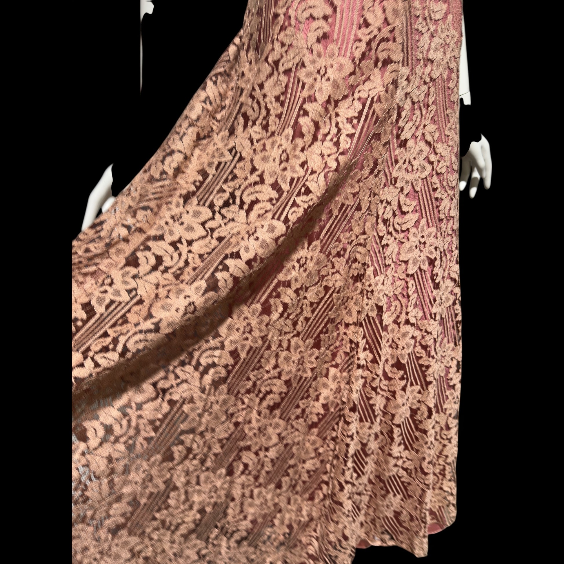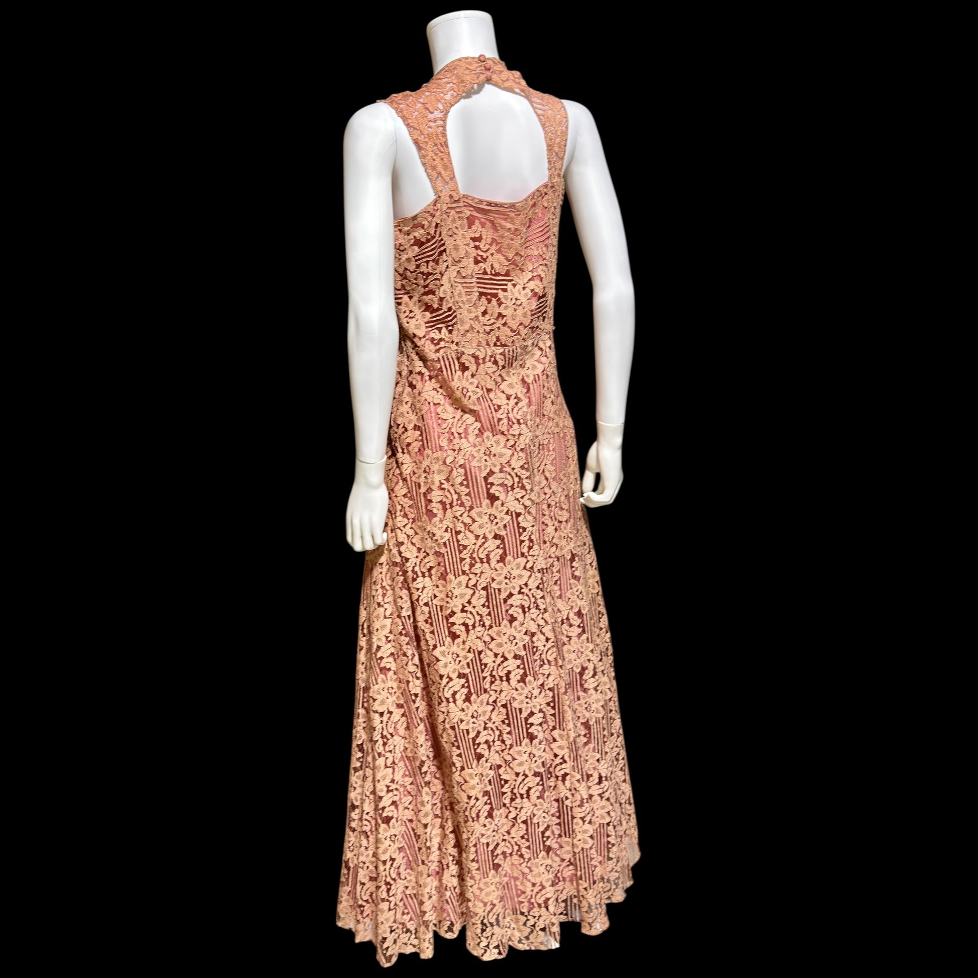 1930s vintage evening dress, Dusty pink lace sheath gown, fully lined