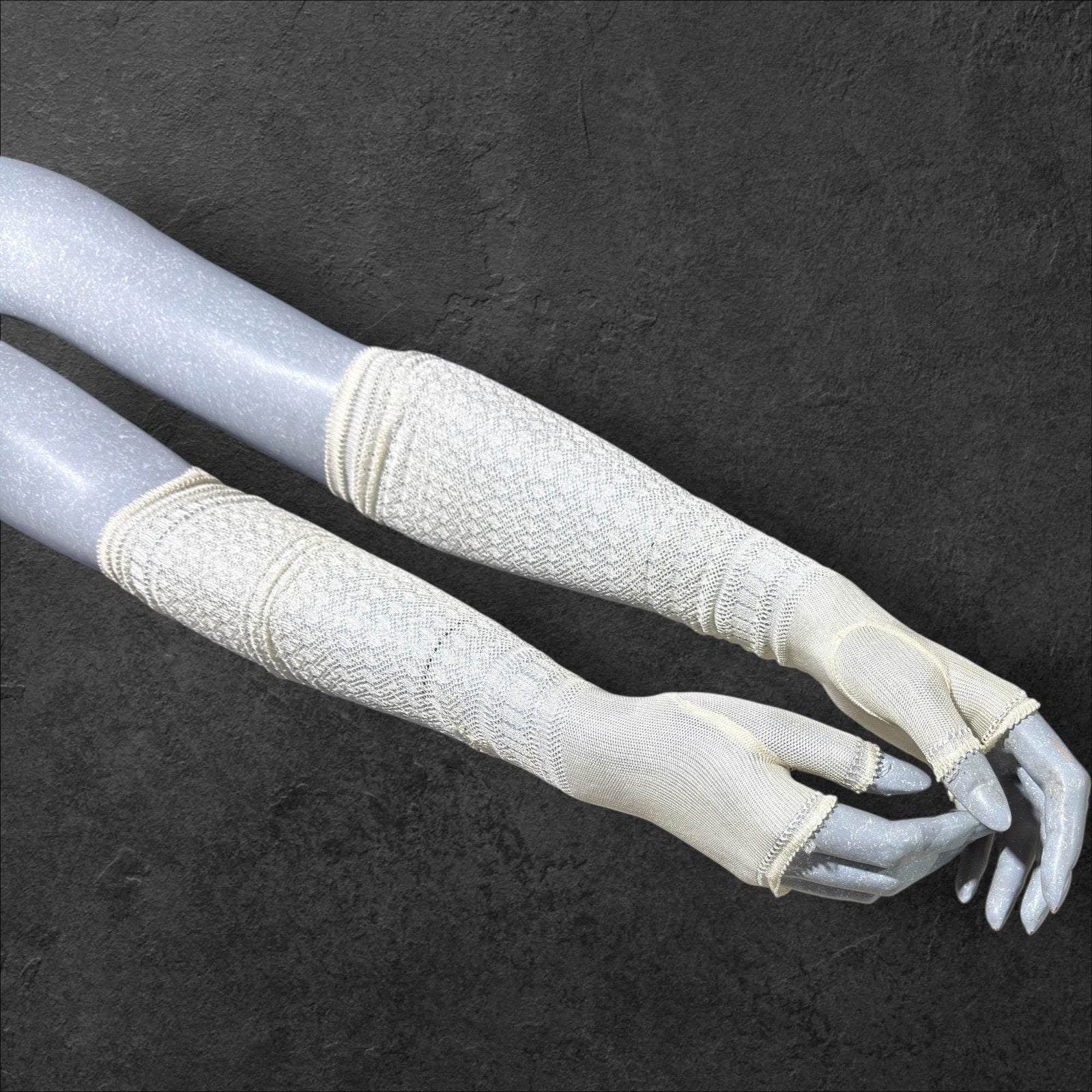Creamy white fingerless opera gloves.