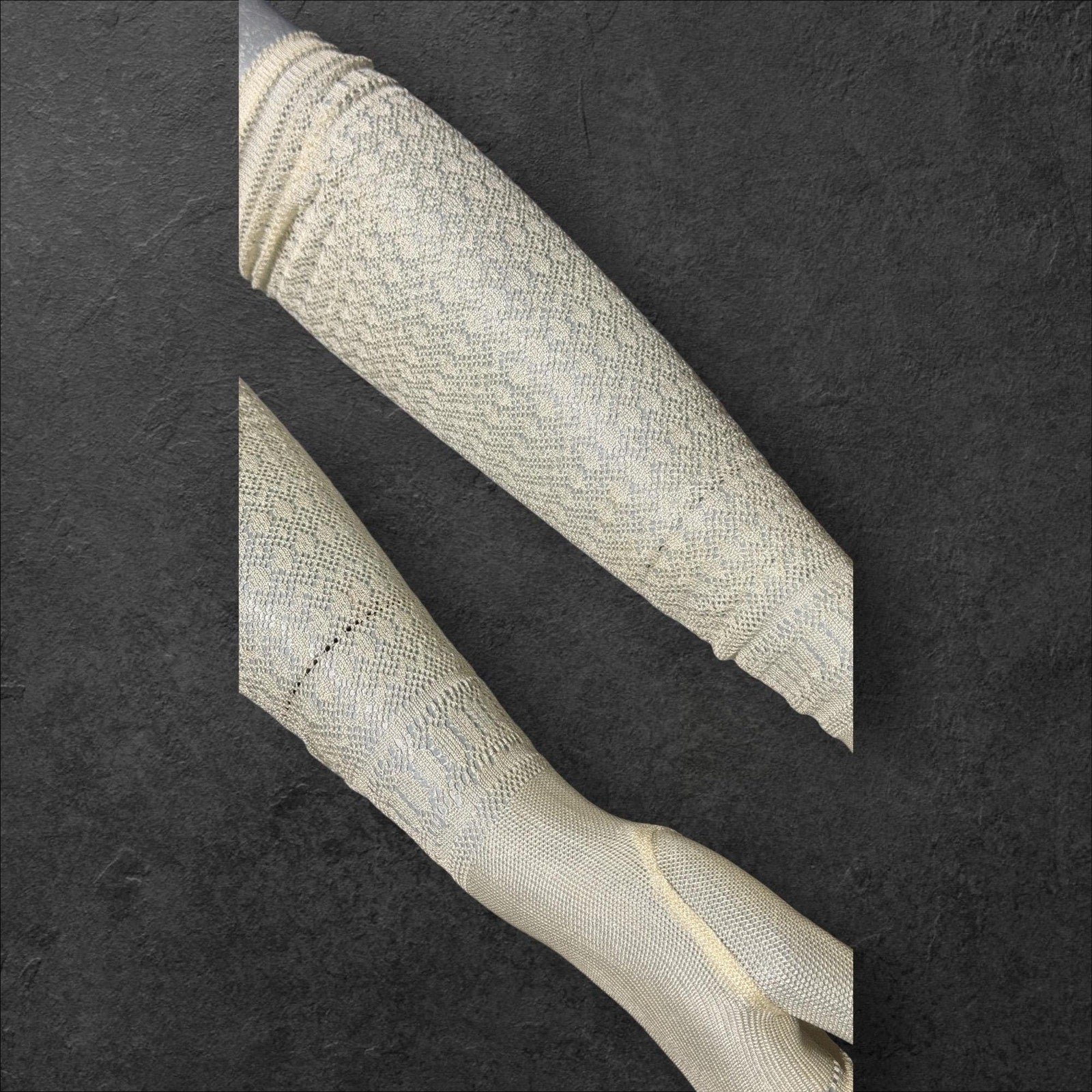 1930s vintage lace opera gloves, fingerless ivory crochet elbow length evening wedding bridal gloves