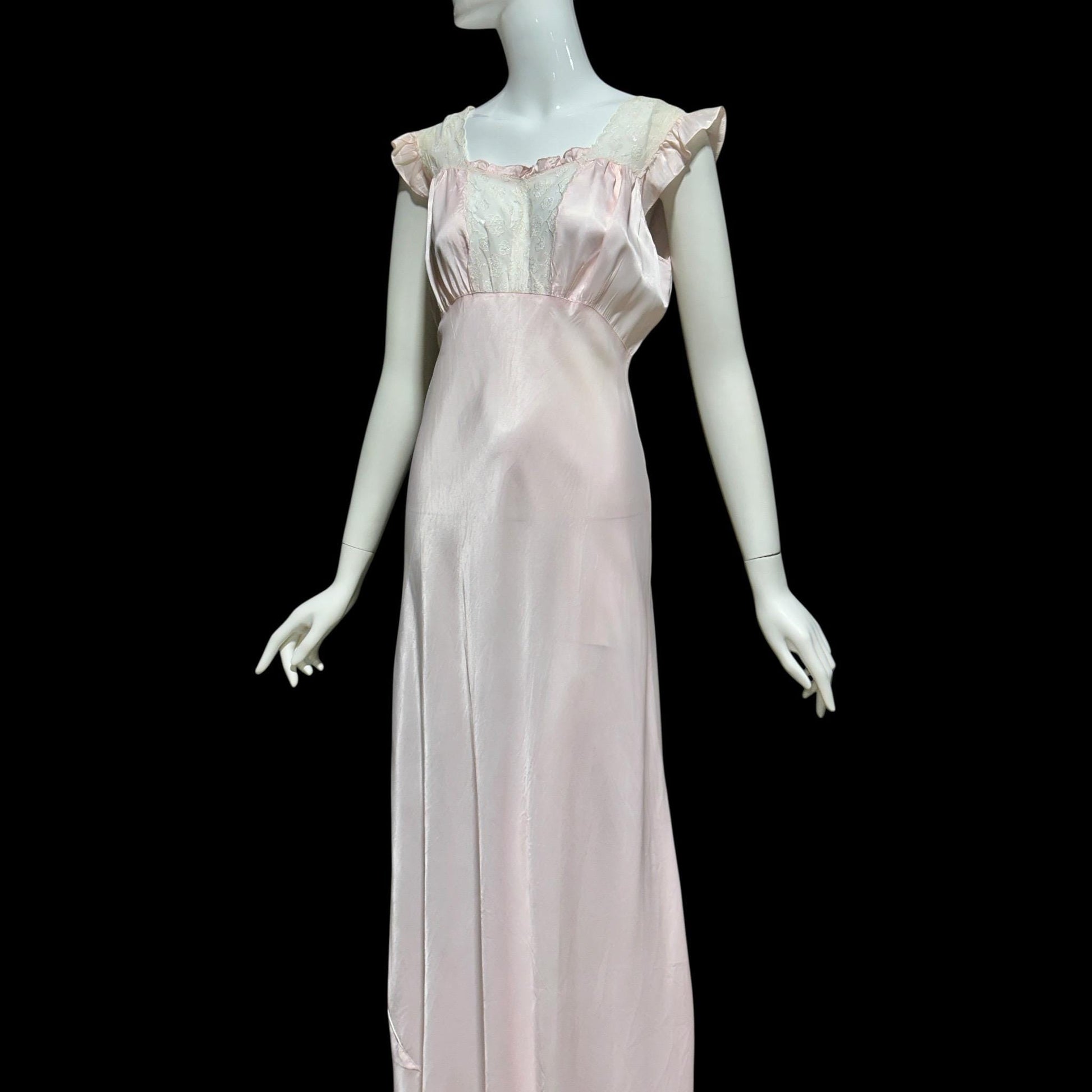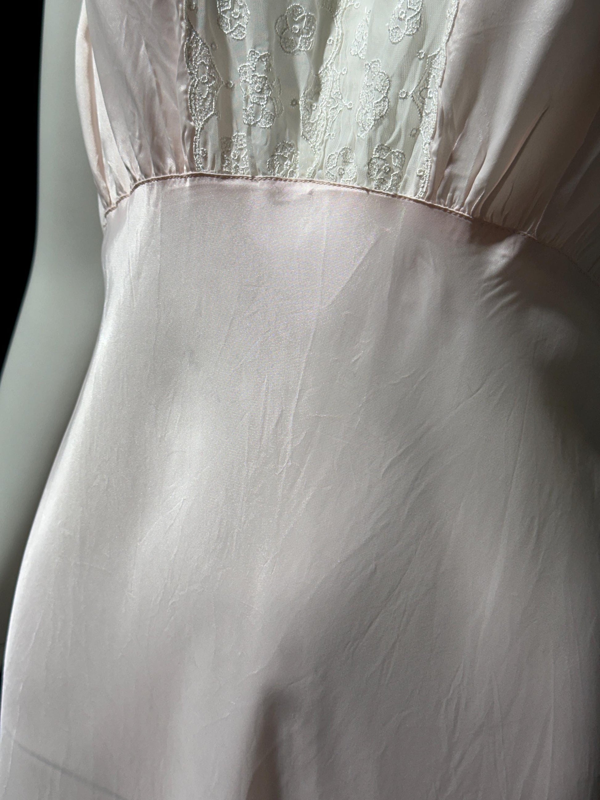 1940s Pink bias cut Nightgown: Vintage Pale pink Old Hollywood Slip Dress