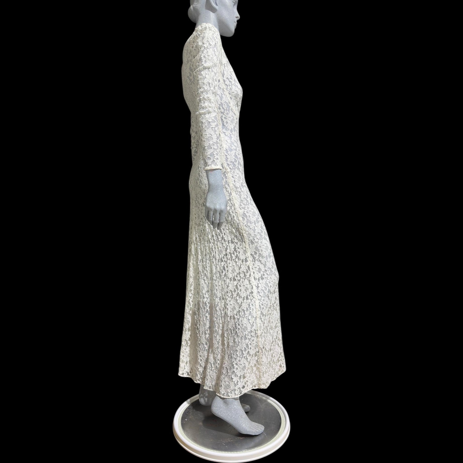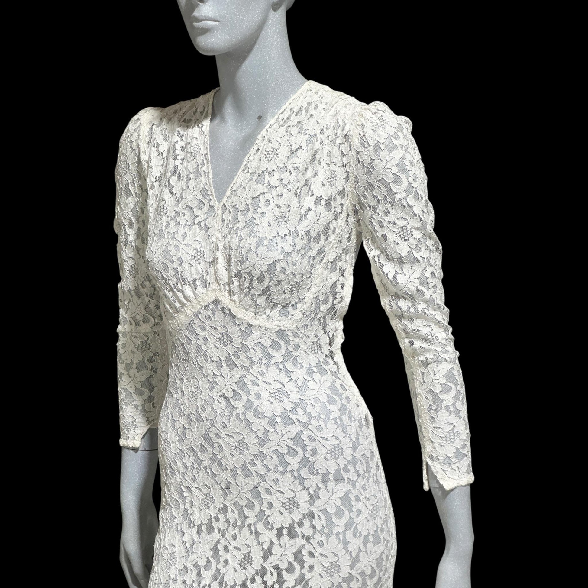 1940s vintage wedding bridal dress, white see through lace sheath full length gown