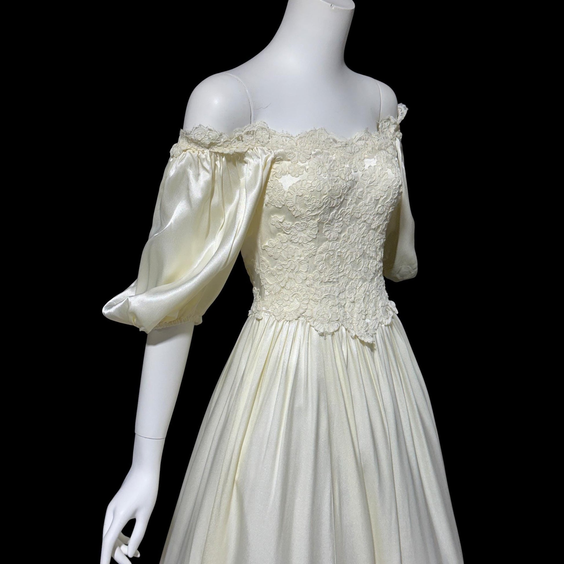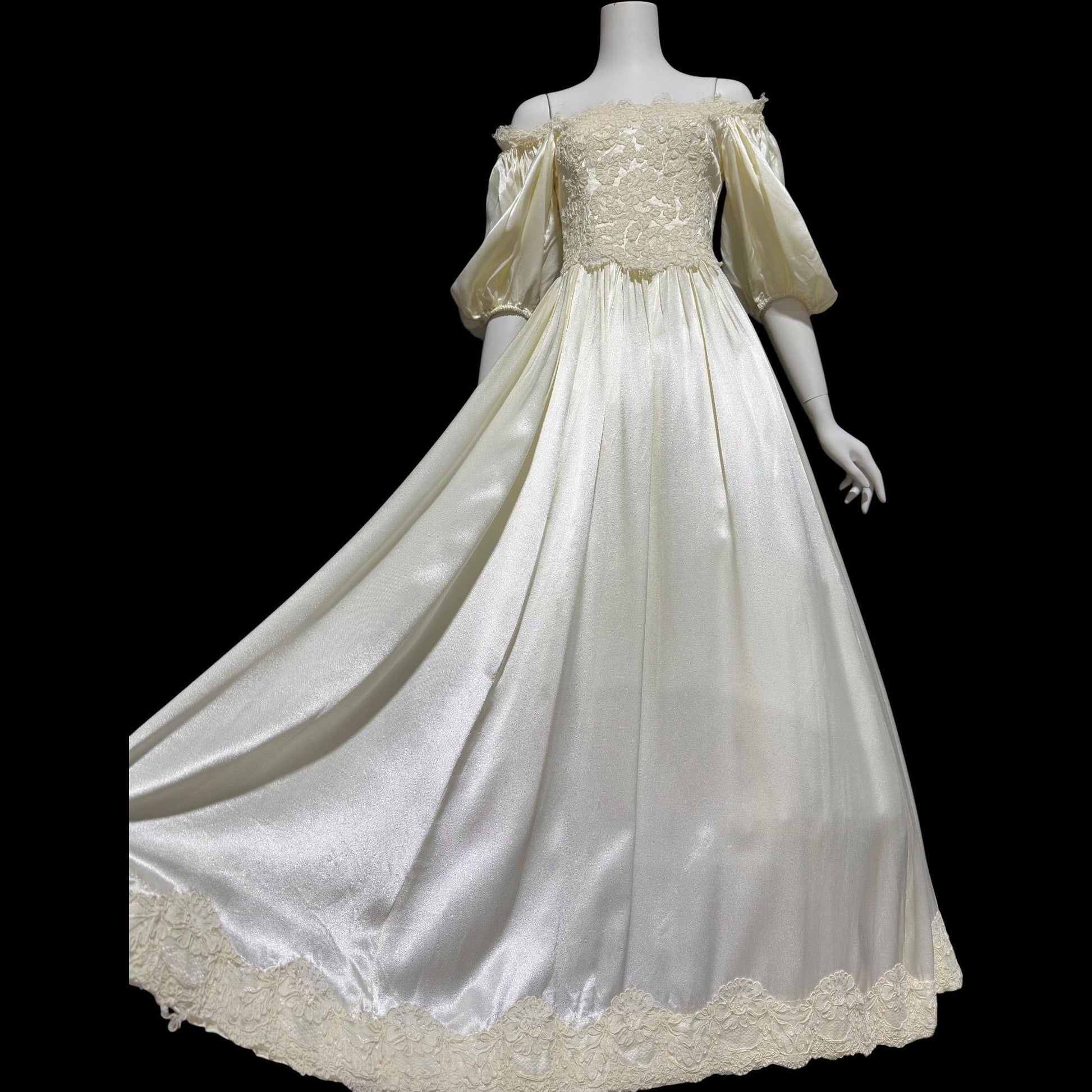 1960s vintage wedding dress, Off shoulder Juliet style bridal gown