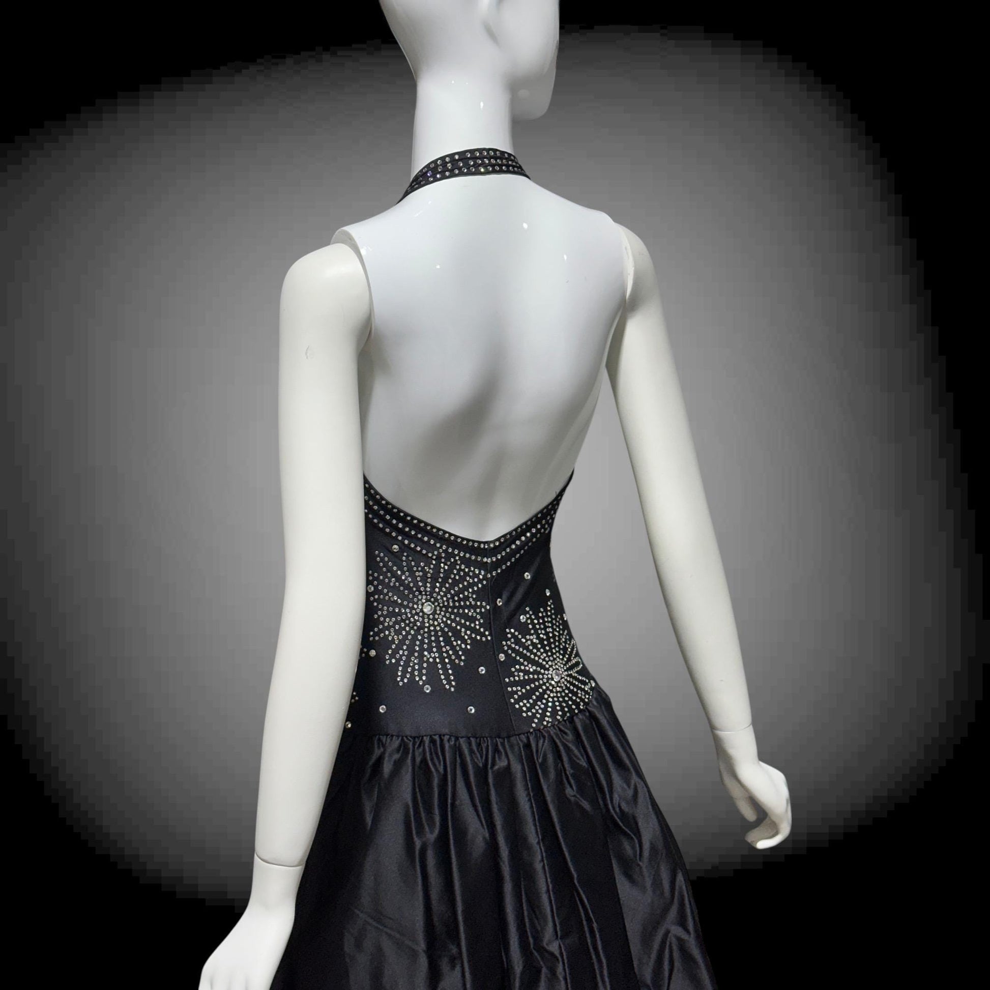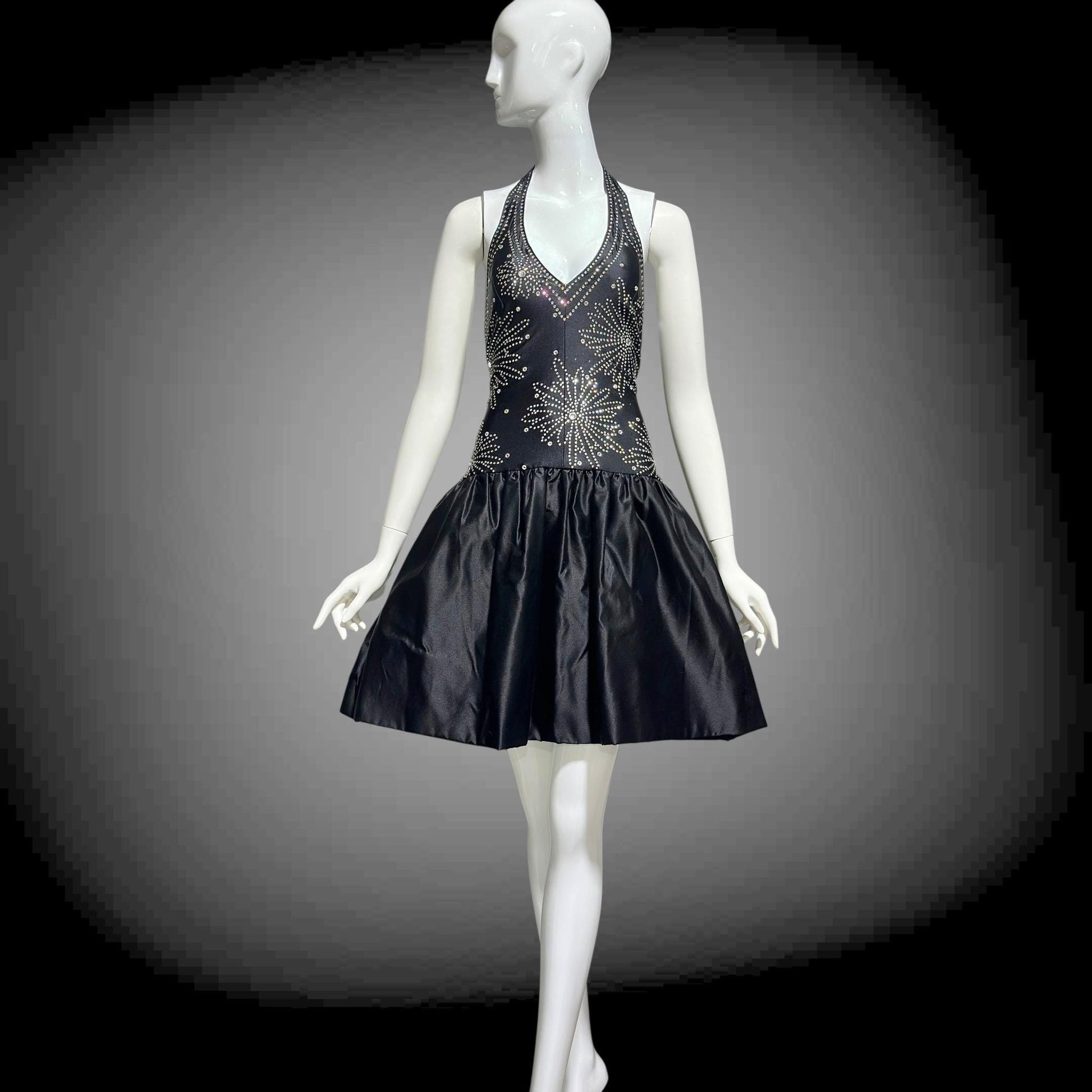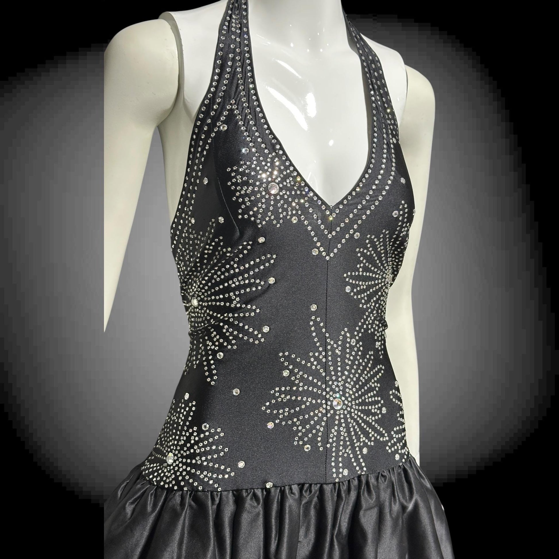 1970s Halter Party Mini Dress: Vintage black bubble skirt with rhinestone studs