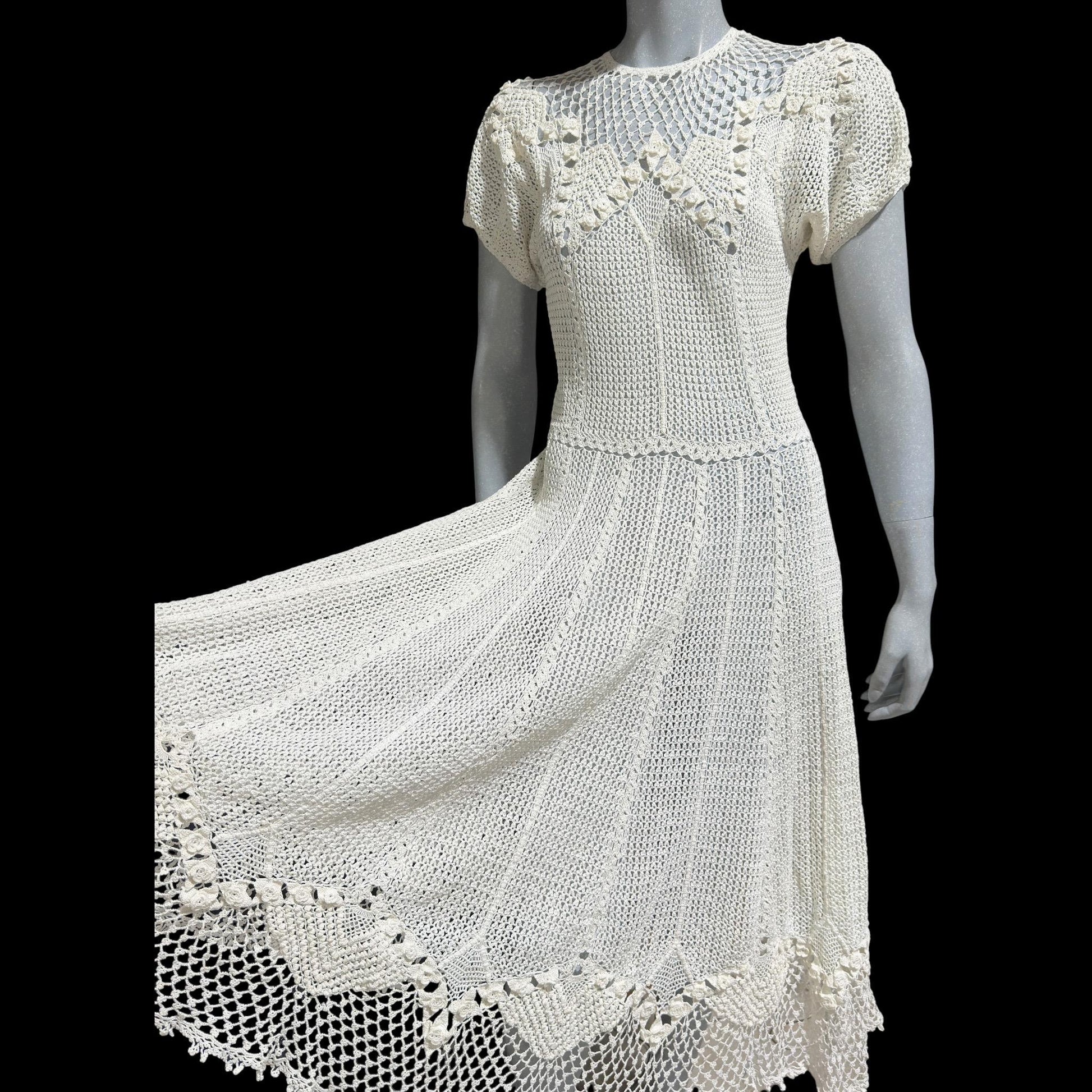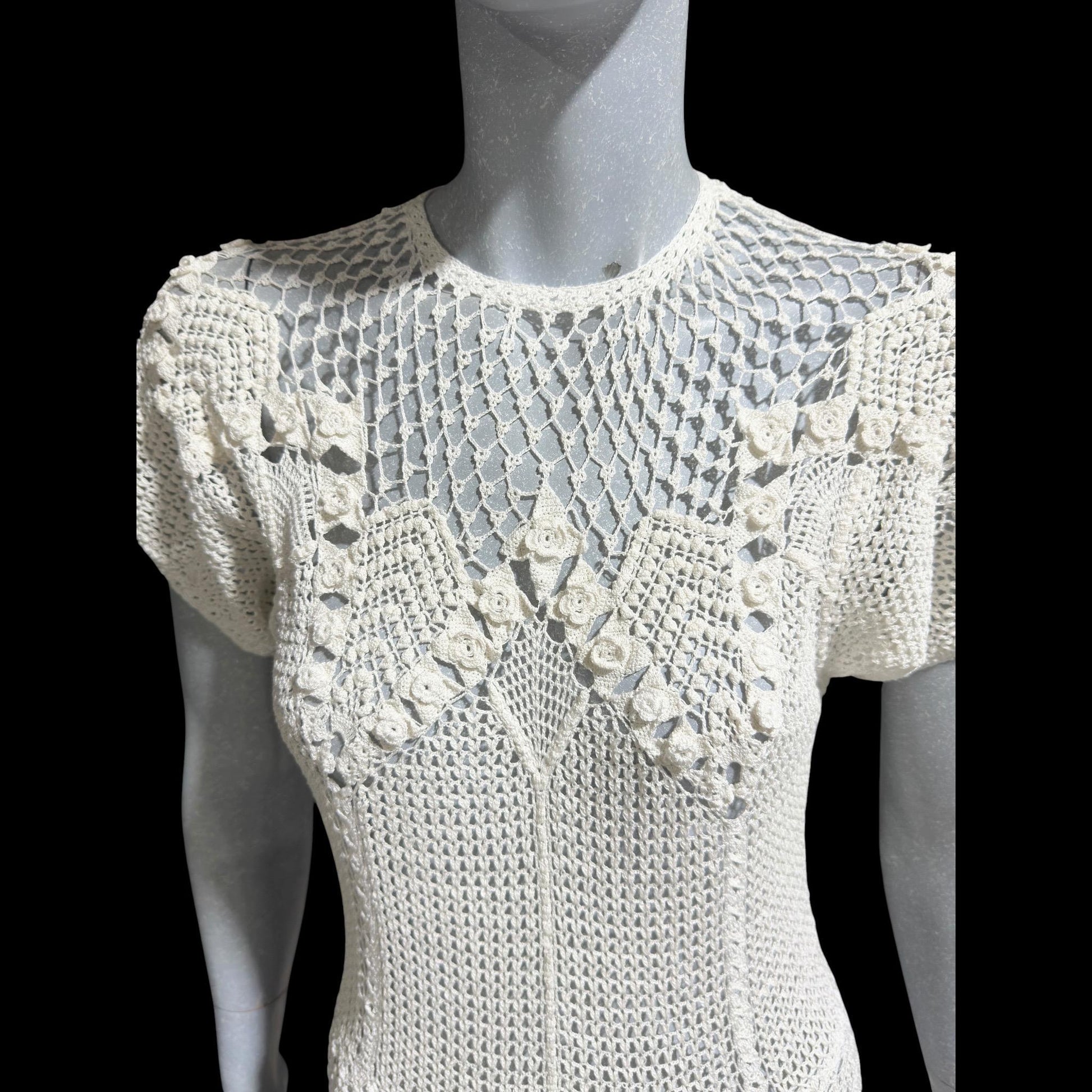 vintage 1970s white crochet dress,