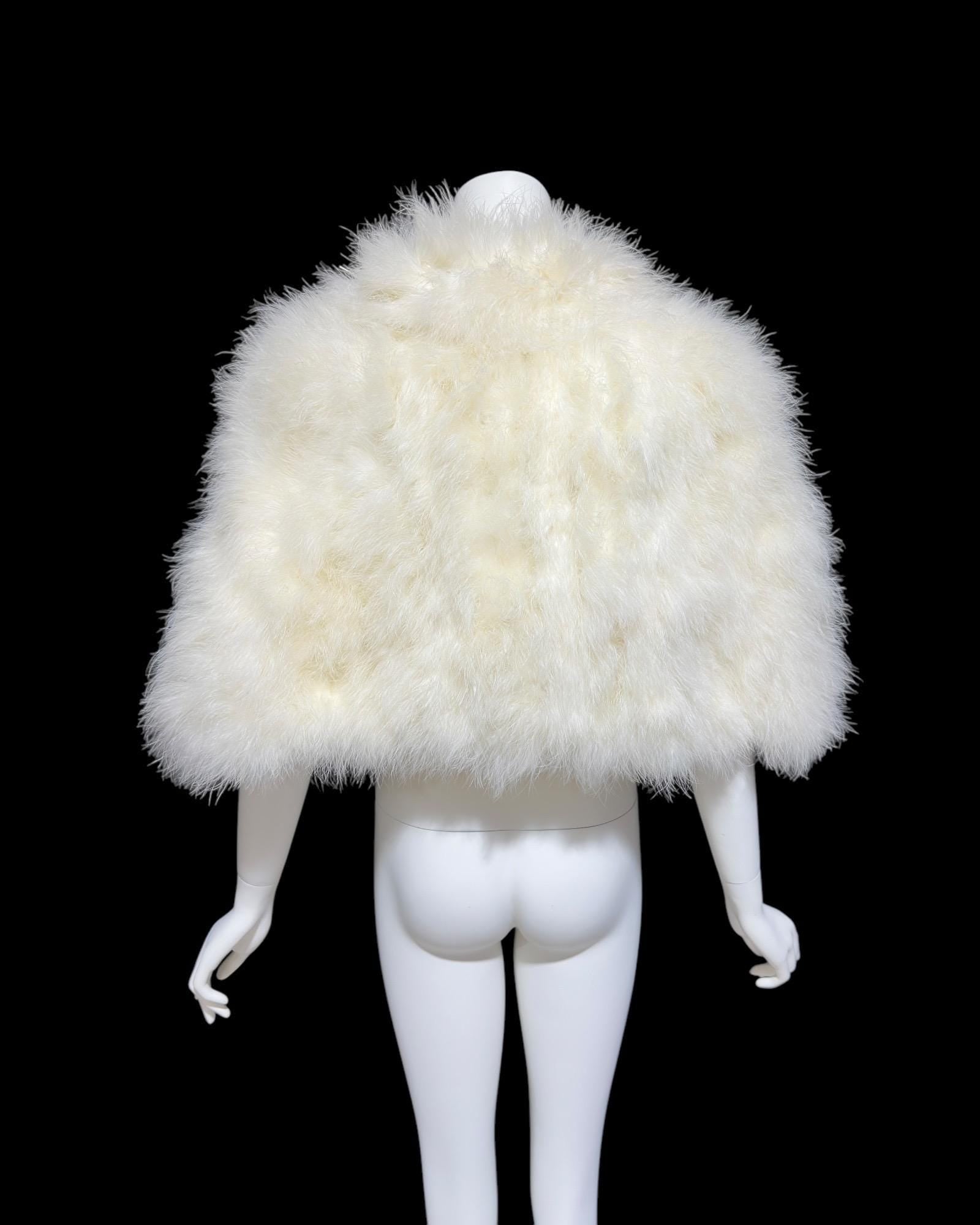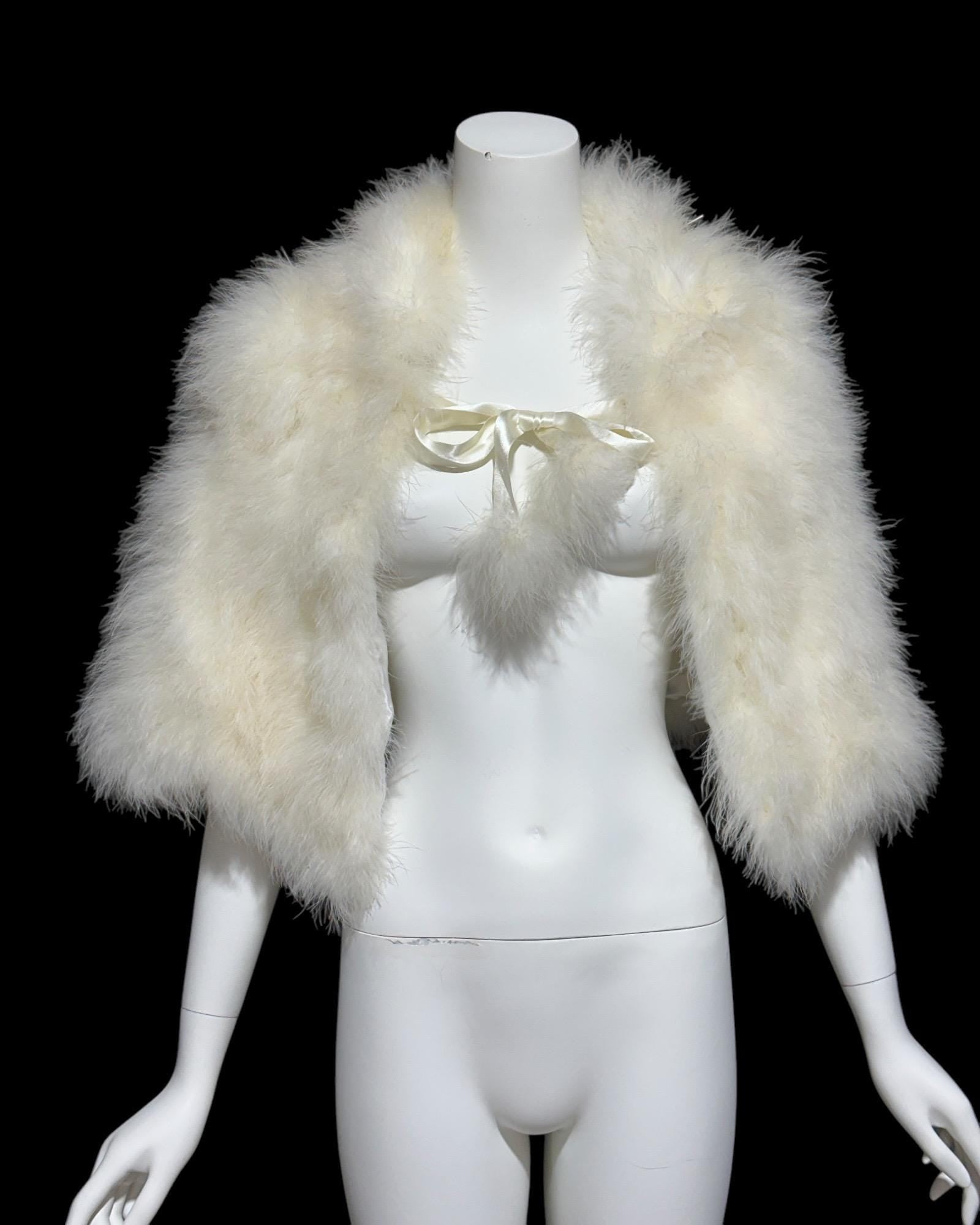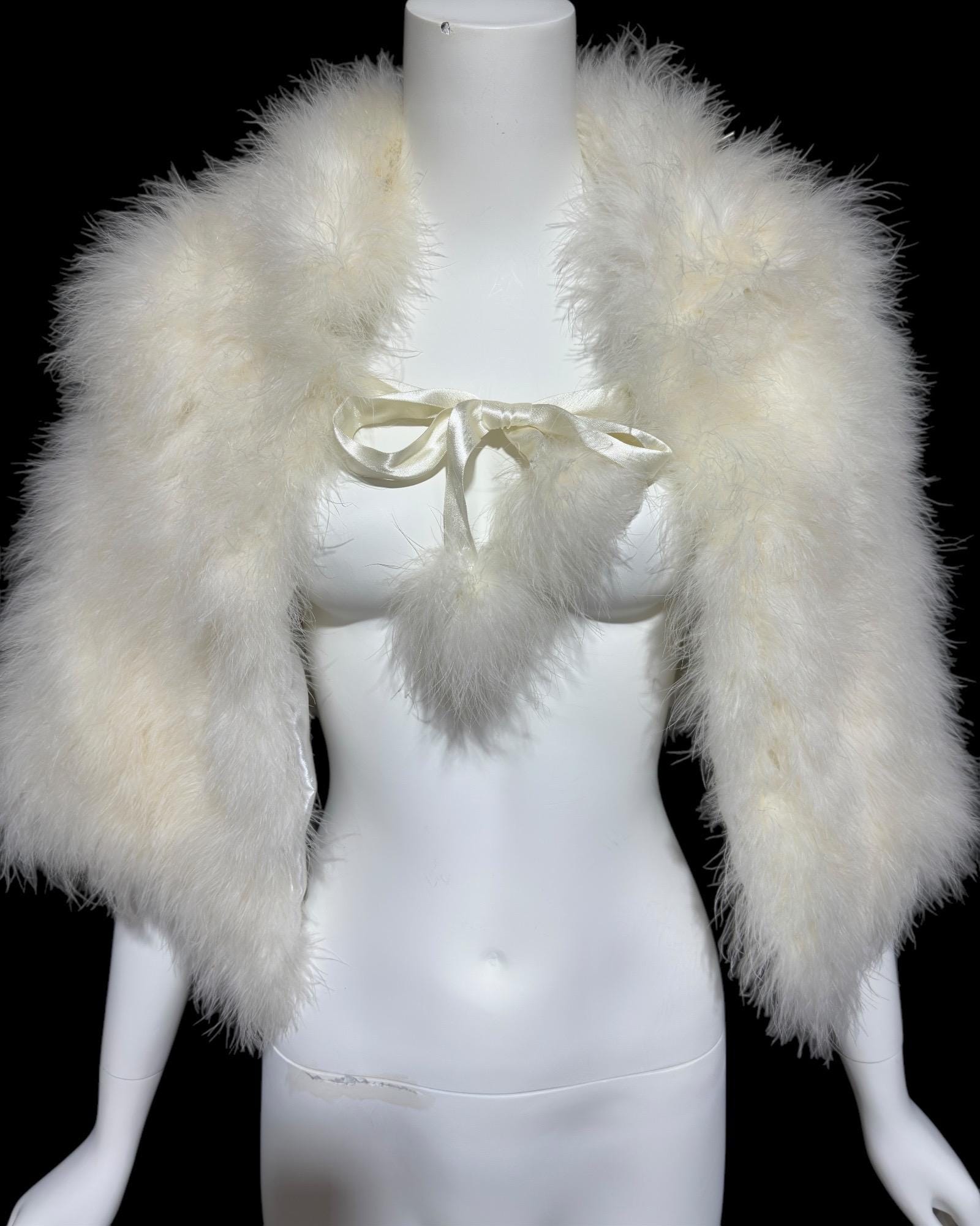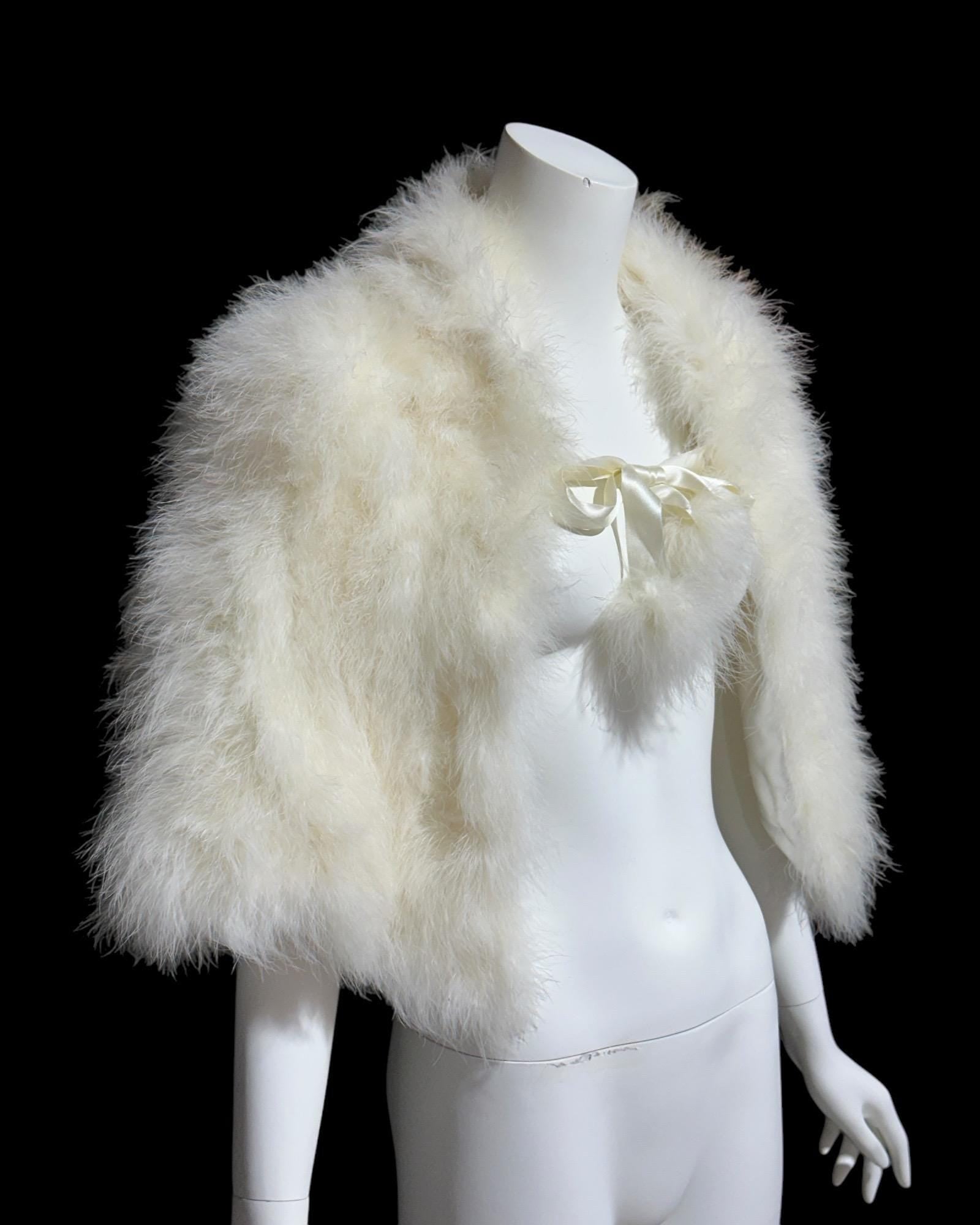 ALFRED ANGELO 1980s Snowy white marabou wedding bridal capelet evening stole, tie front