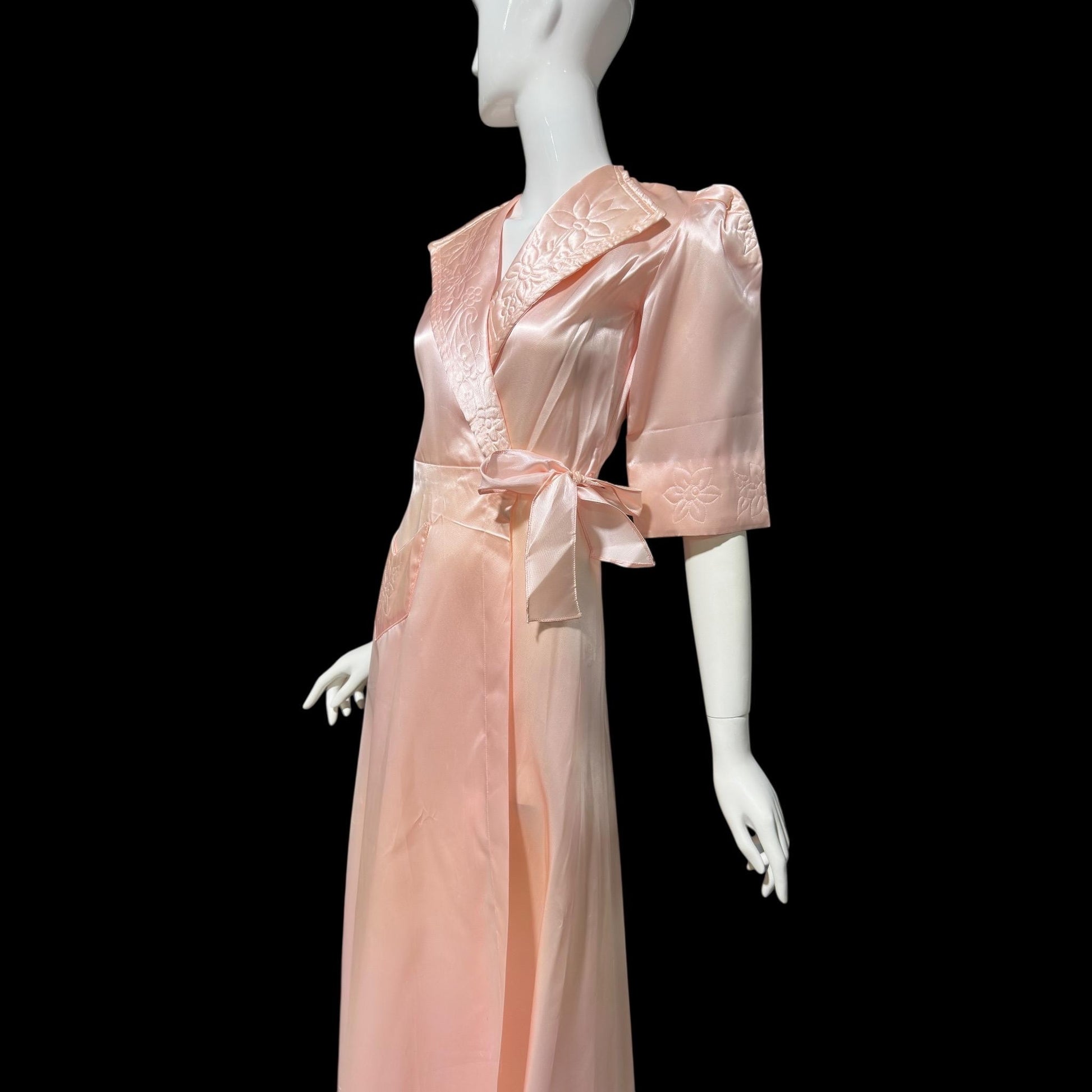 ANITA vintage 1940s Dressing Gown Robe, Made in Cuba Shiny Satin Pink Wrap Housecoat