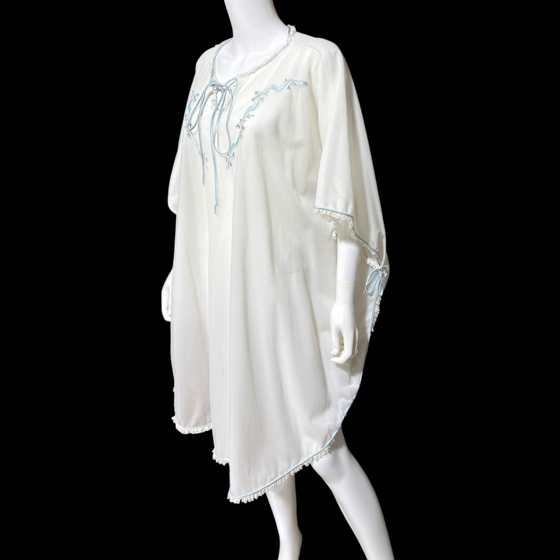 COUTURE INTERNATIONALE Pedro Rodriguez, vintage 1960s caftan robe, sheer double layer chiffon white poncho cape loungewear
