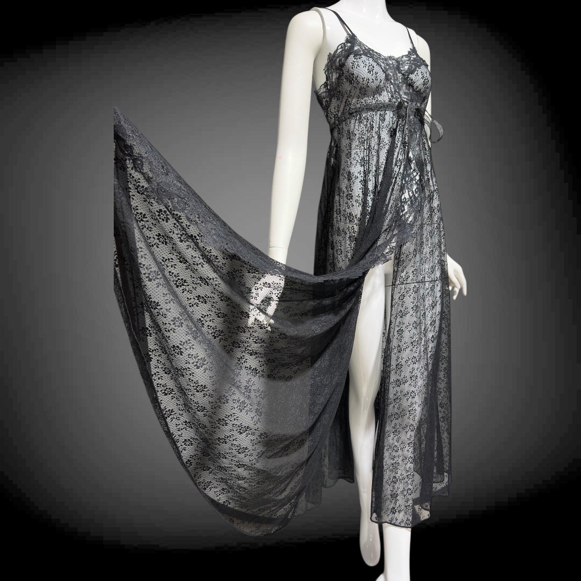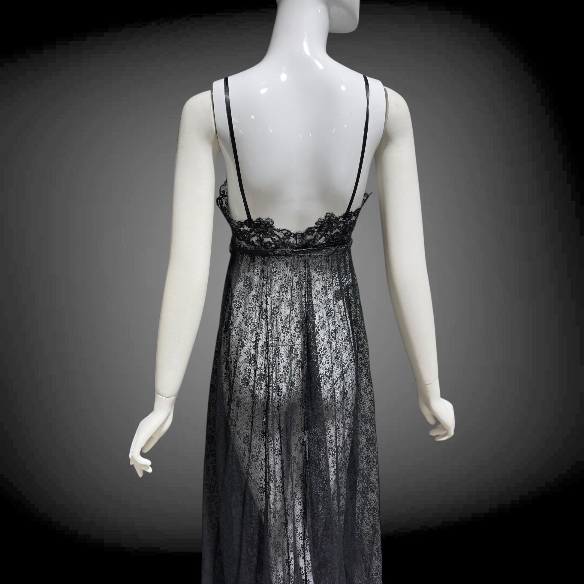 GLYDON'S Hollywood 1960s totally sheer black lace full length lingerie dress