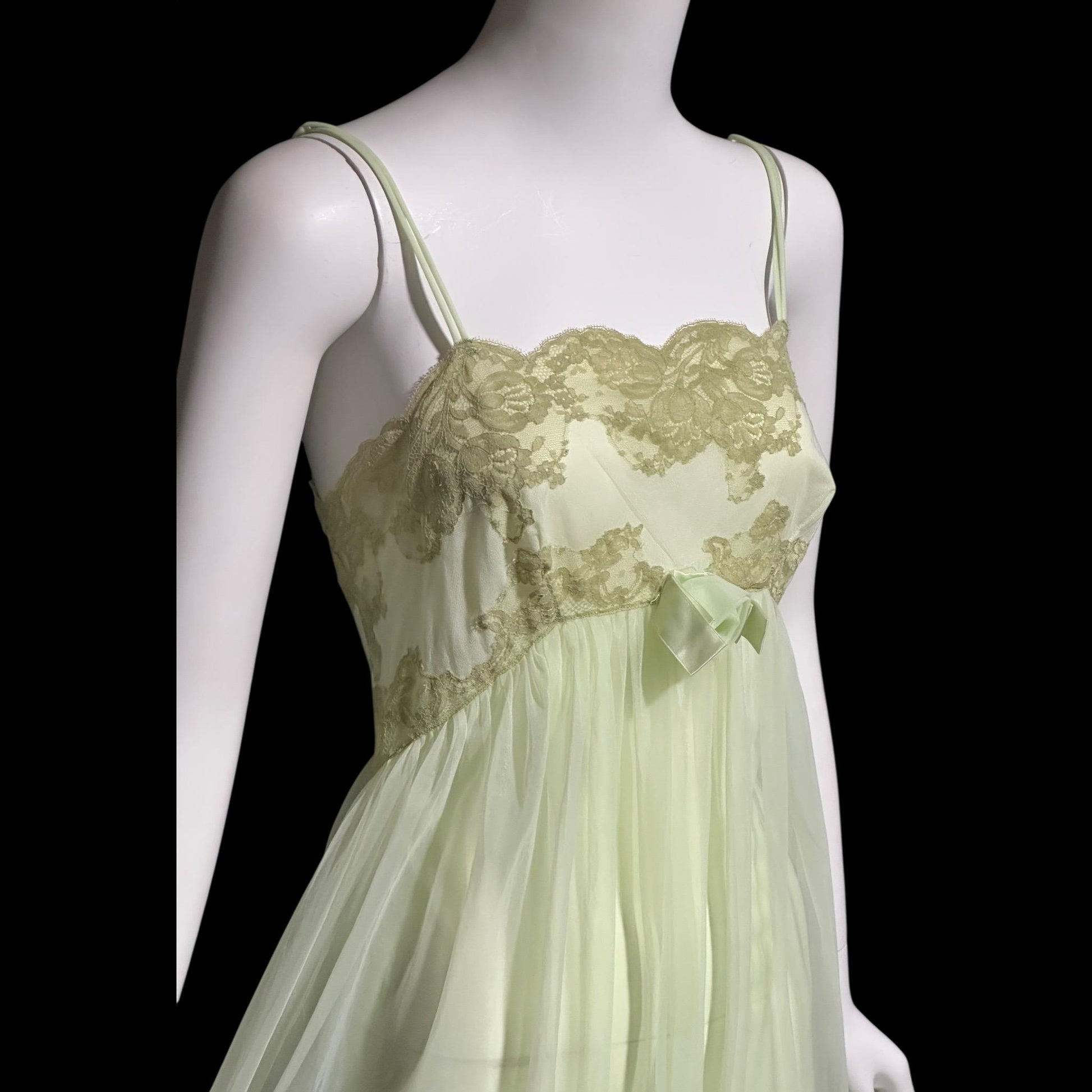 Pale apple green Nylon and Lace night Dress