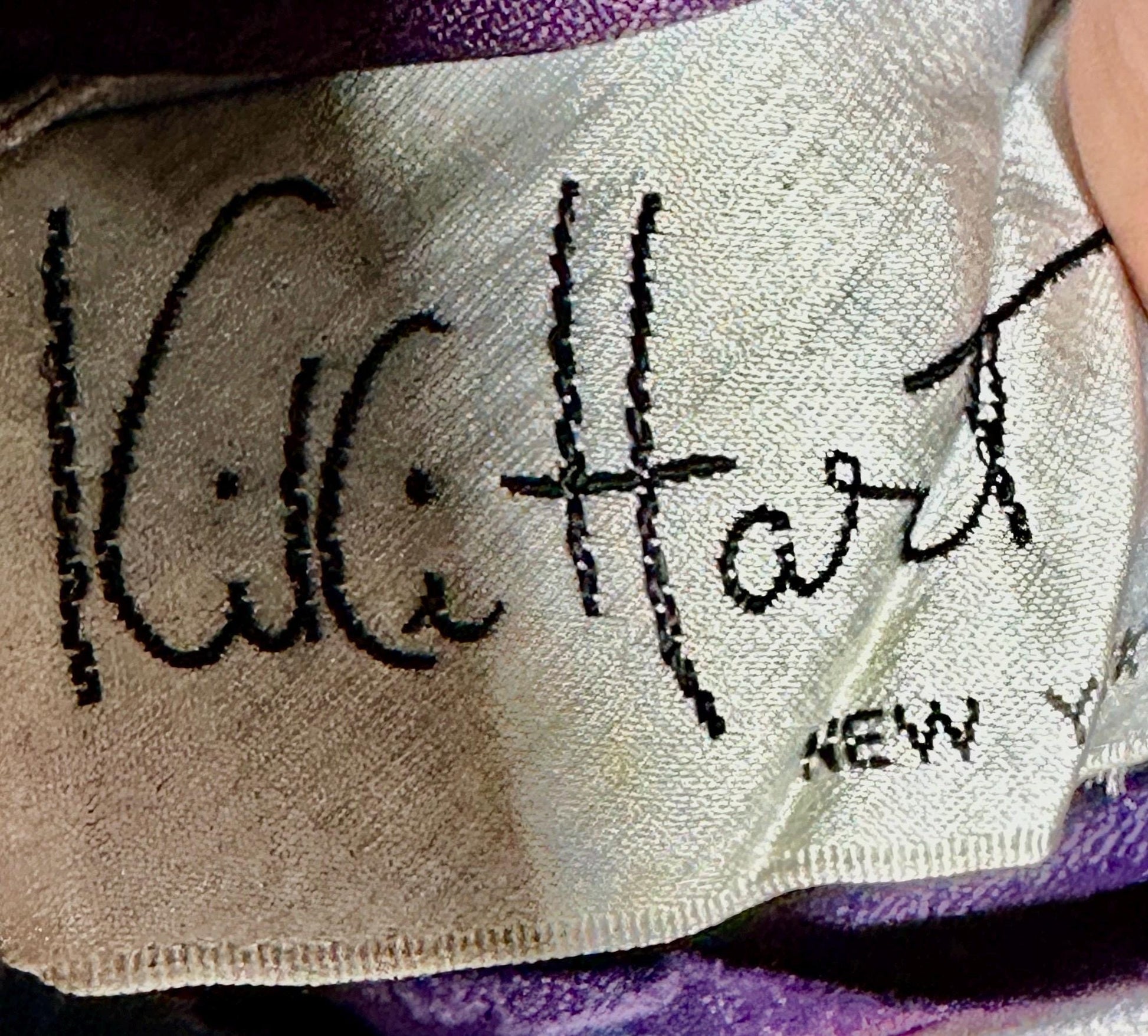 KIKI HART vintage 1960s evening dress, dusty blue poly chiffon gown, Scarf Sleeves