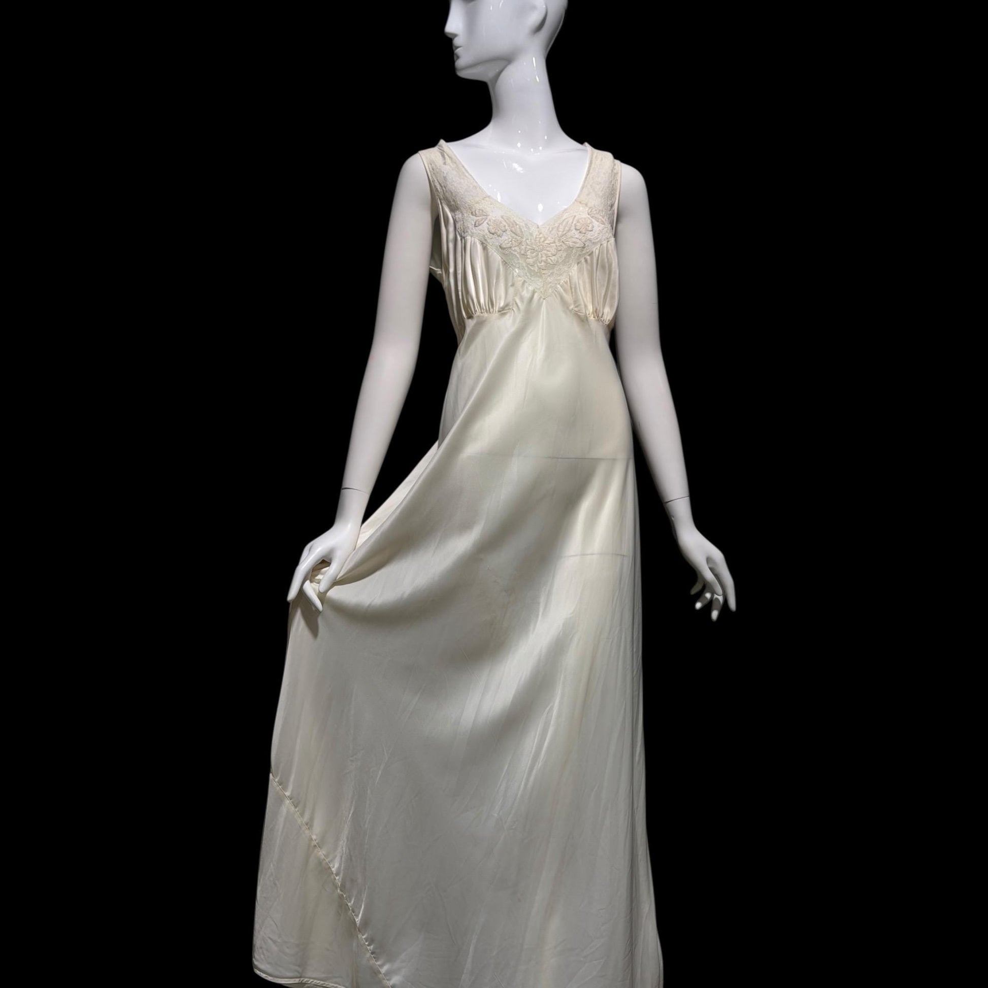 LAURA LANE Vintage Nightgown slip dress, 1940s pearly white satin Lingerie Dress, Medium