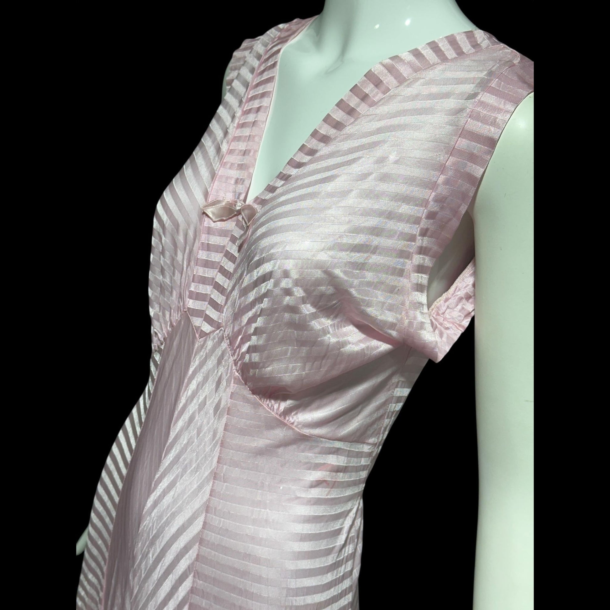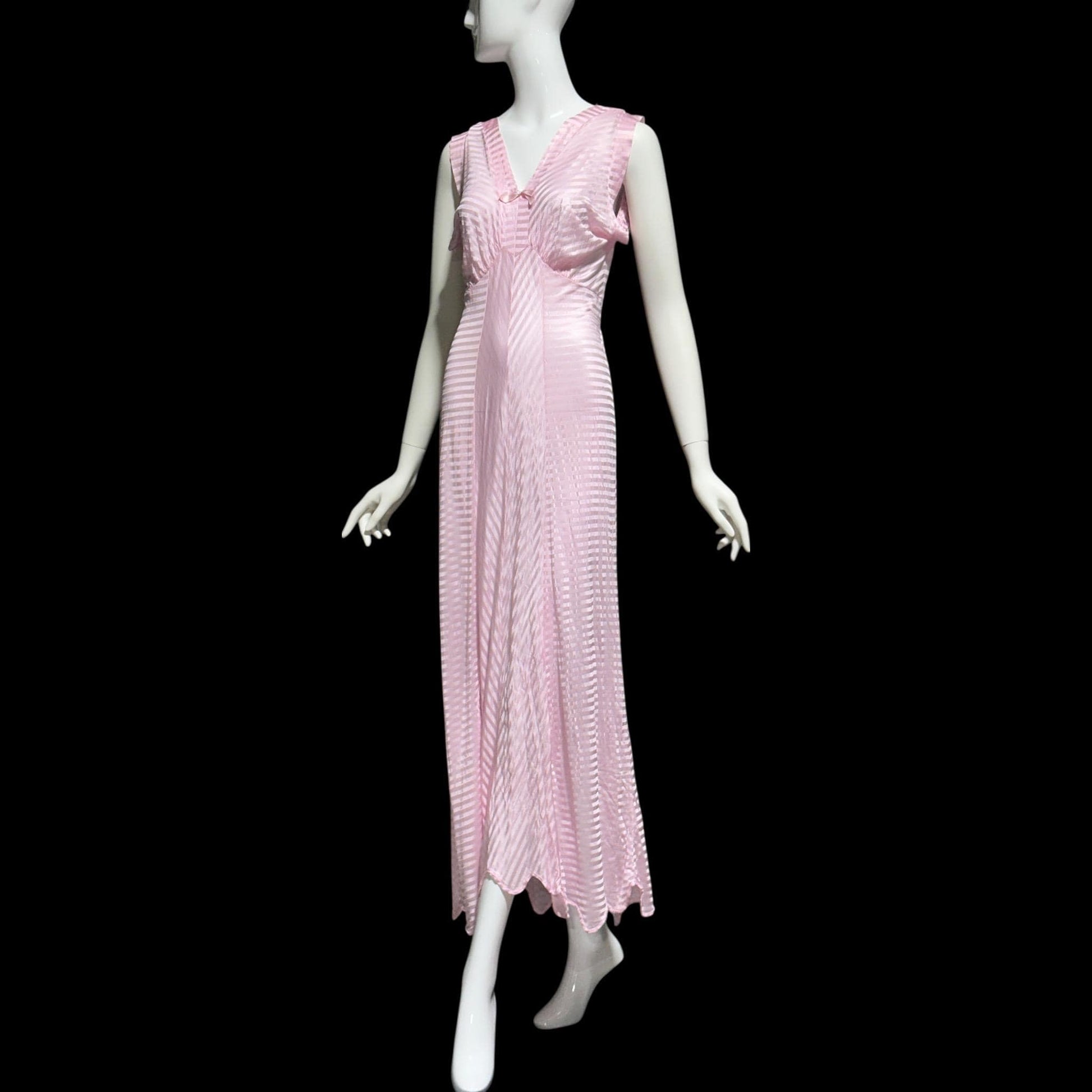 LORRAINE vintage 1940s Nightgown Slip Dress: Pink Shadow Stripe Rayon Night dress