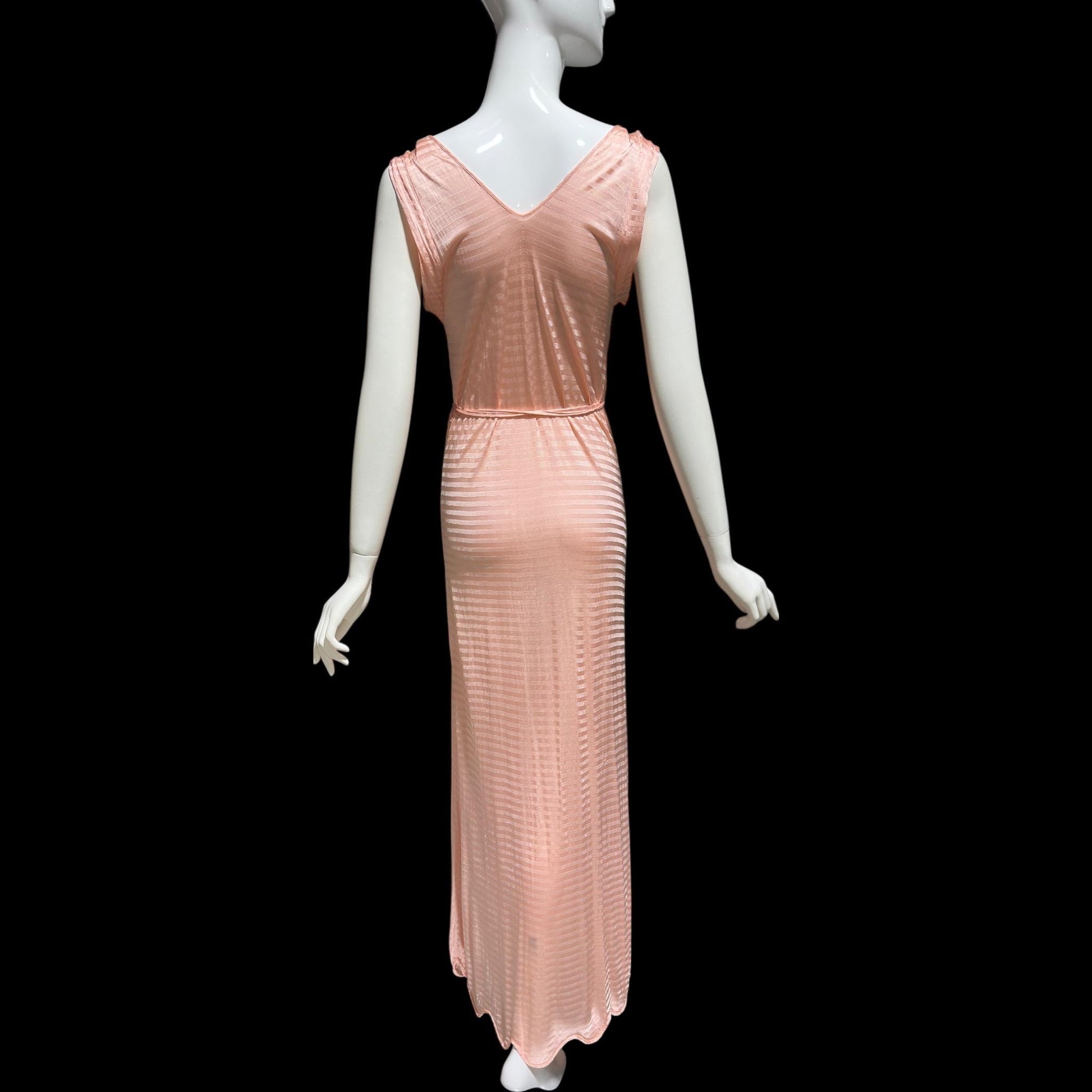 LORRAINE vintage 1940s nightgown slip dress, Shiny peachy pink bias cut slip dress, full length