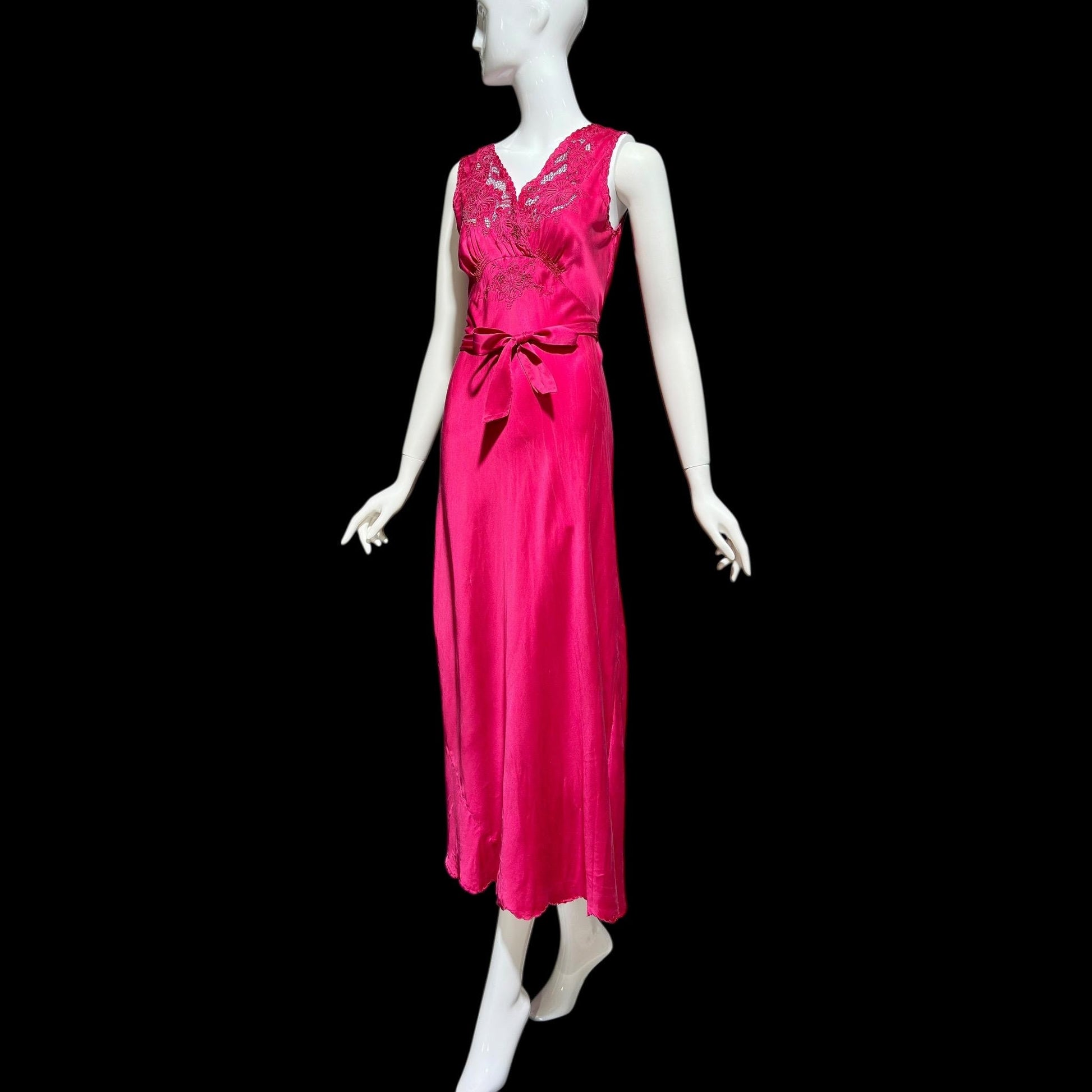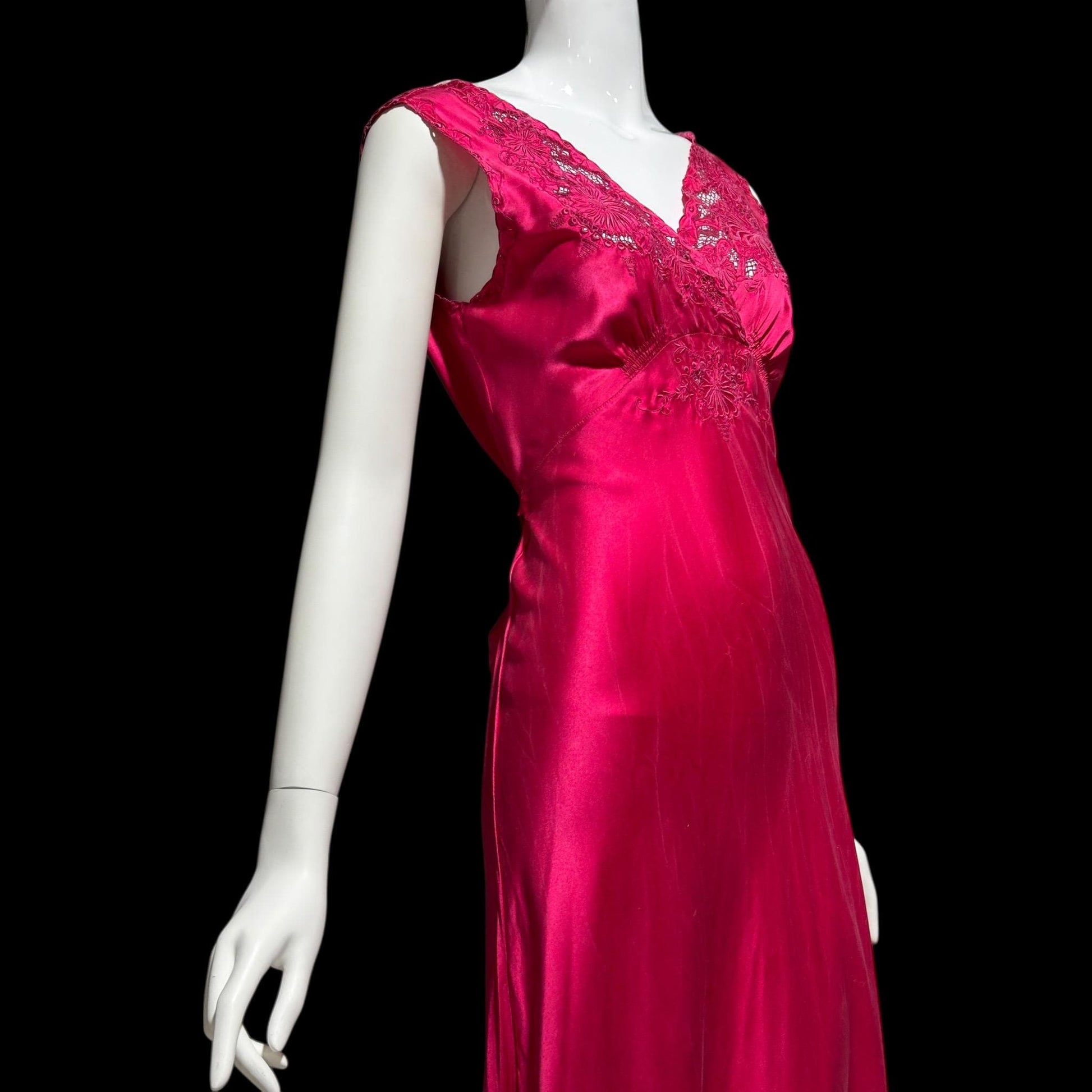 PEONY vintage 1950s Silk Nightgown Slip Dress: Made in SHANGHAI Embroidered Magenta bias cut gown