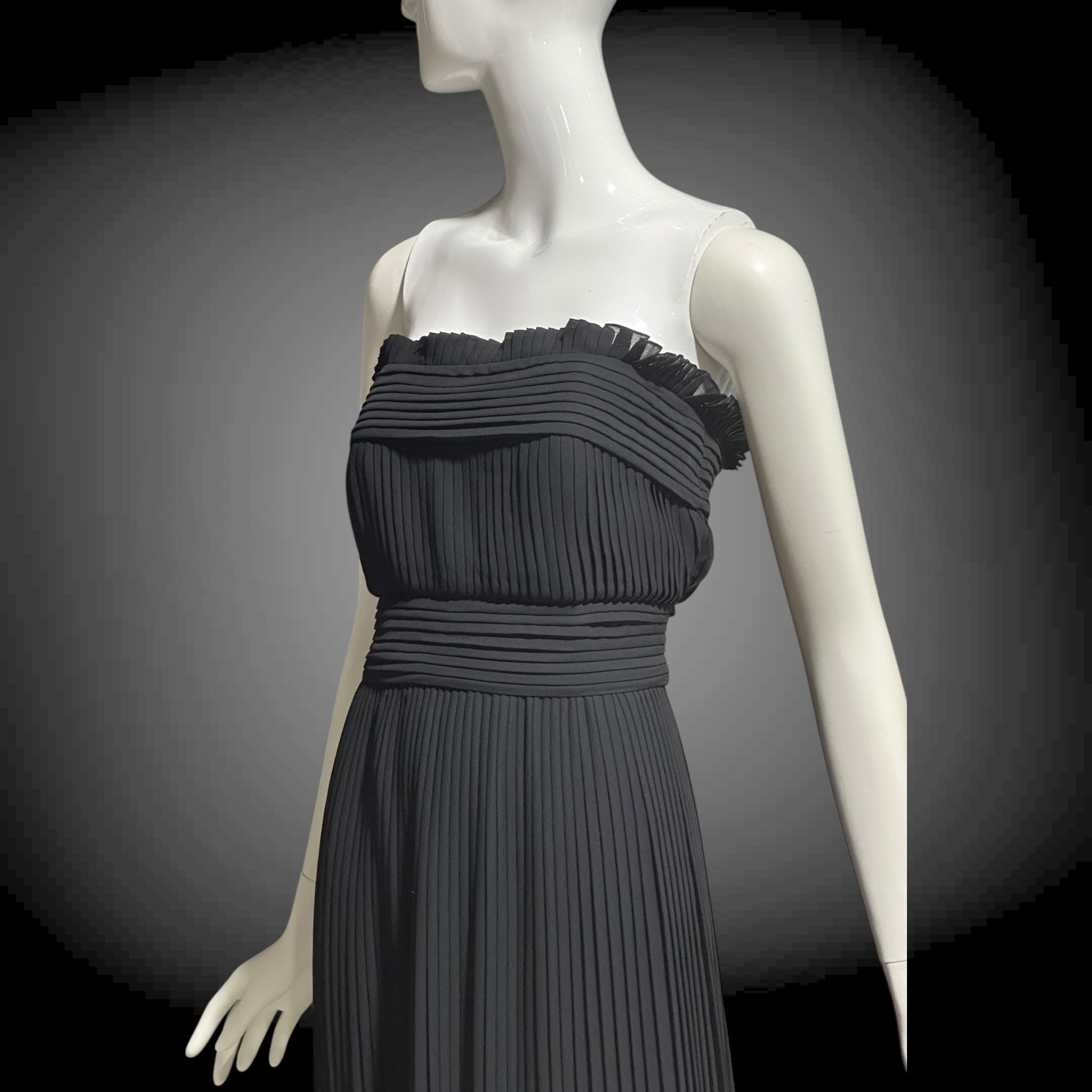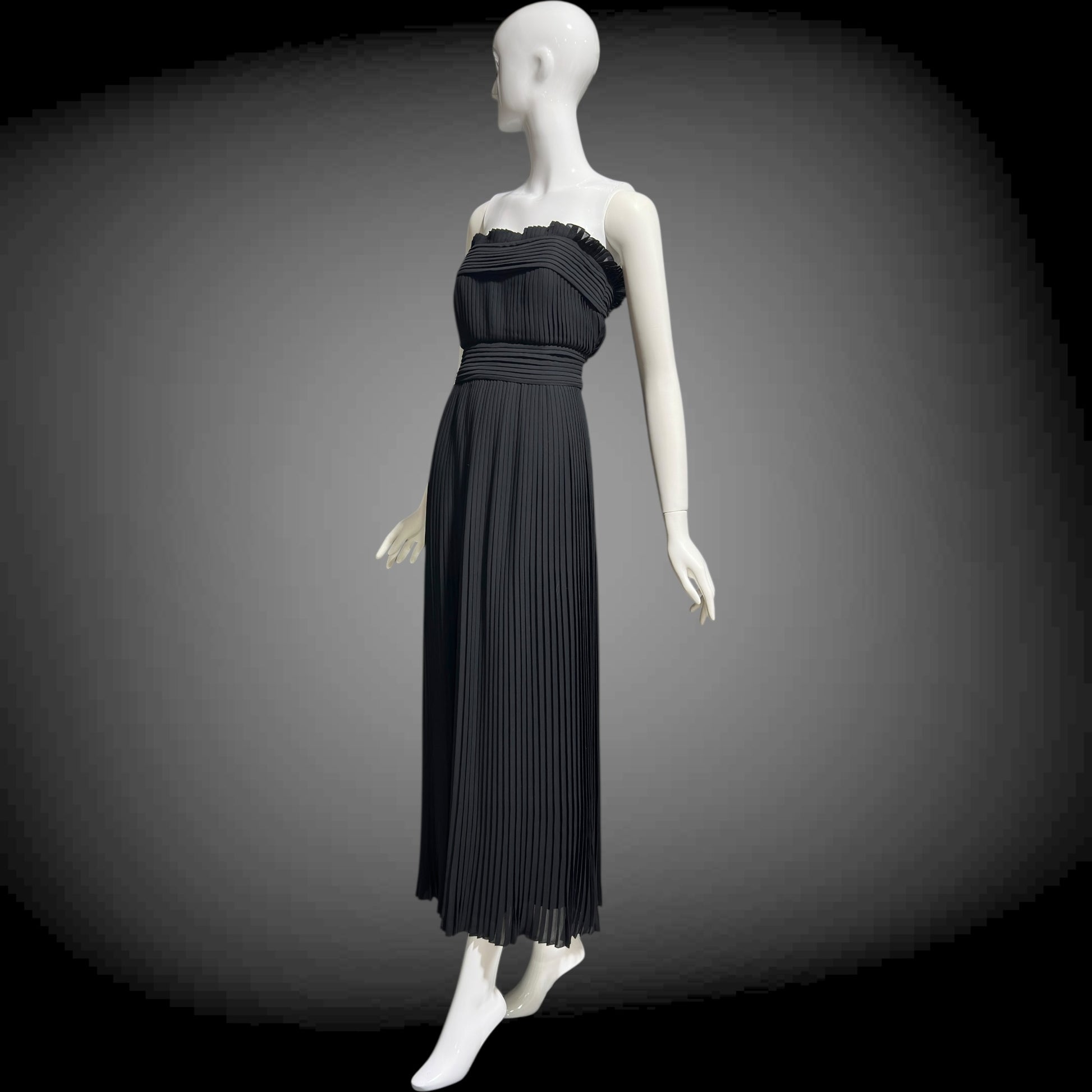 PILAR ROSSI COUTURE 1990s strapless pleated black gown