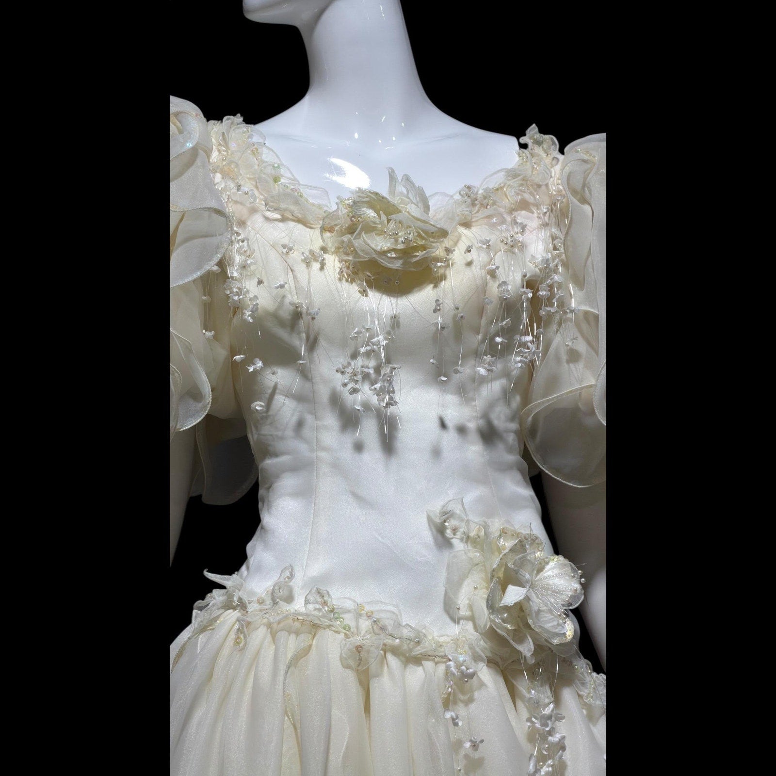 ST PUCCHI vintage 1980s wedding dress gown, Ivory Fairytale ball gown, 100% Thai silk