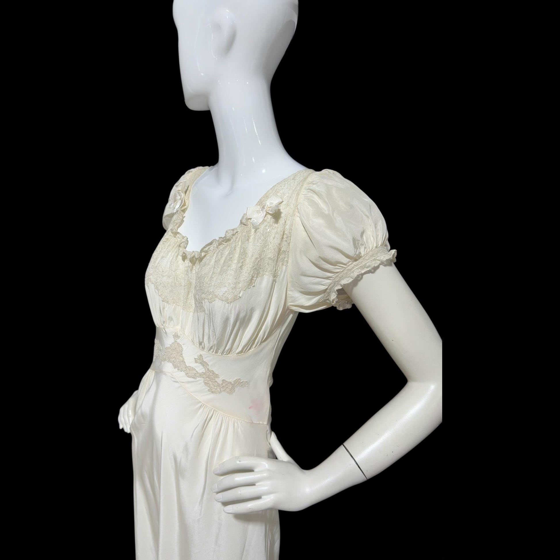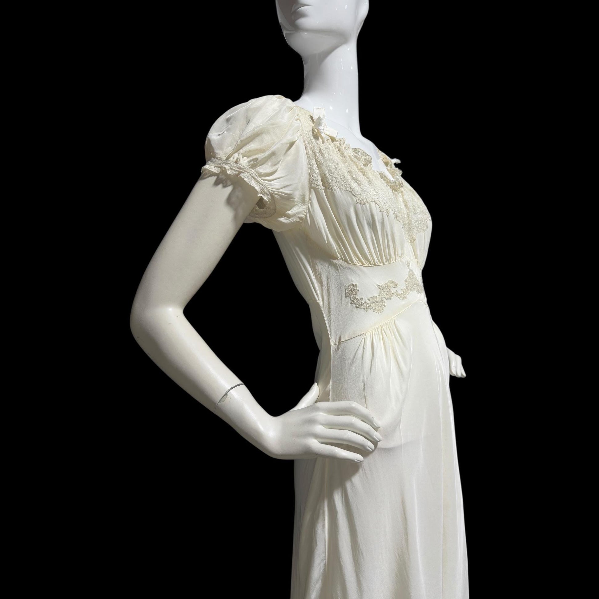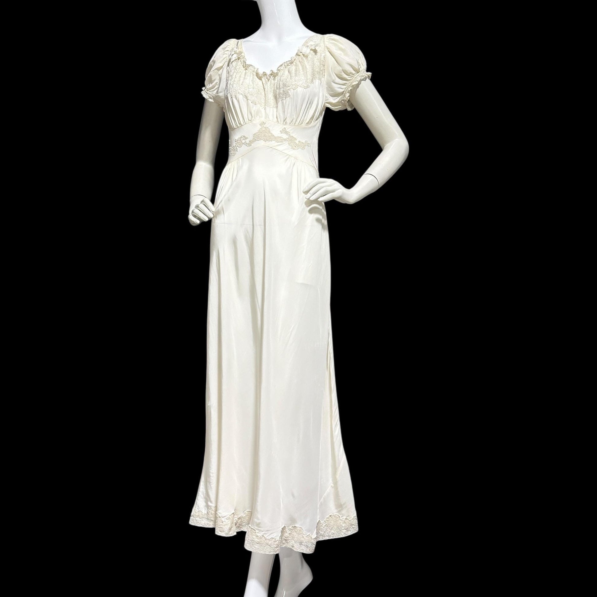 TROUSSEAU vintage 1940s nightgown slip dress, creamy white rayon night dress, full length