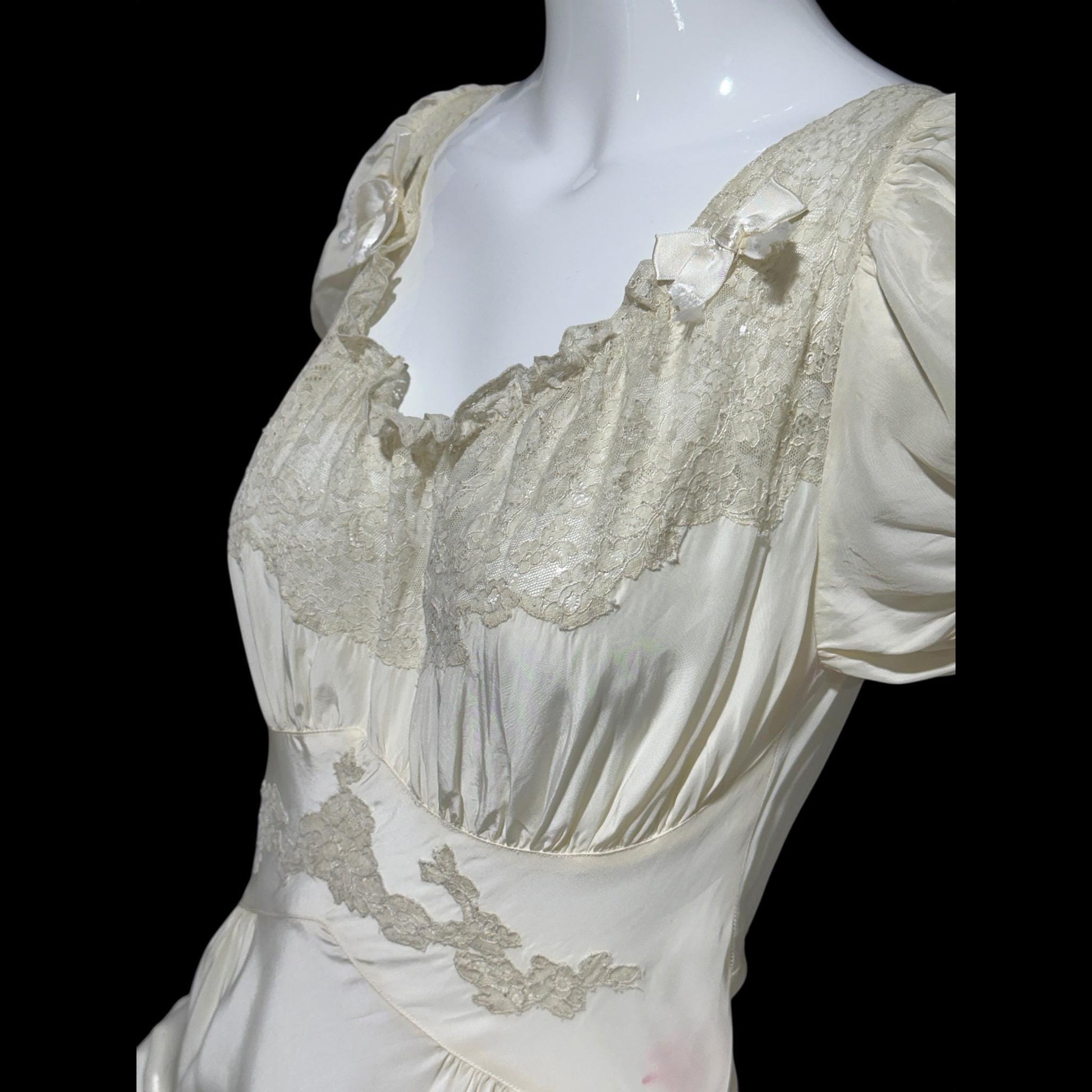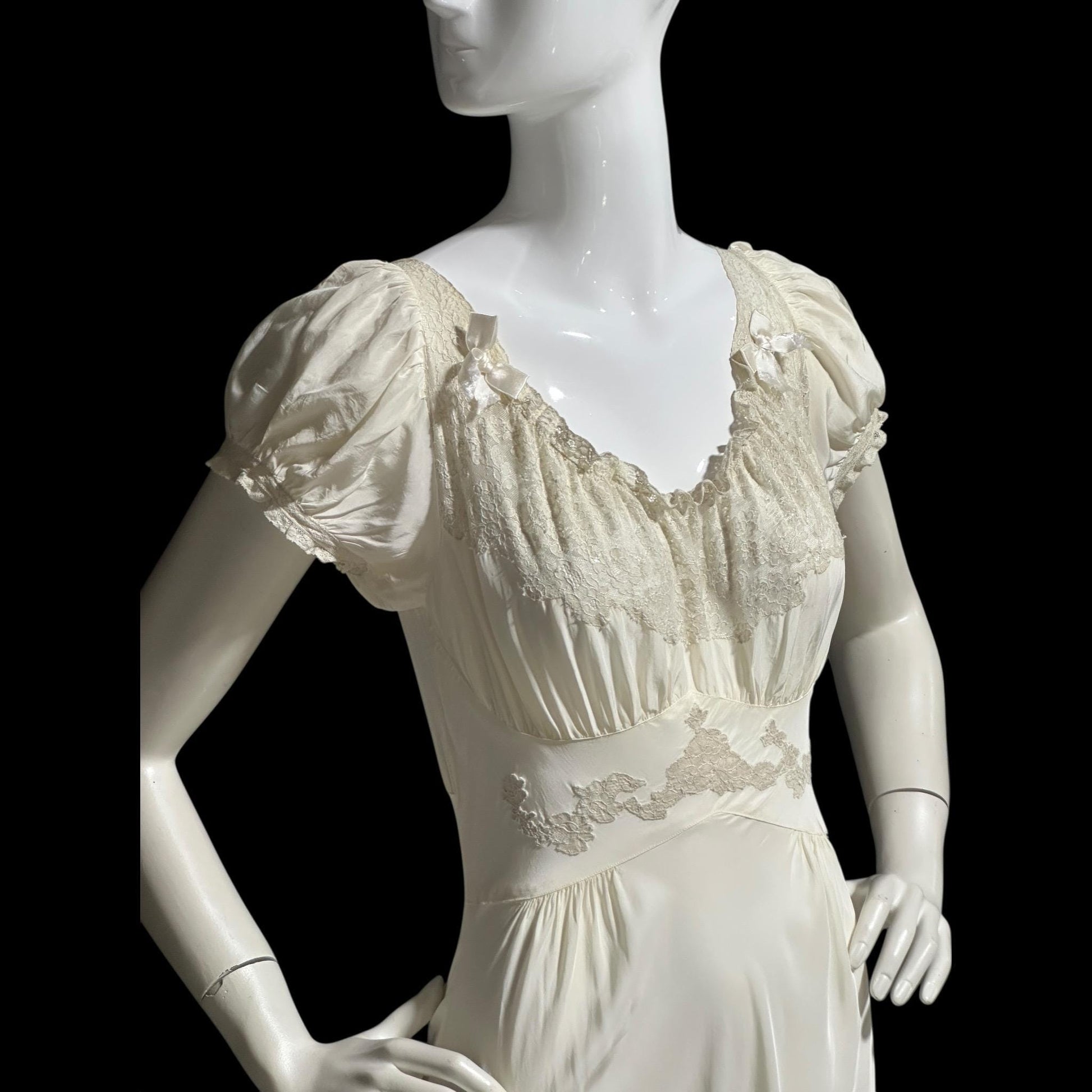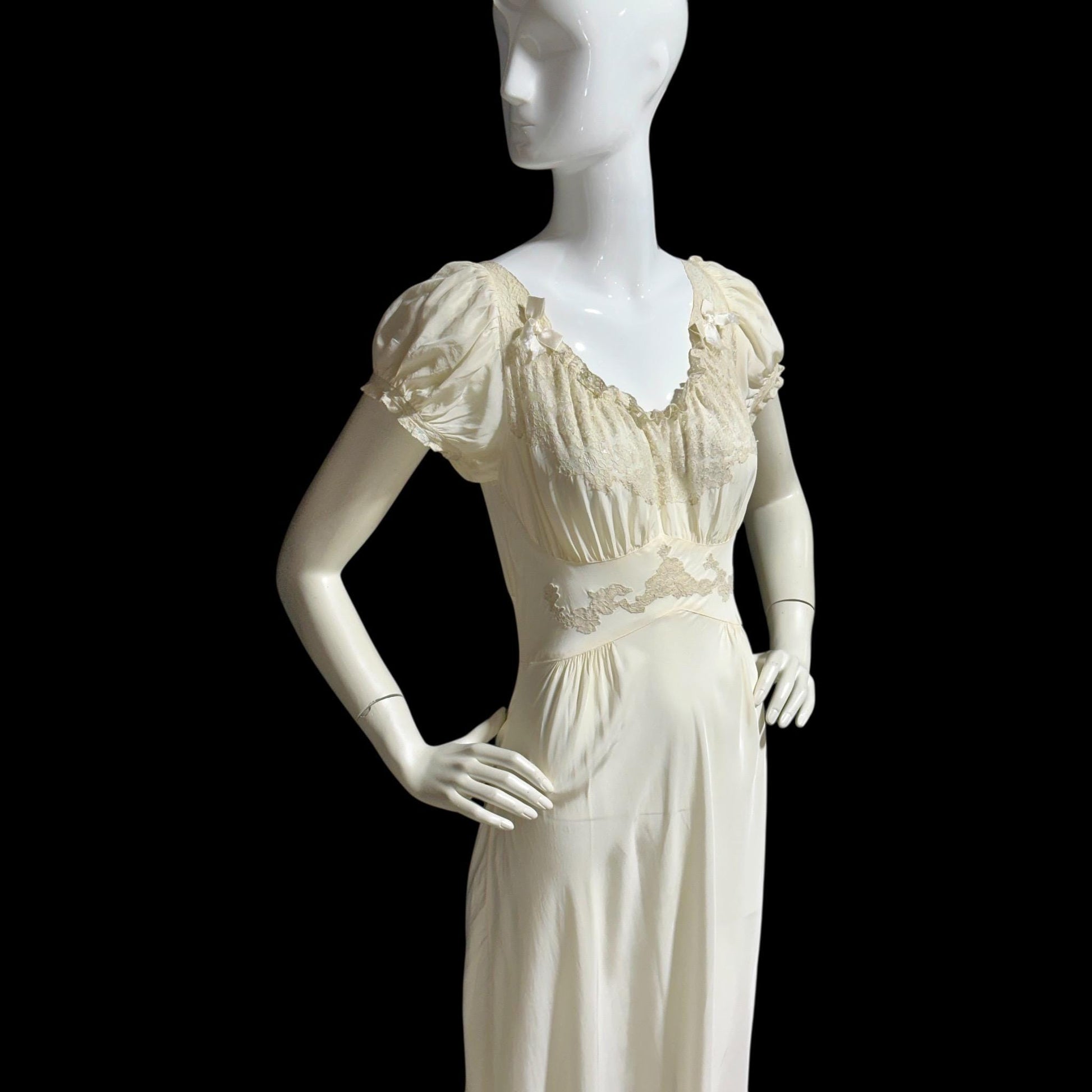 TROUSSEAU vintage 1940s nightgown slip dress, creamy white rayon night dress, full length