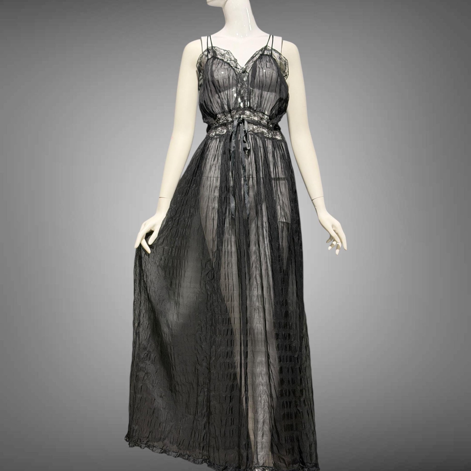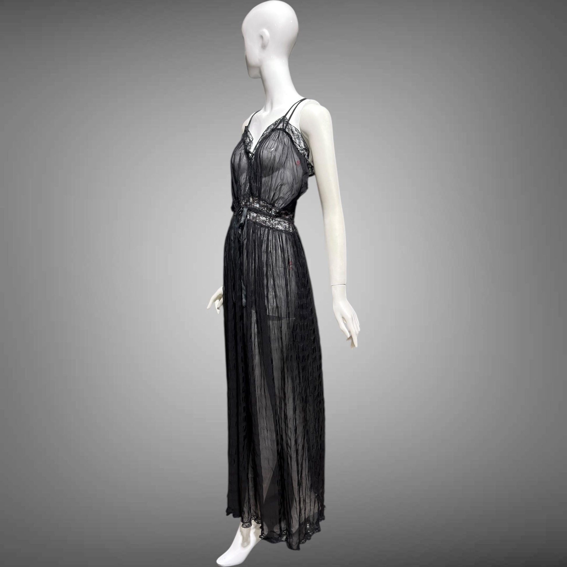 TULA vintage 1940s Nightgown slip dress, sultry black sheer waffled nylon lingerie dress, large