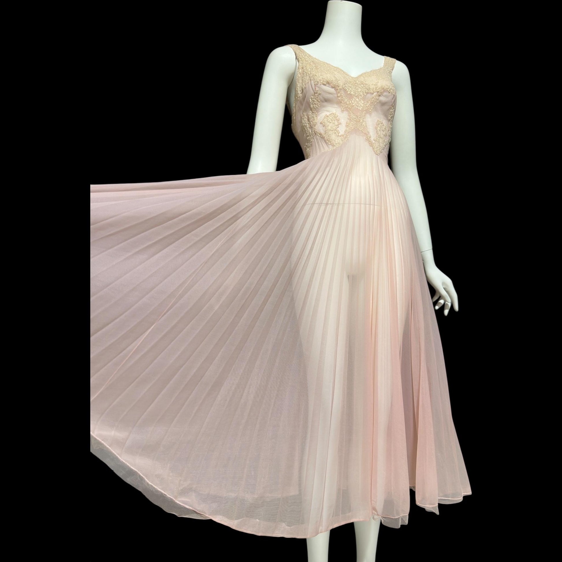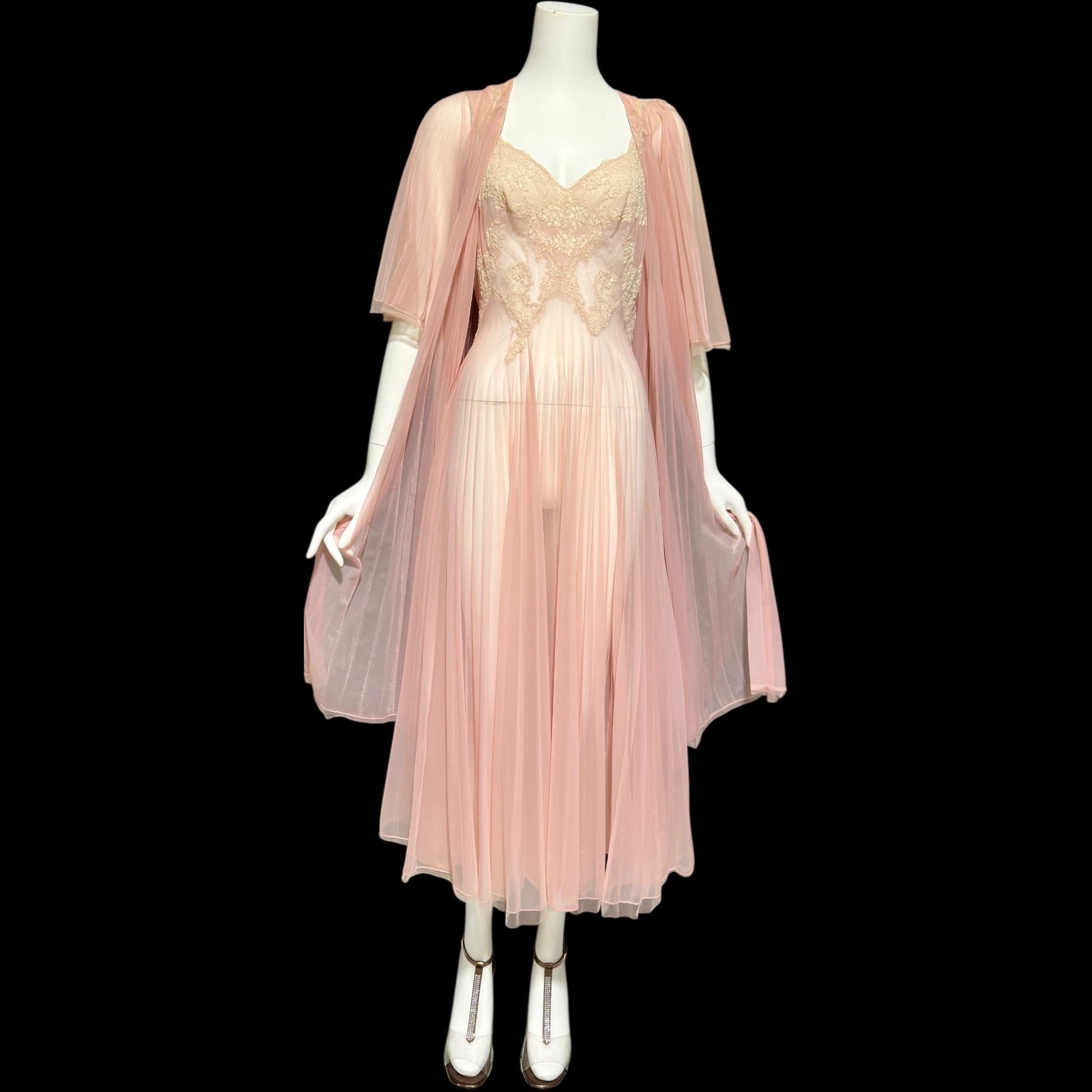 VANITY FAIR Peignoir set, Vintage 1940s Dusty Pink pleated bridal slip dress and robe