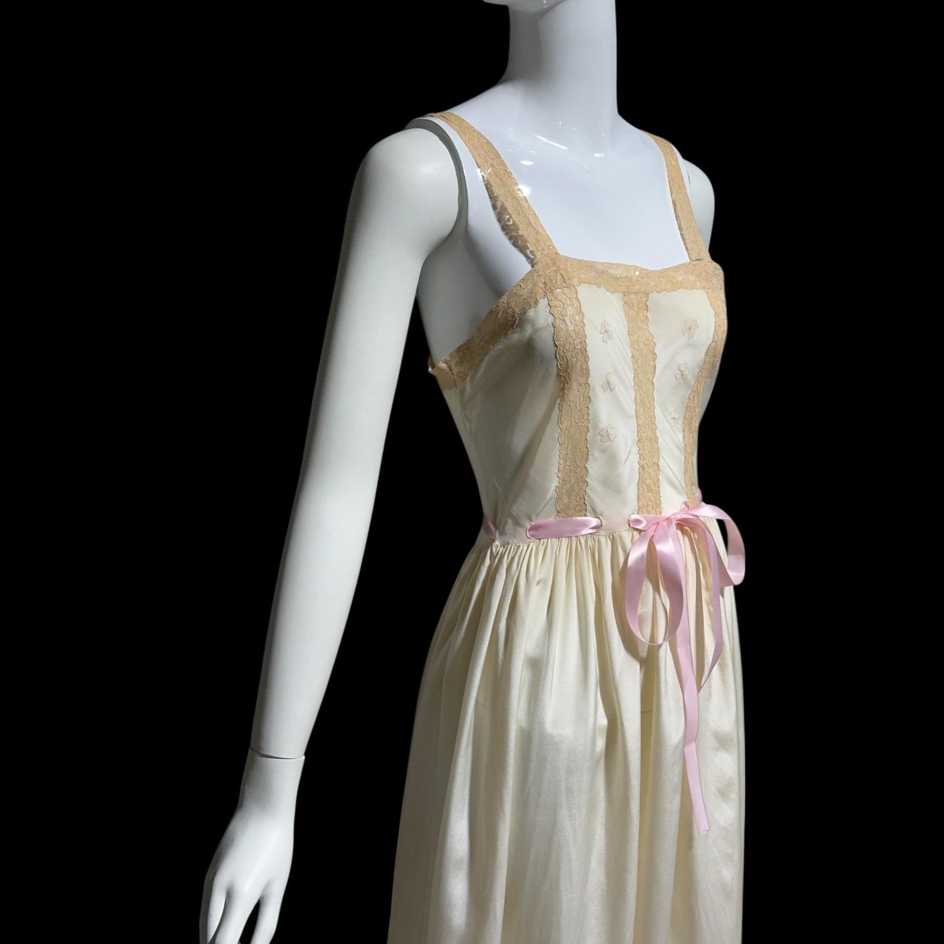 VERONICA vintage 1940s Silk Nightgown slip dress, Hand Made Pure Silk embroidered lace slip dress