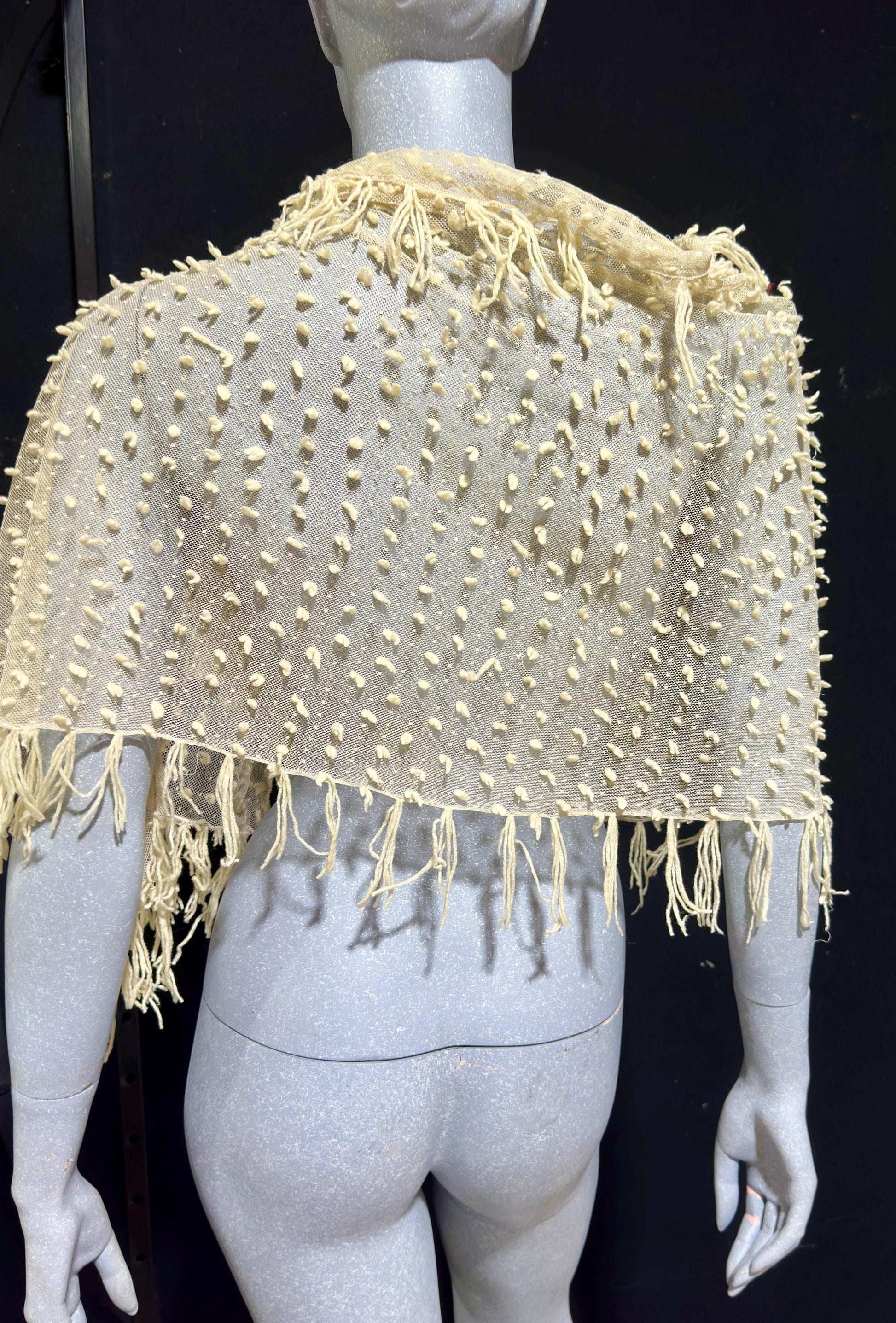 Featherweight off white fringed Victorian wrap.