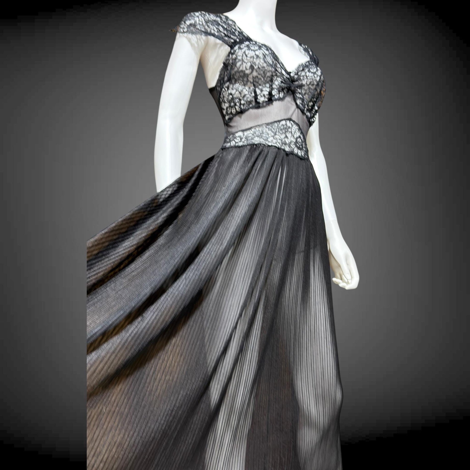 Sheer Black nylon and lace full length lingerie dress