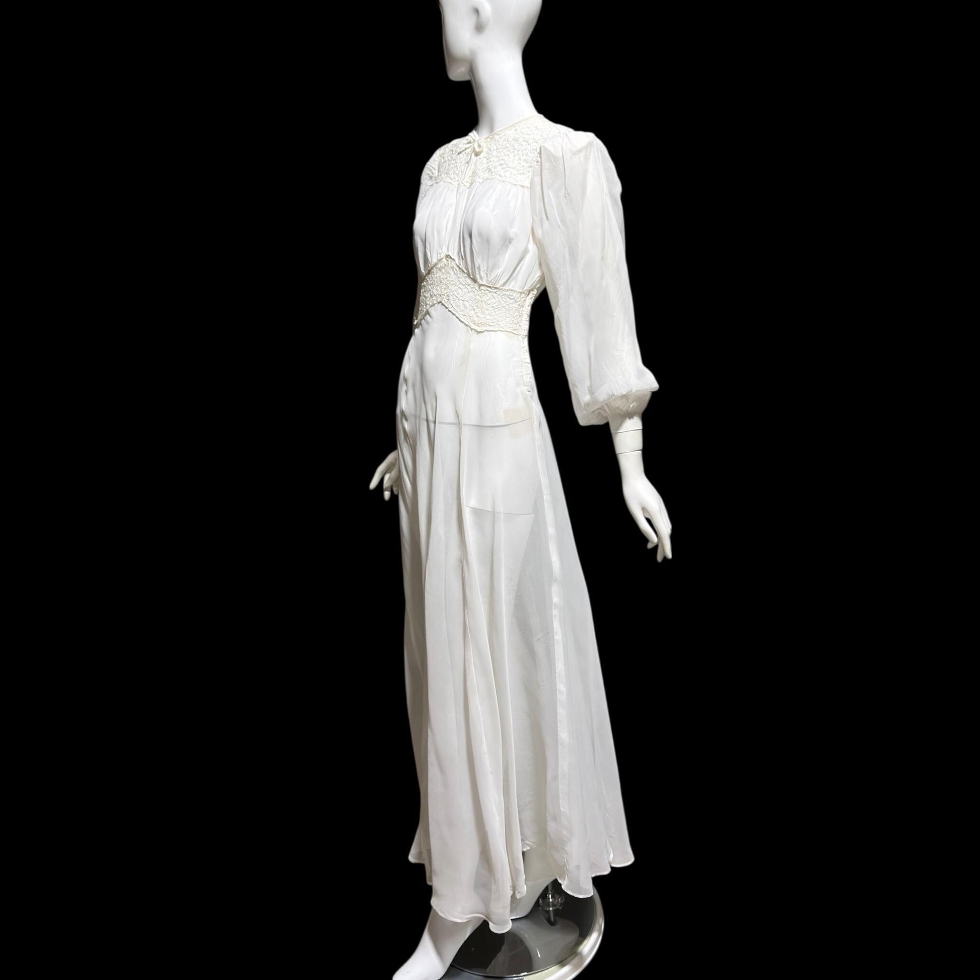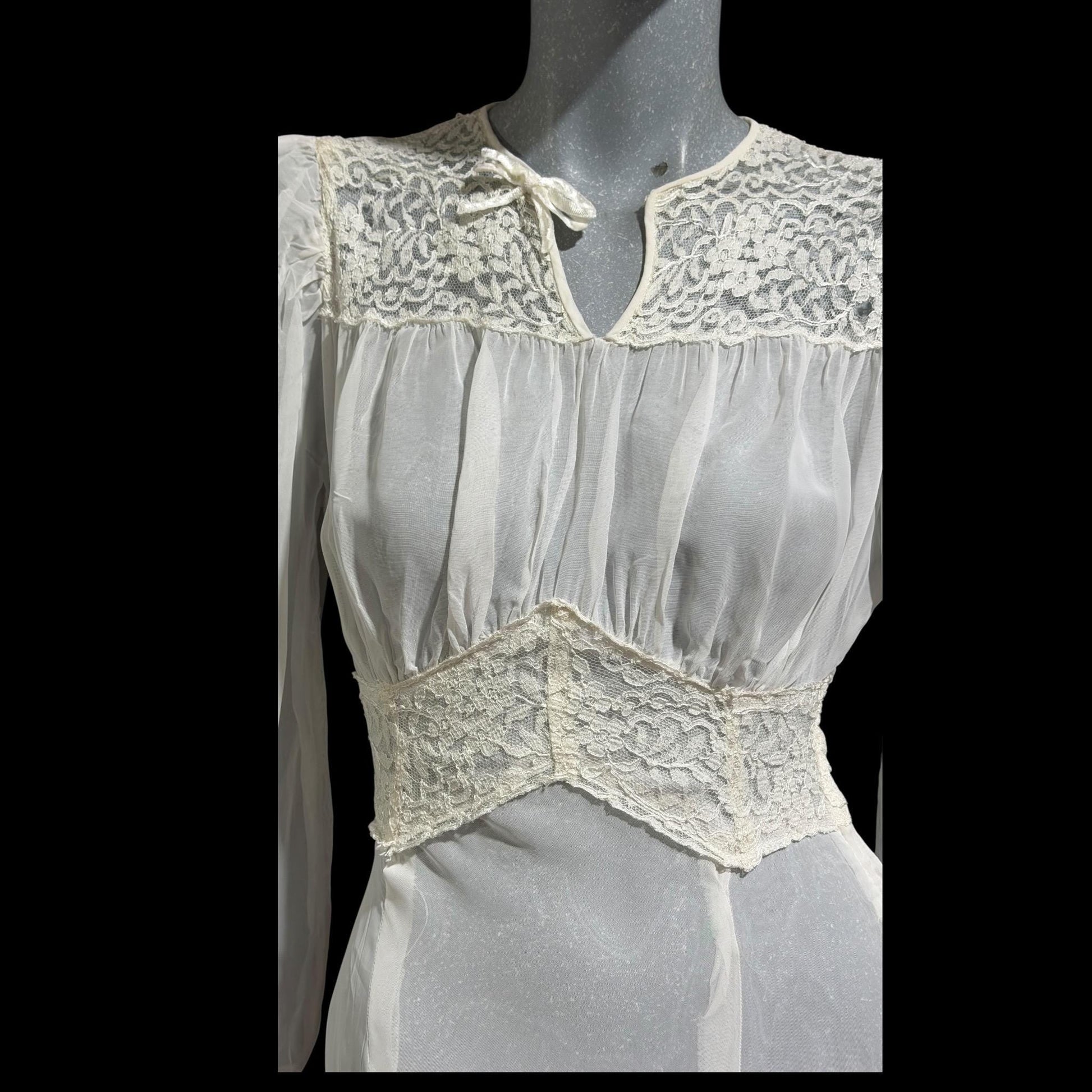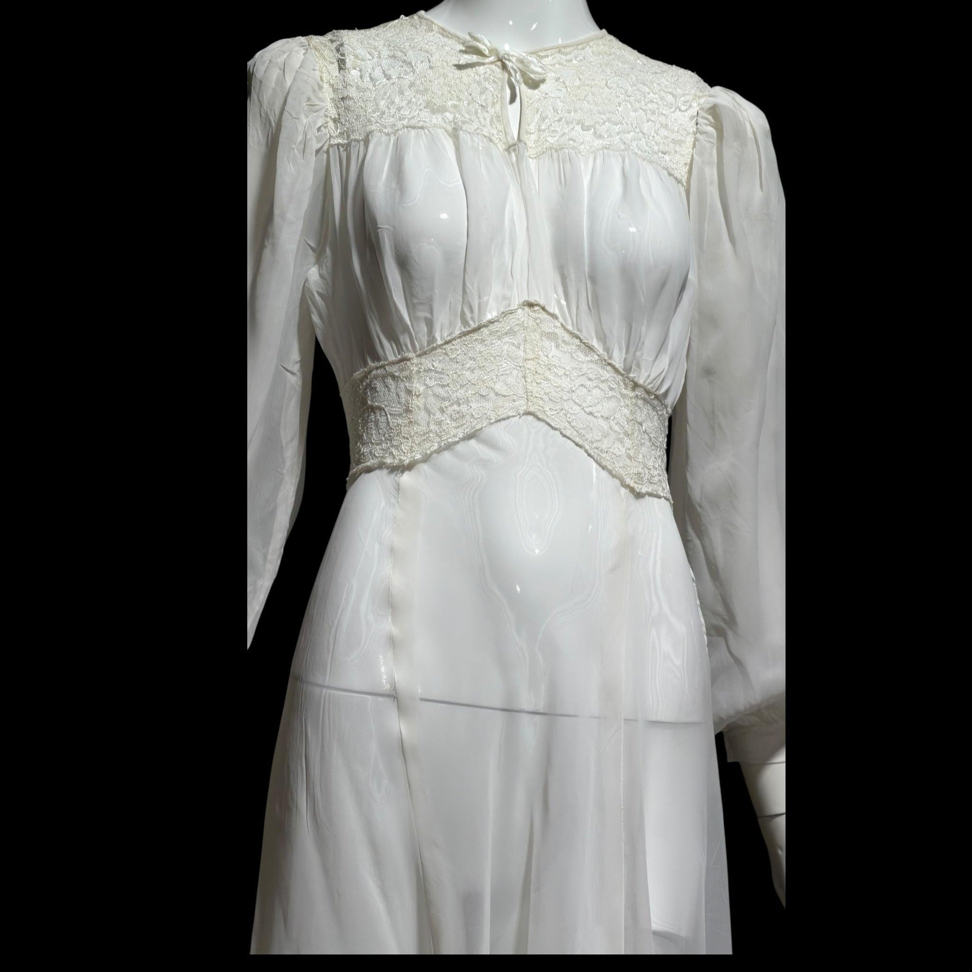 1940s vintage wedding bridal dress, Sheer white Long Sleeve fit flare full length gown
