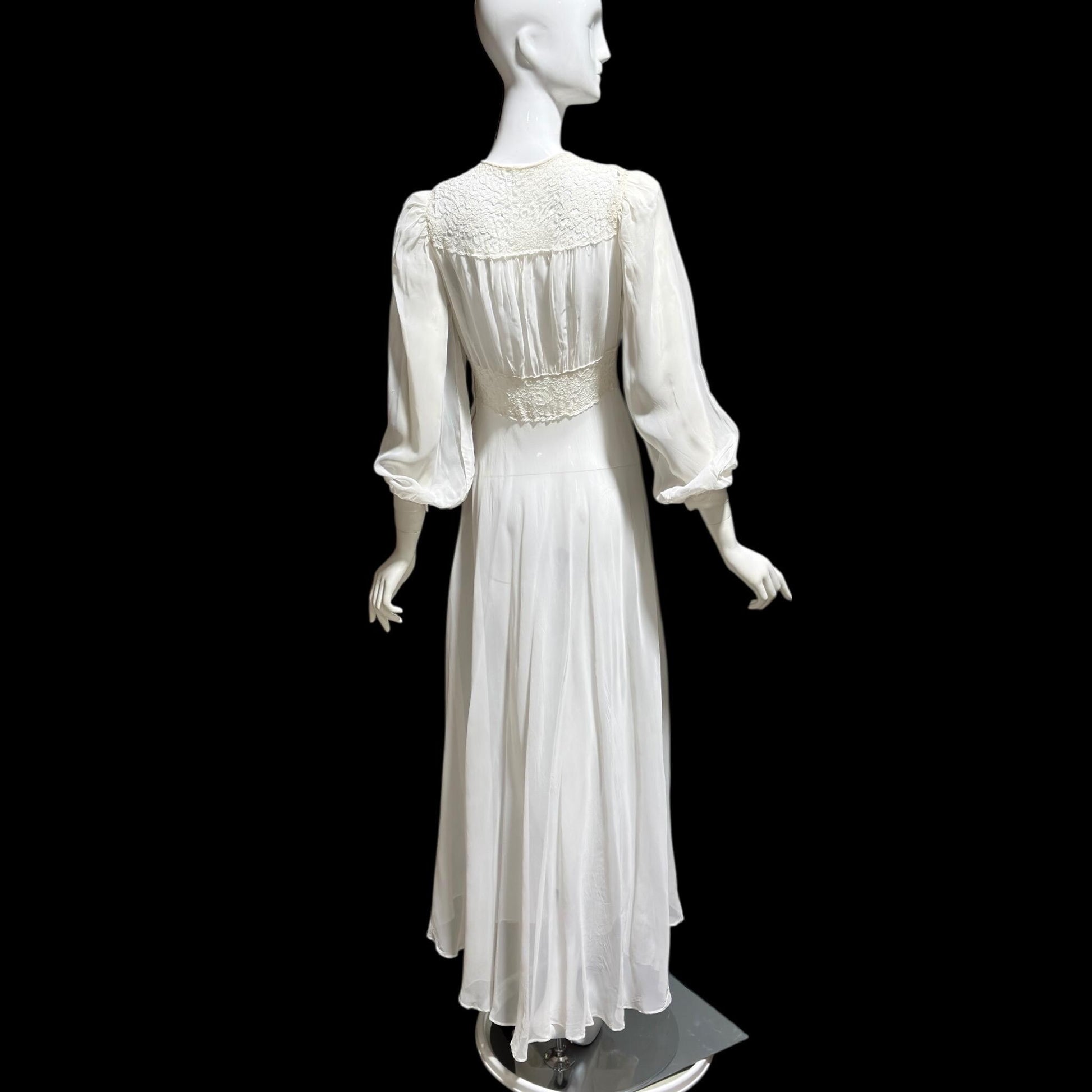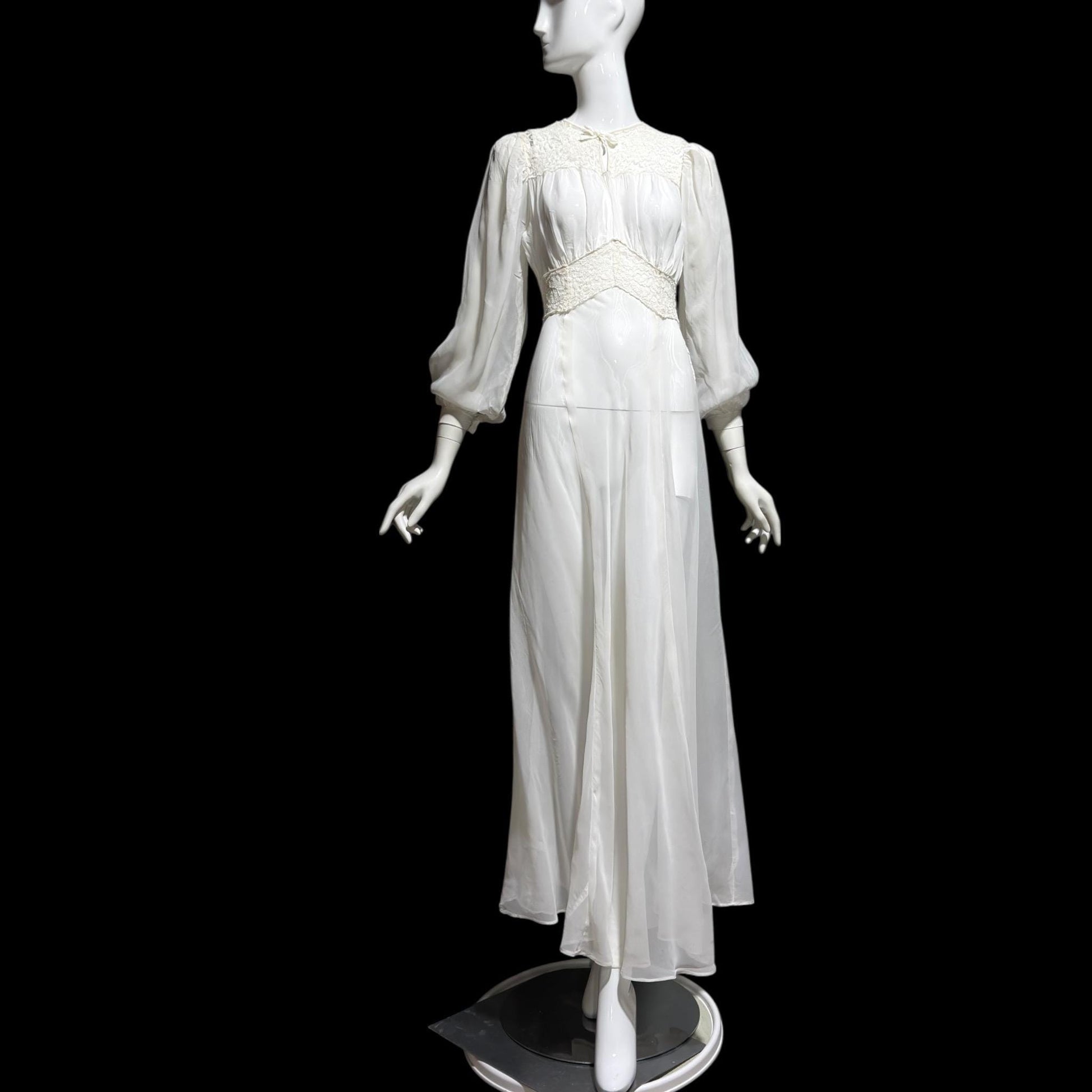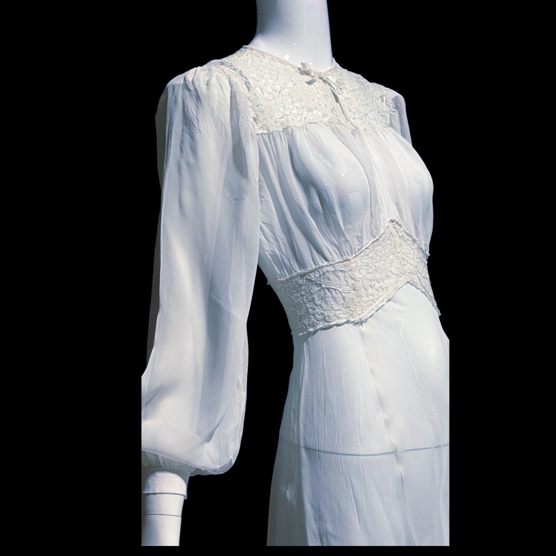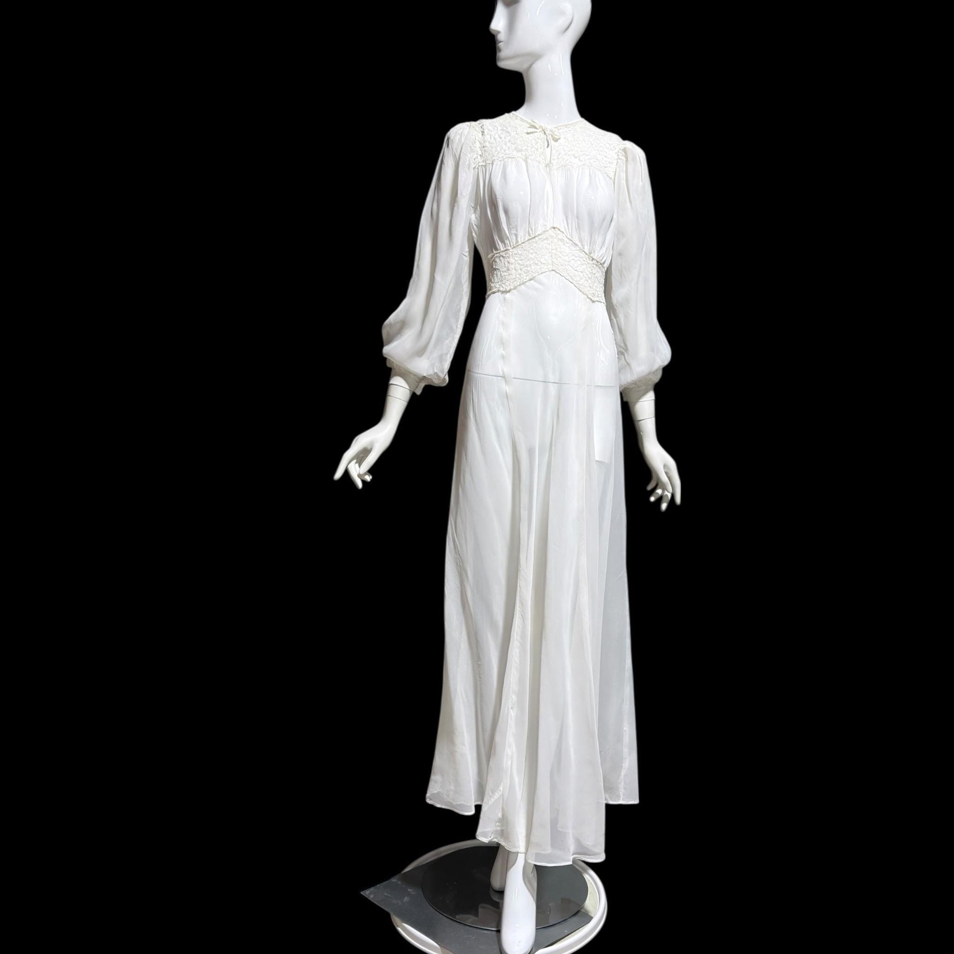 1940s vintage wedding bridal dress, Sheer white Long Sleeve fit flare full length gown