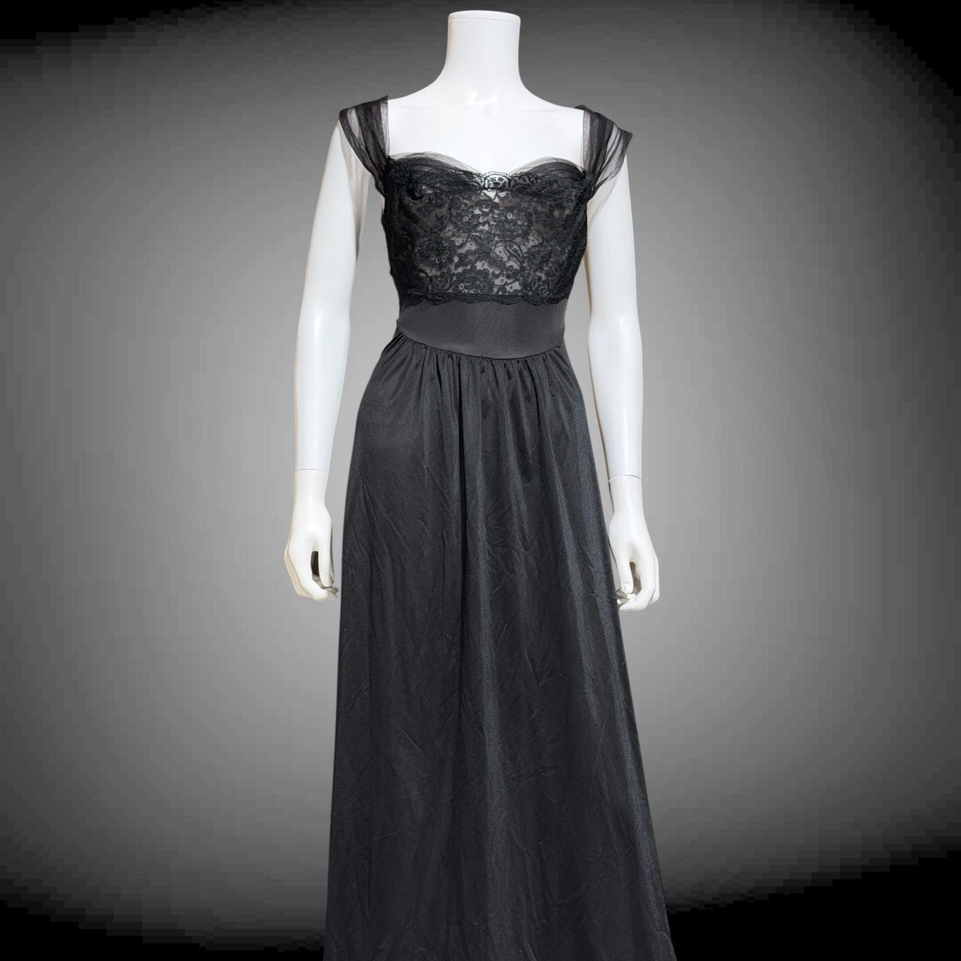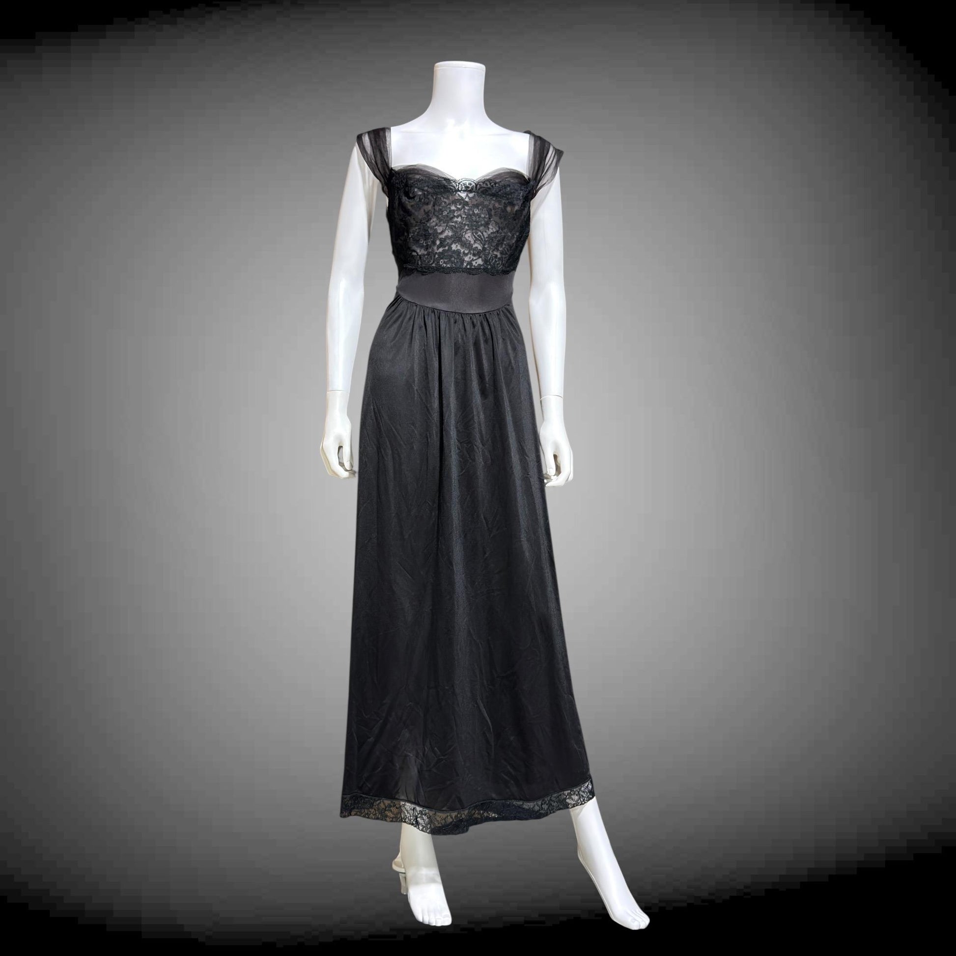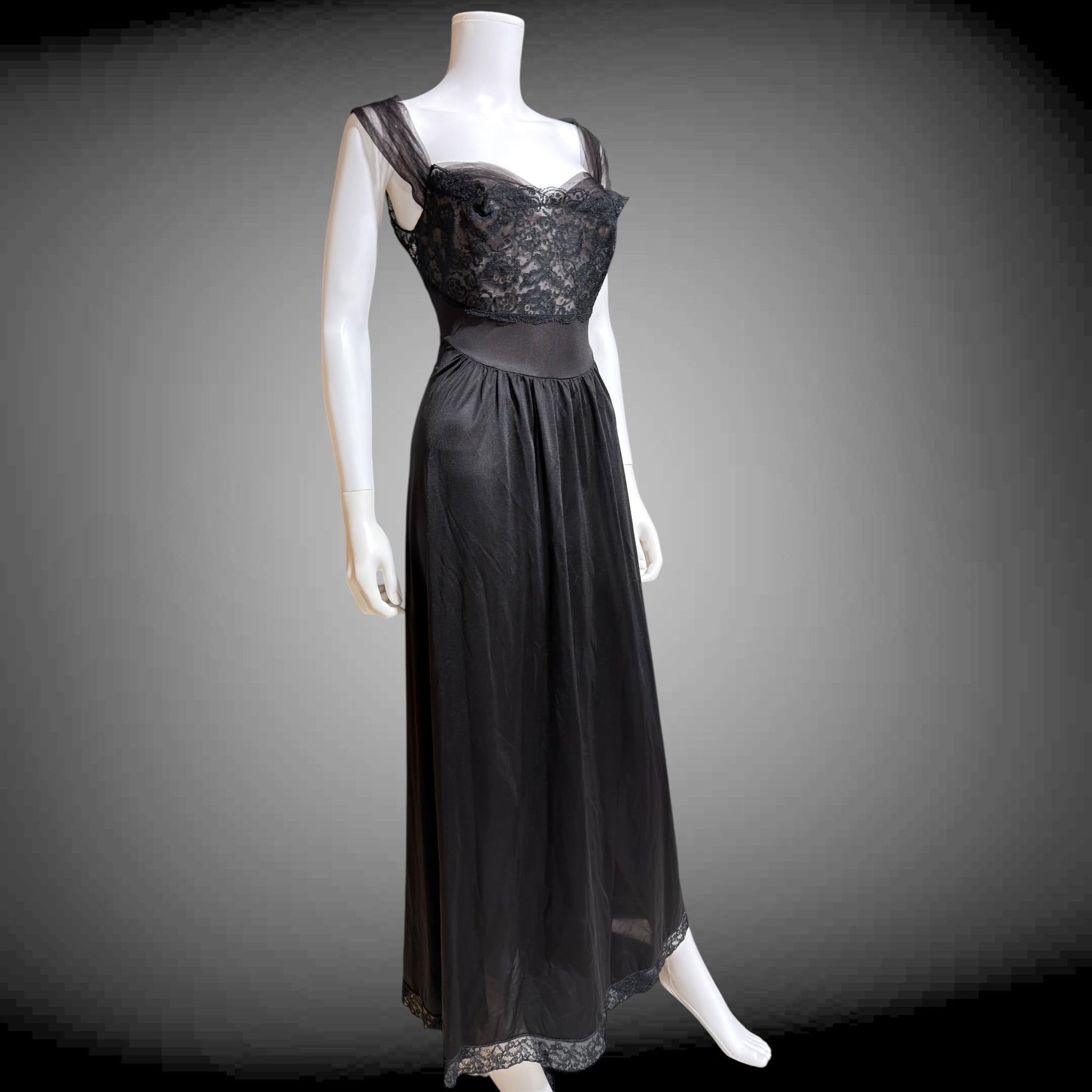 VANITY FAIR SAKS Black nylon full length lingerie dress