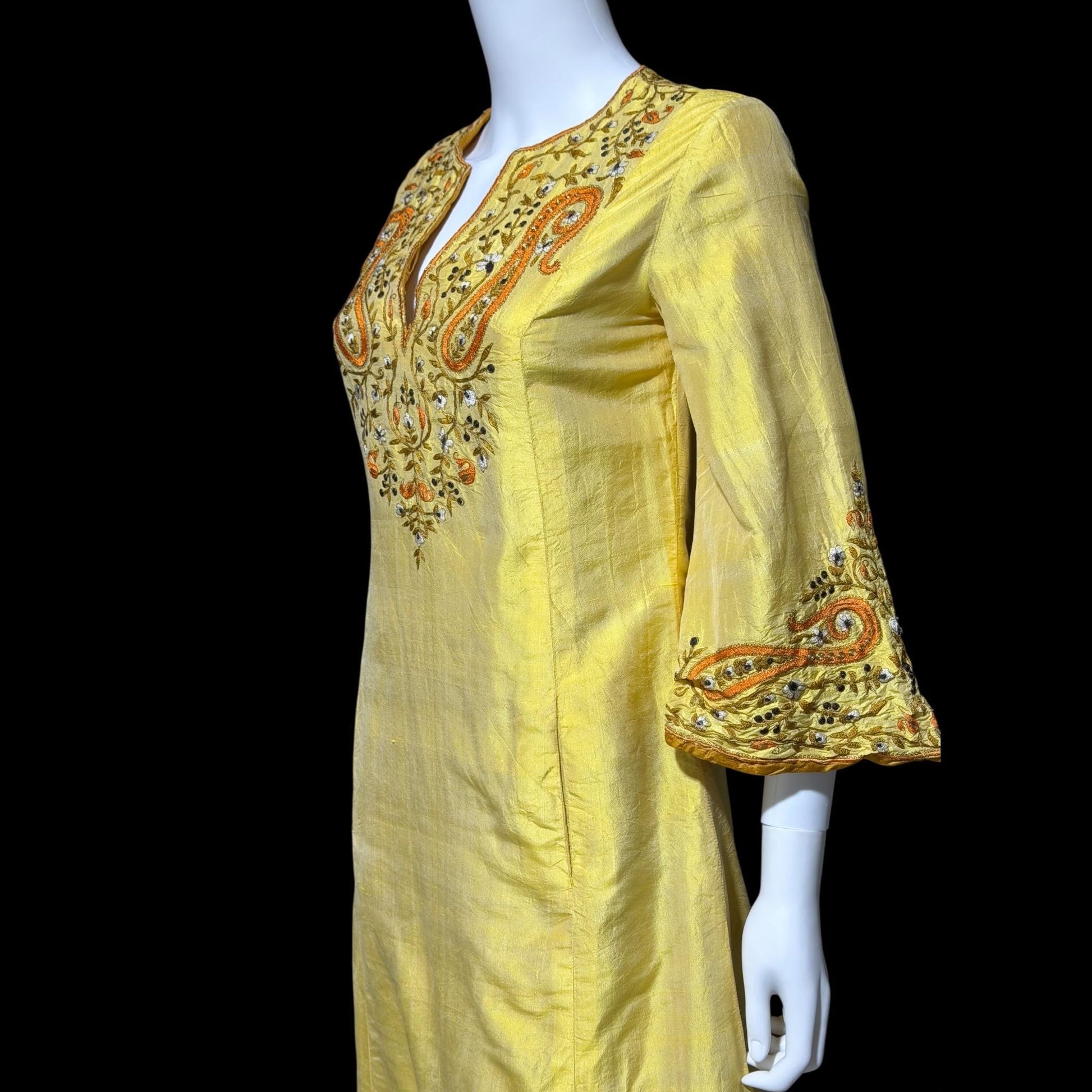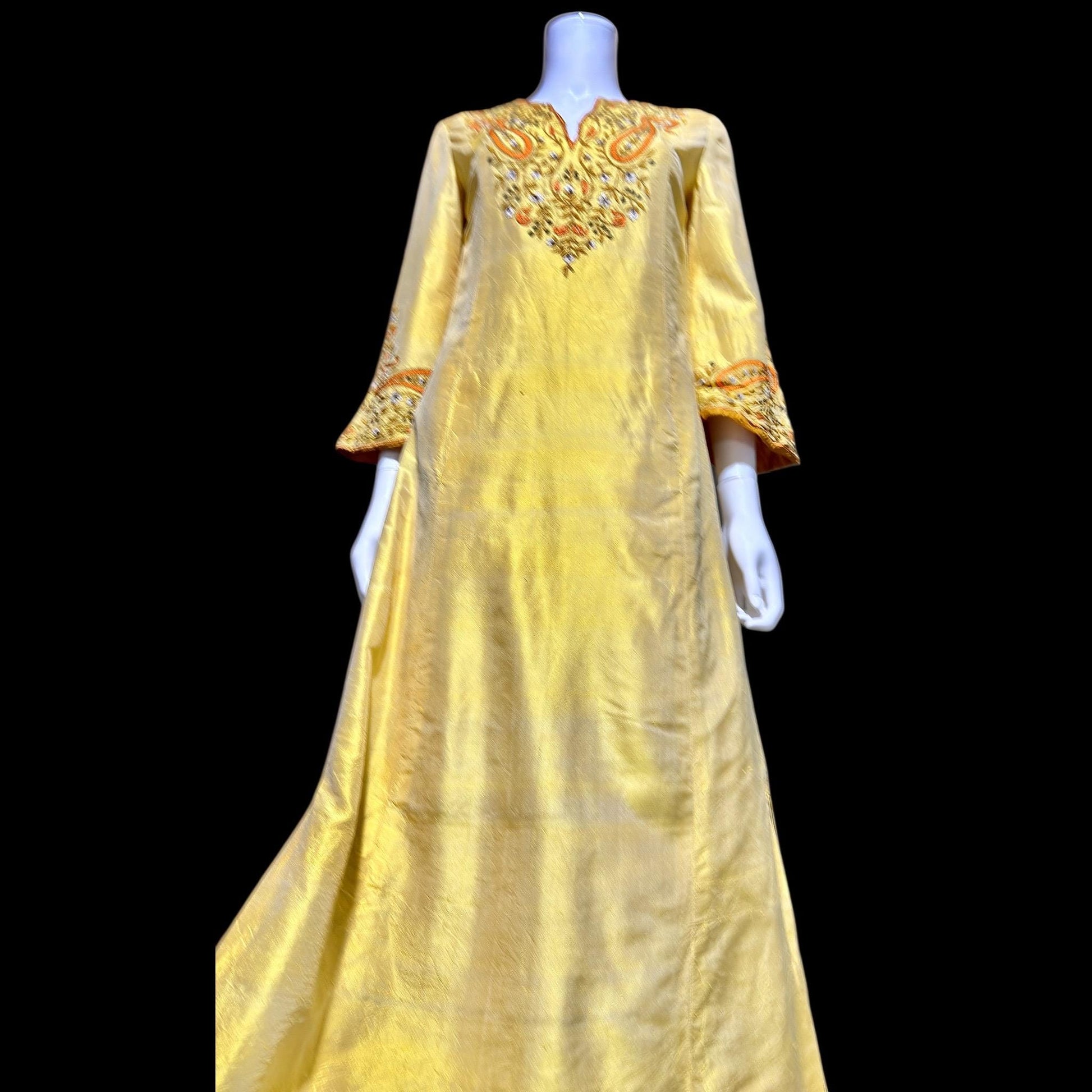 NEIMAN MARCUS vintage 1960s caftan dress, Tissue Indian Silk embroidered kaftan evening dress