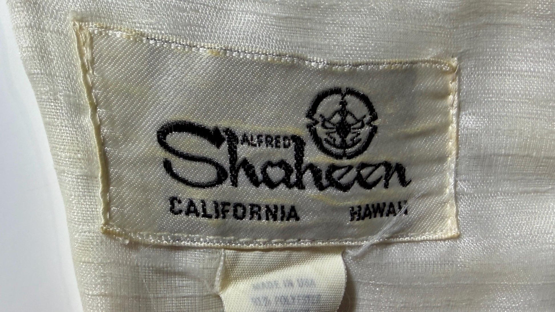 ALFRED SHAHEEN vintage 1970s maxi dress, hand screen print floral Hawaiian wedding dress