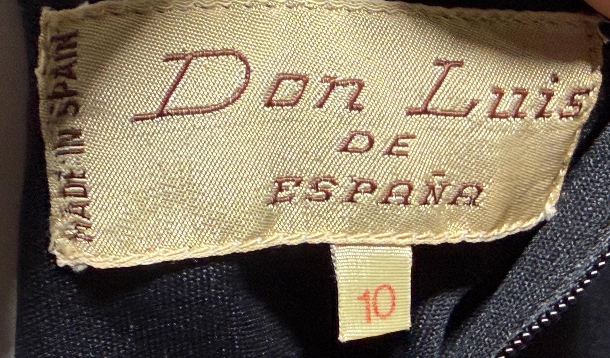 DON LUIS de espana plunging V black floral jersey knit dress, stretchy