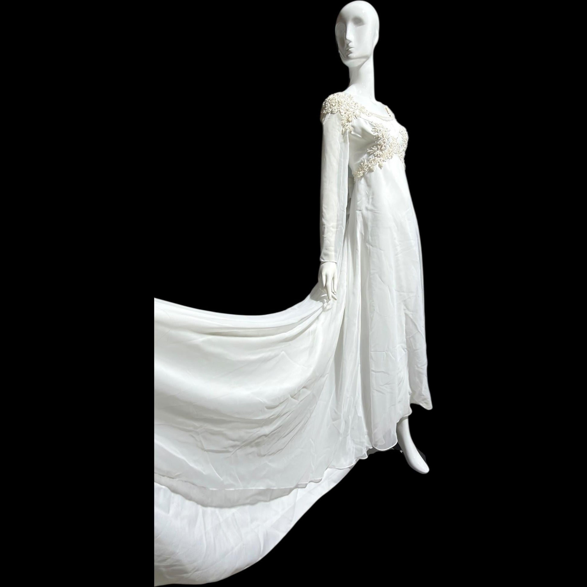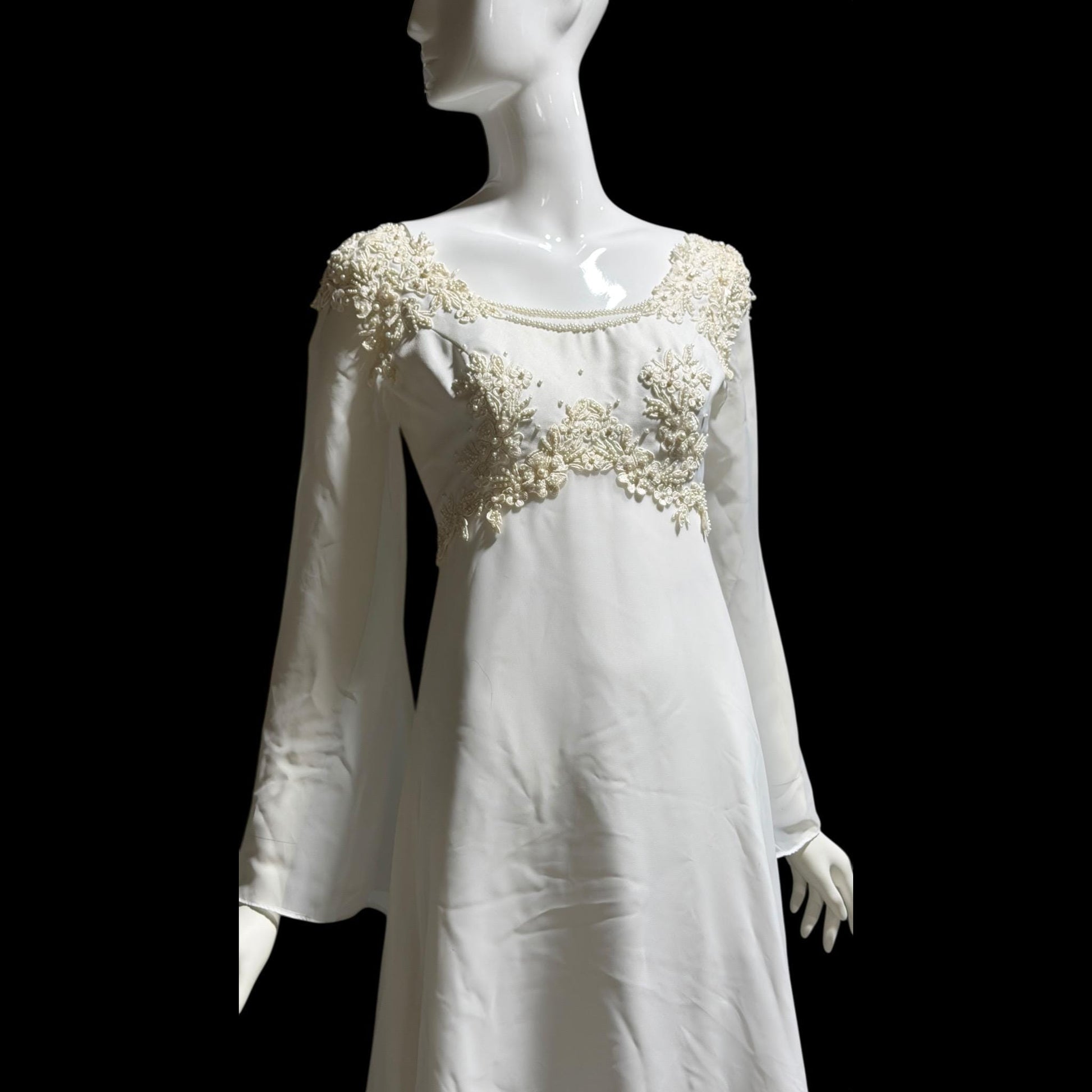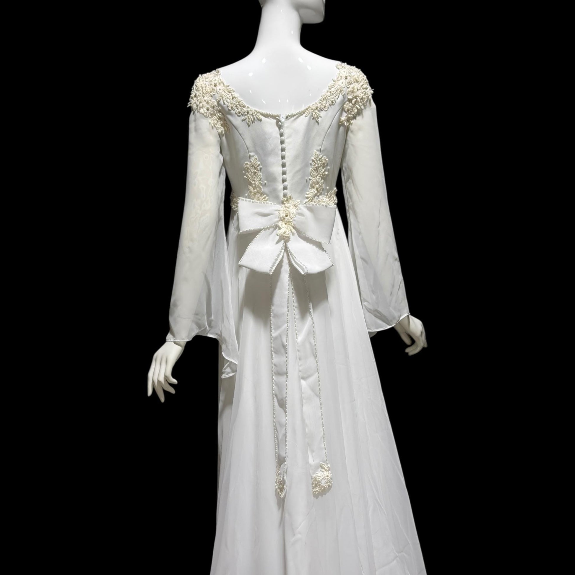 EDEN Bridals, vintage 1970s Wedding dress gown, White bell sleeve gown, Hippie Boho