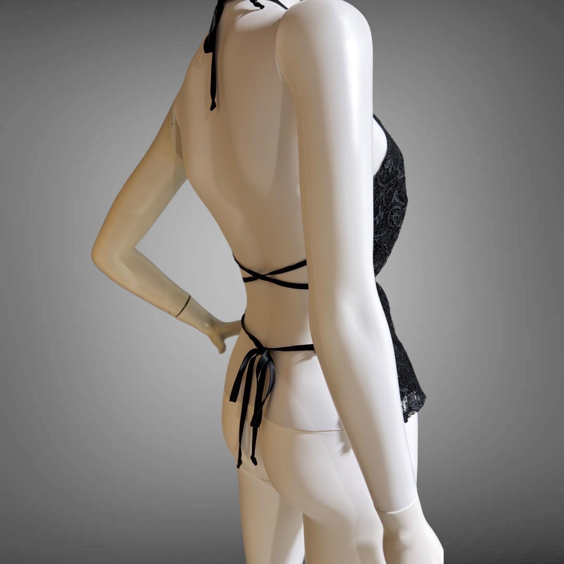 BETSEY JOHNSON label, Vintage 1990s camisole tiny top, Black lace halter top