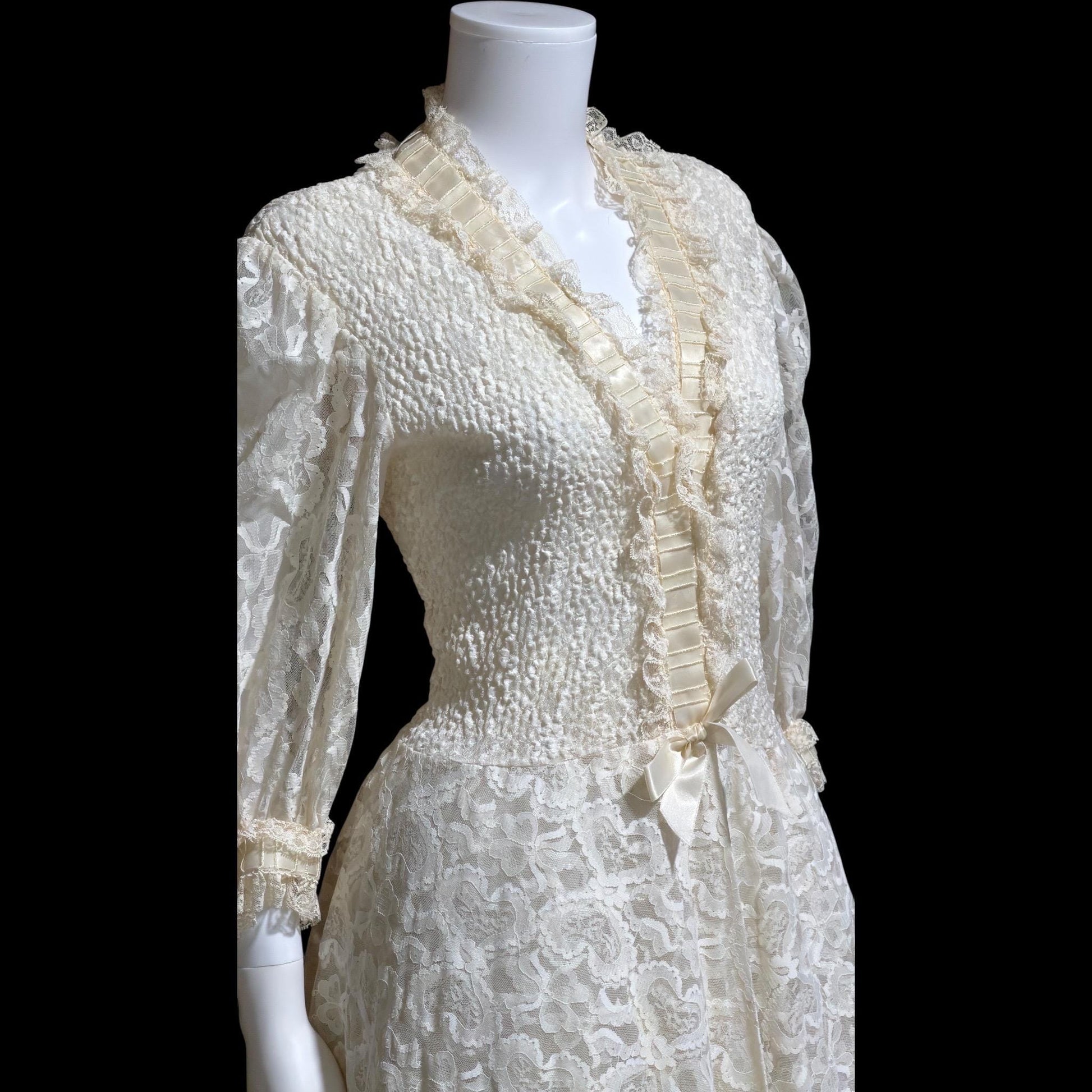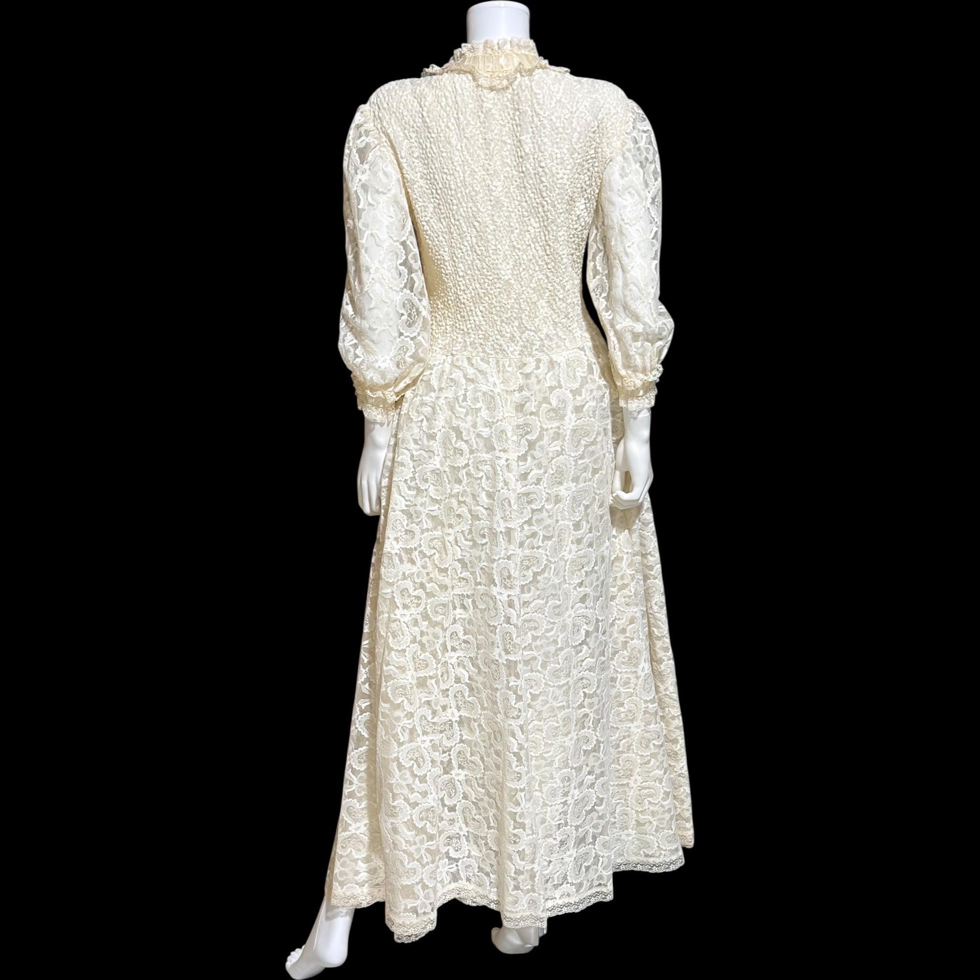 ODETTE BARSA vintage dressing gown robe, 1950s white smocked elastic bridal housecoat, Large