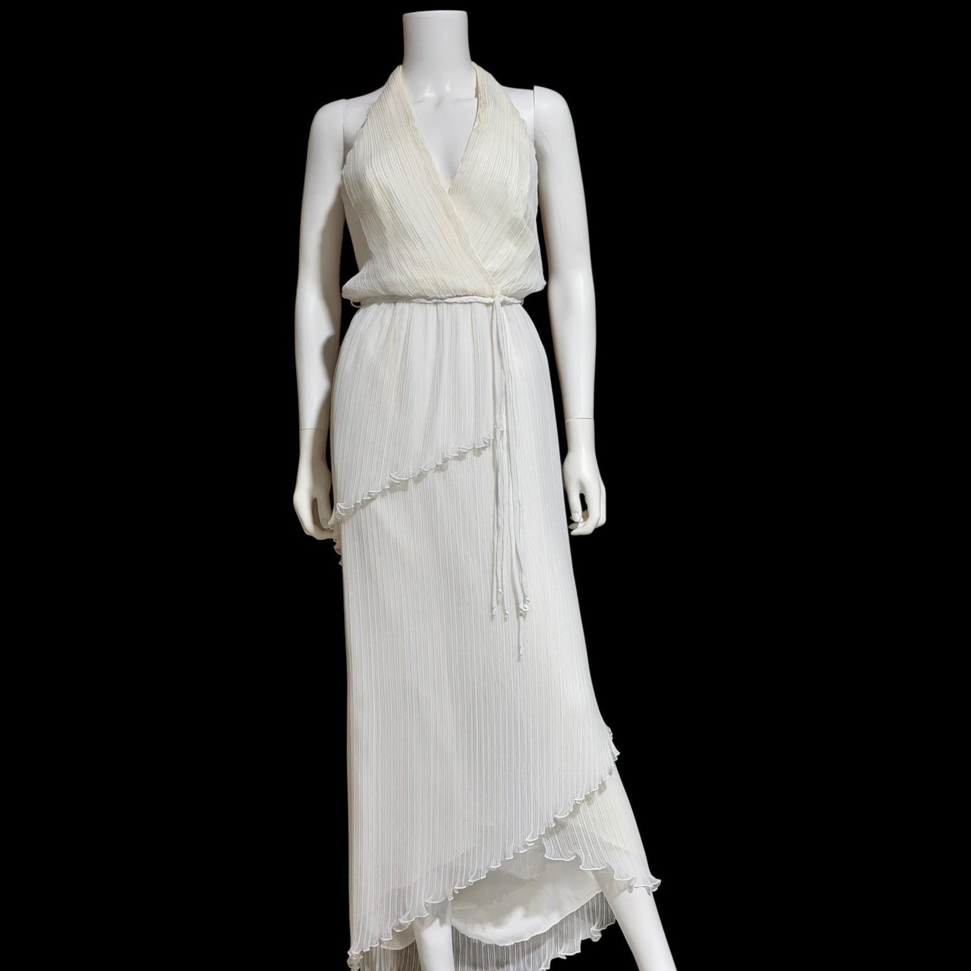 JACK BRYAN white plisse pleat halter grecian goddess dress