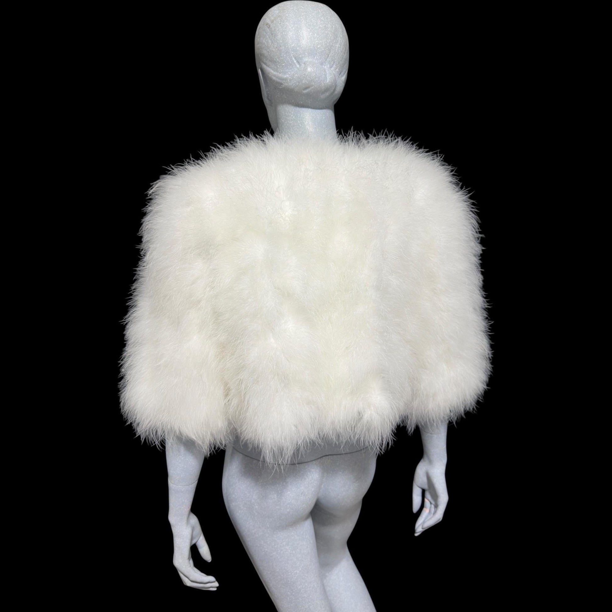1980s Vintage Marabou Feather Cropped Jacket: Snowy White Bridal Wedding Evening Topper