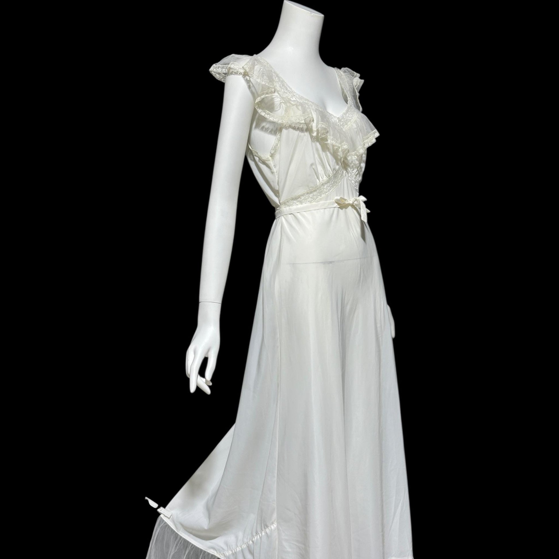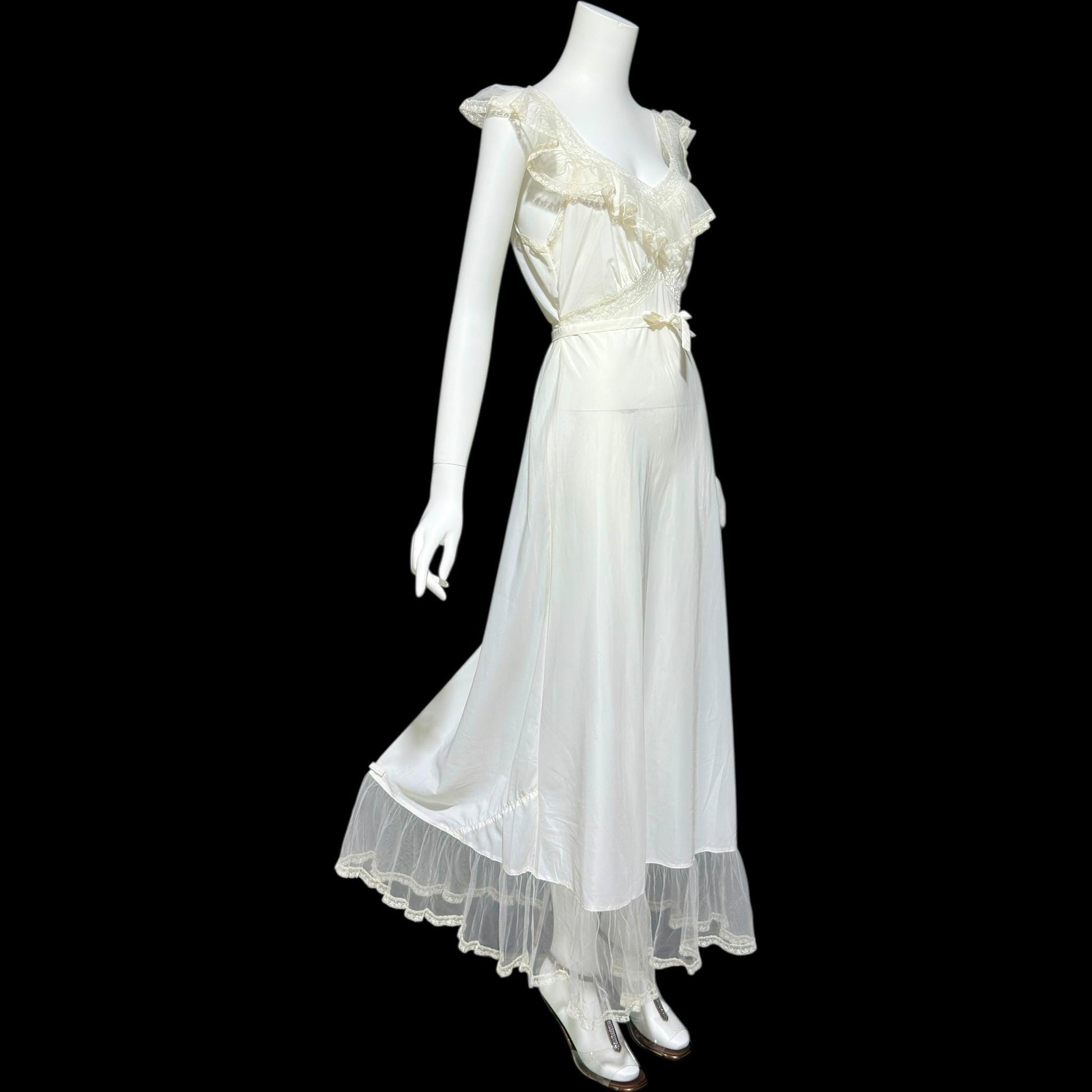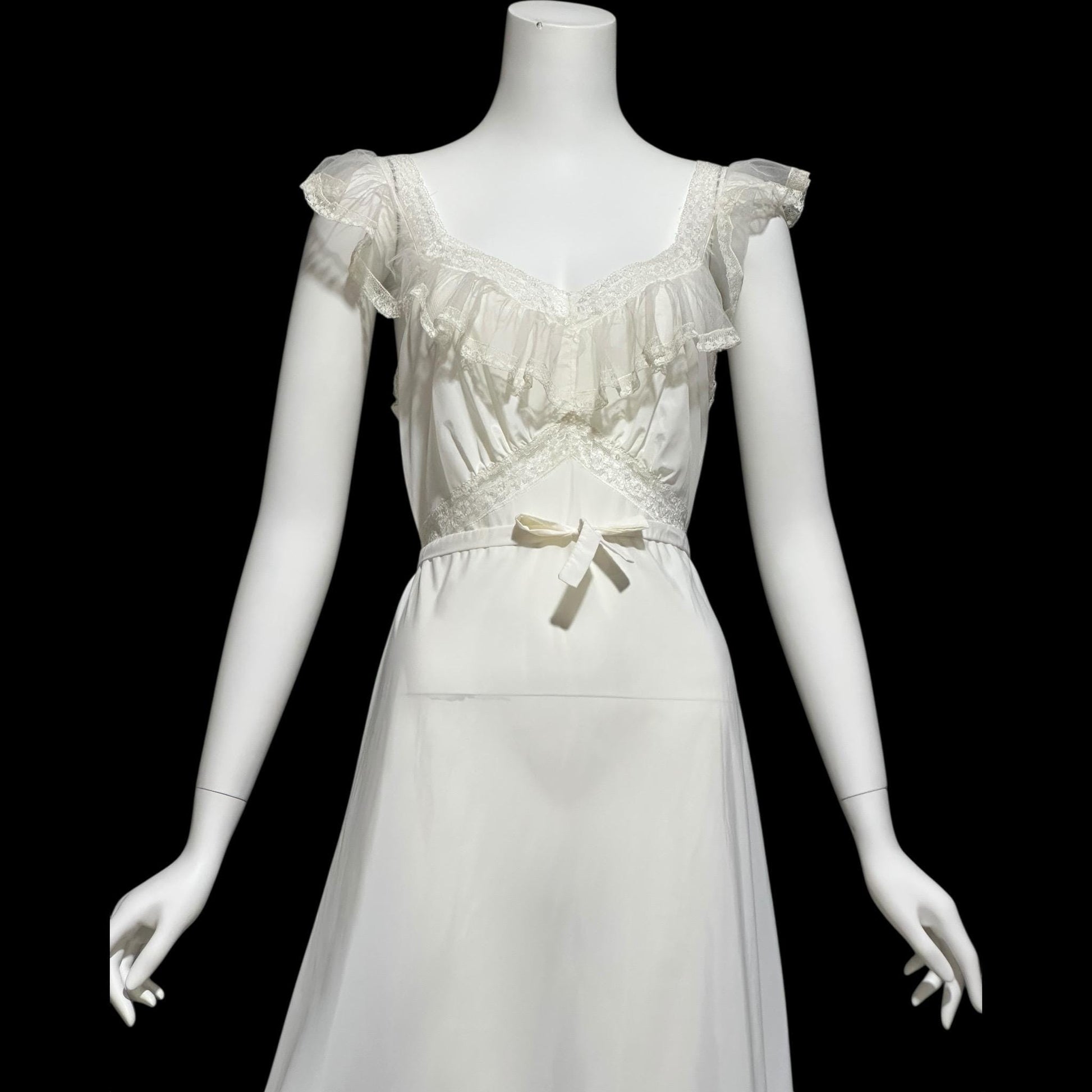 WONDER MAID, vintage 1940s nightgown slip dress, white nylon slip dress