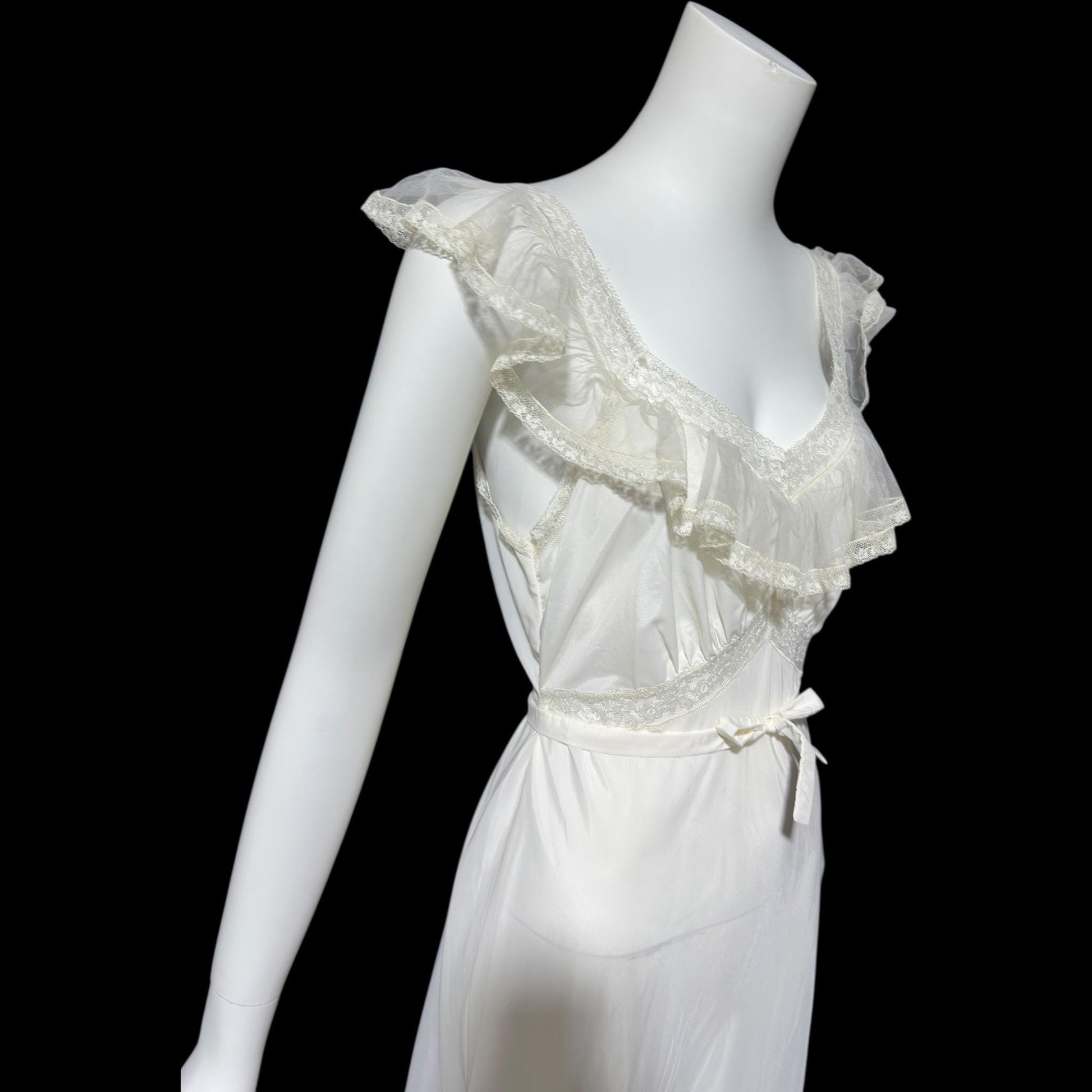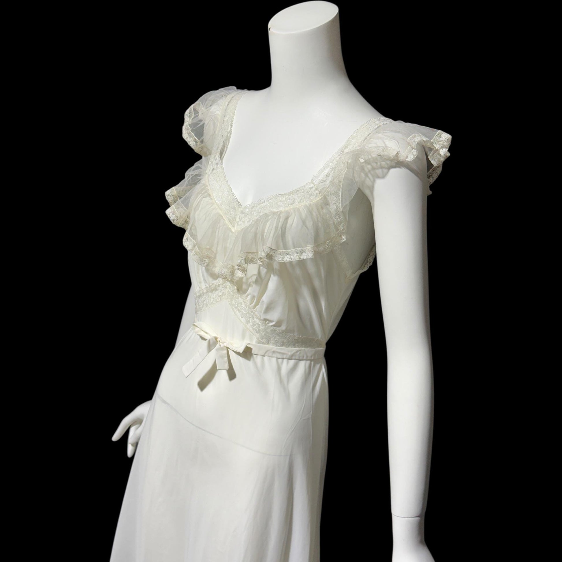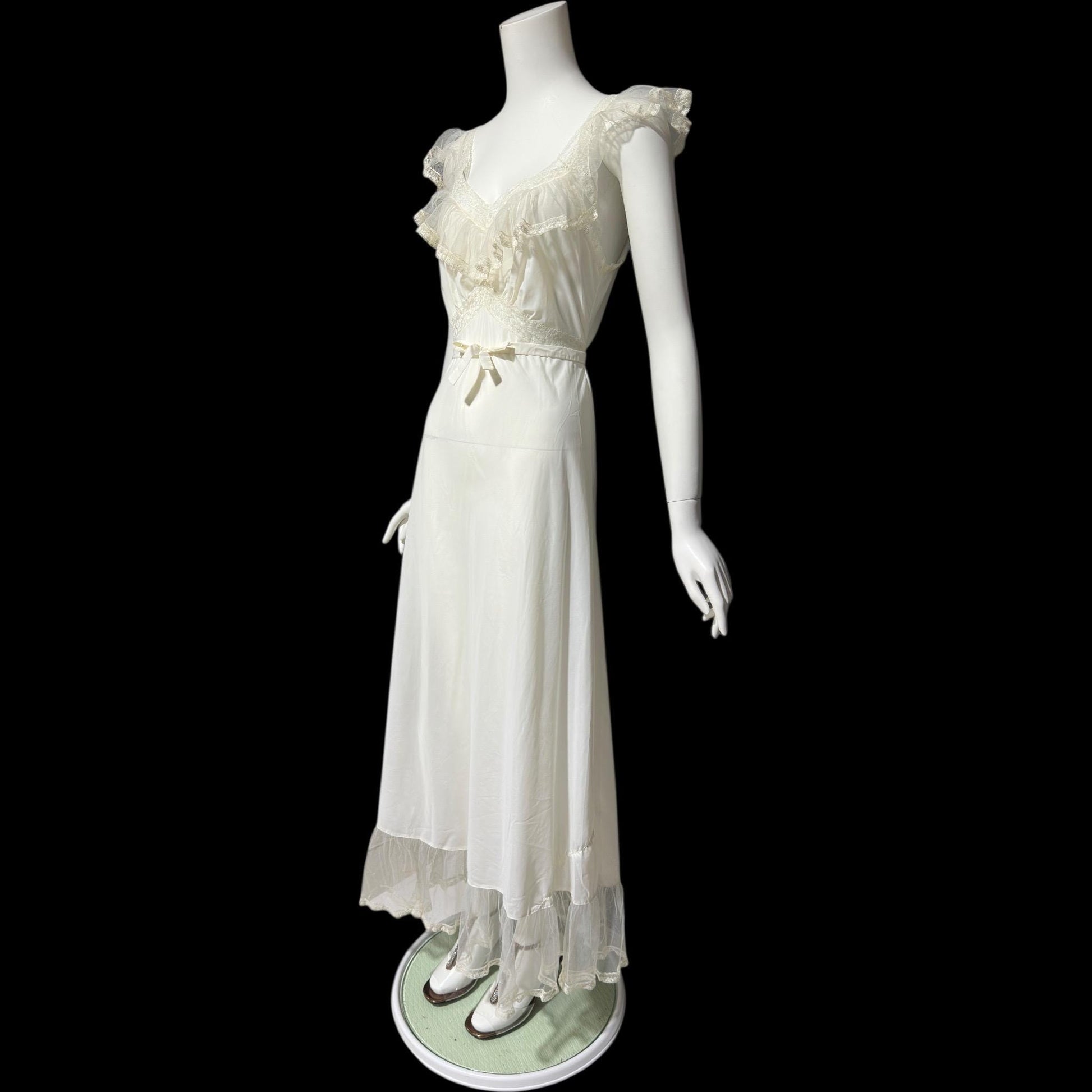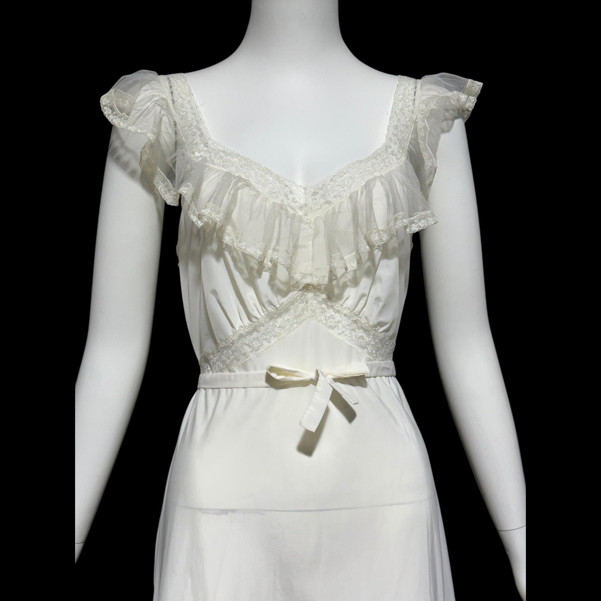 WONDER MAID, vintage 1940s nightgown slip dress, white nylon slip dress