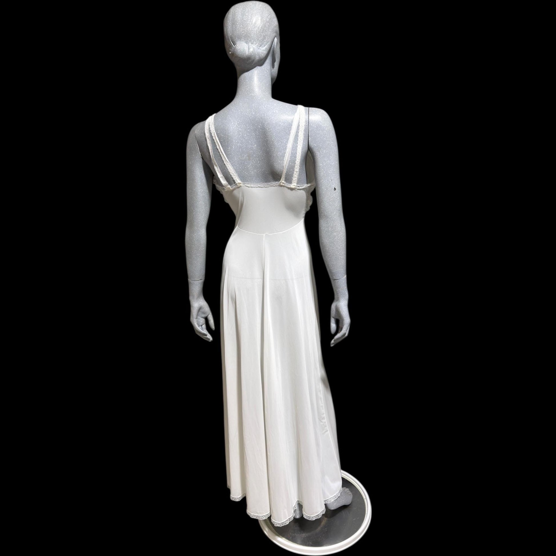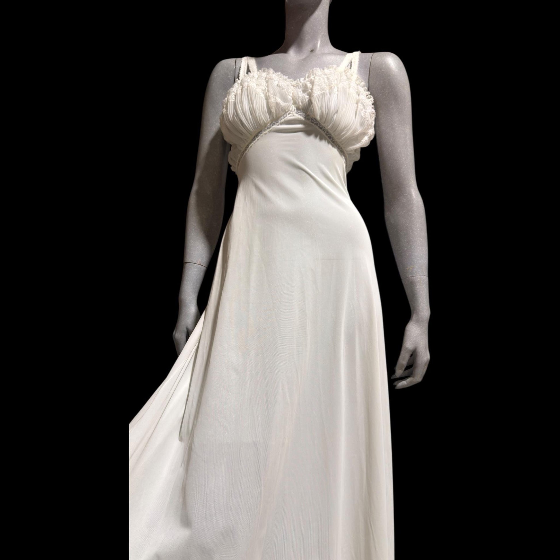 1940s YOLANDE white full length ruffled nylon lingerie dress
